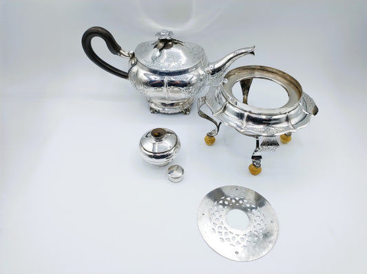 Silver teapot on silver stove, N. Folmer, Groningen, 1855