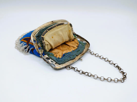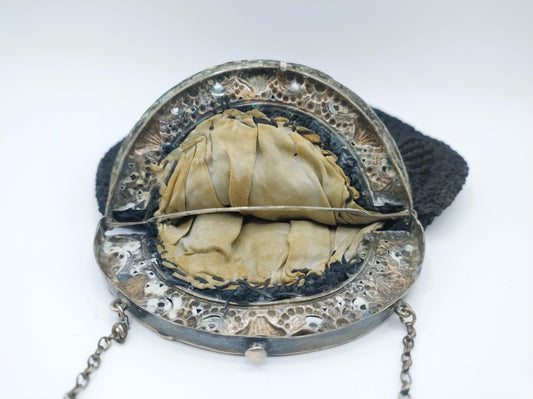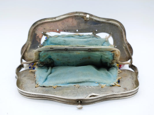 Silver purse clasp with beaded purse, J. Barthel, Schoonhoven, 1850