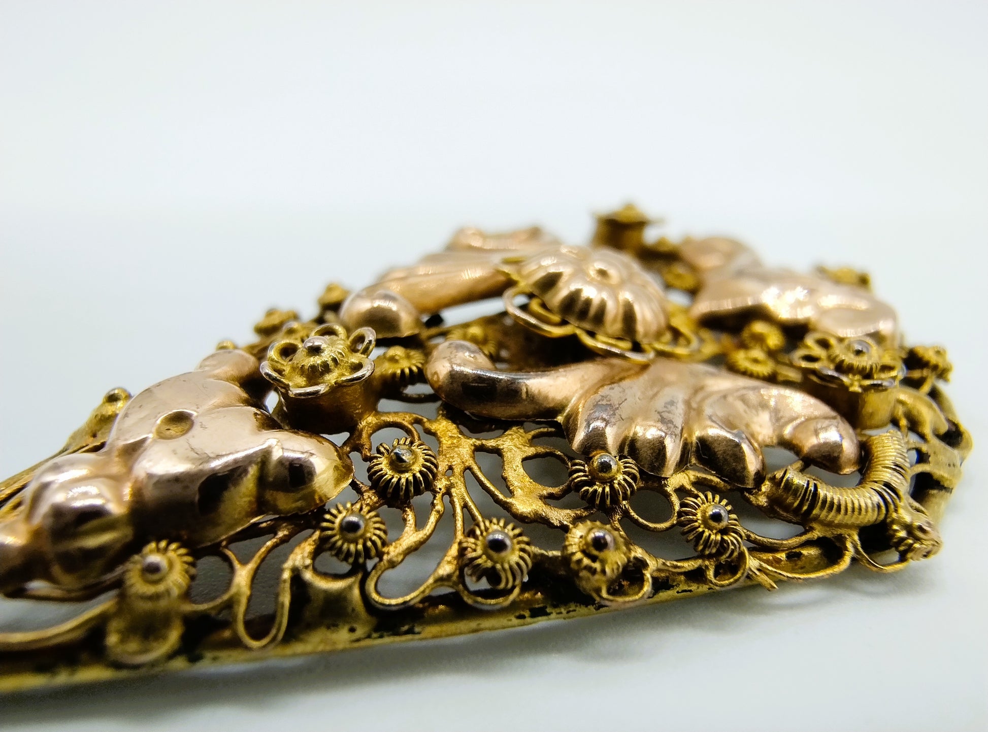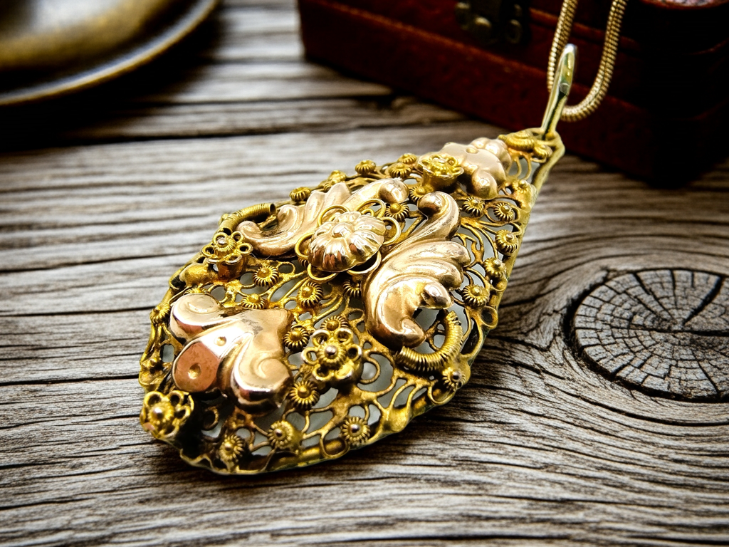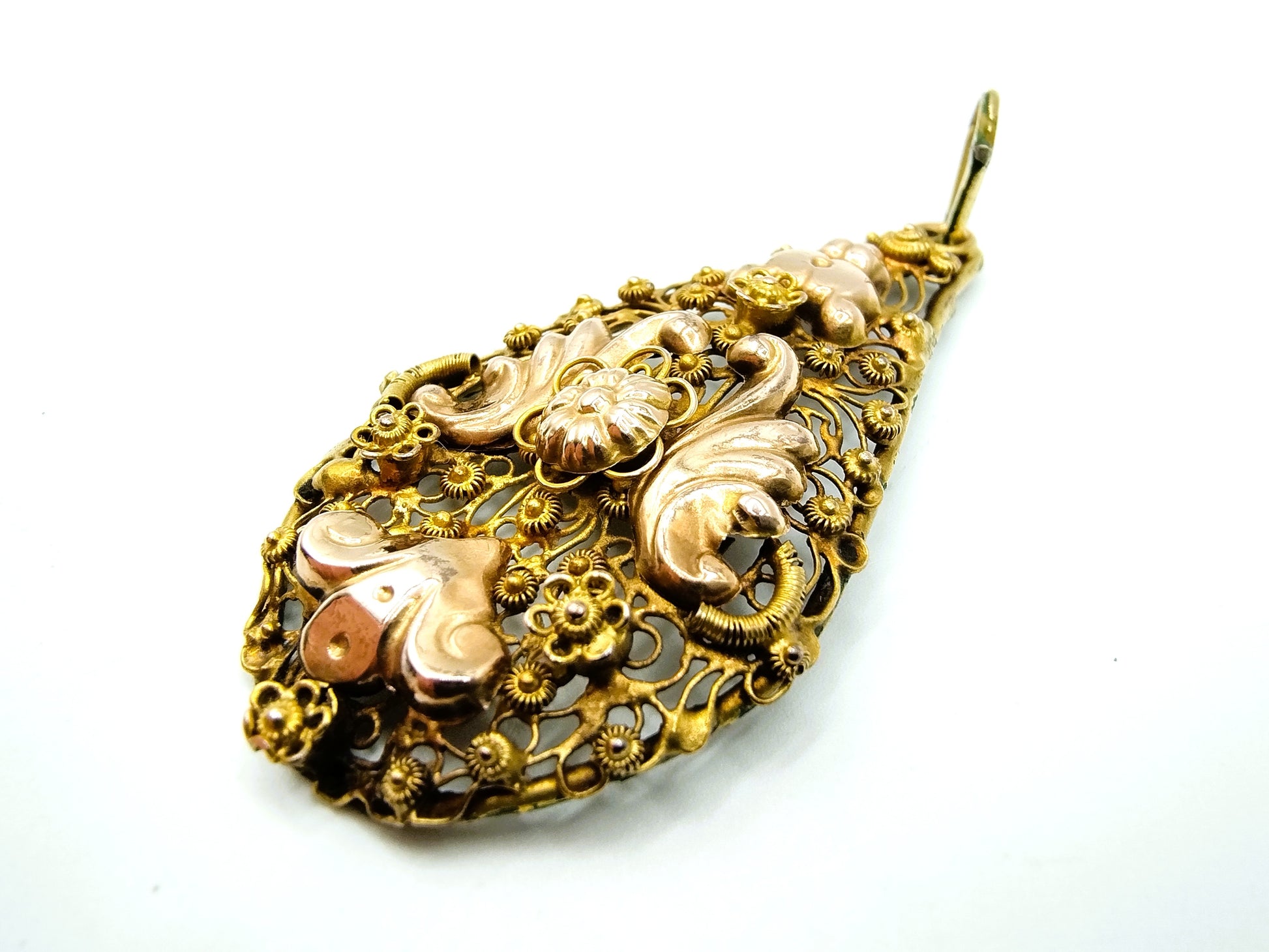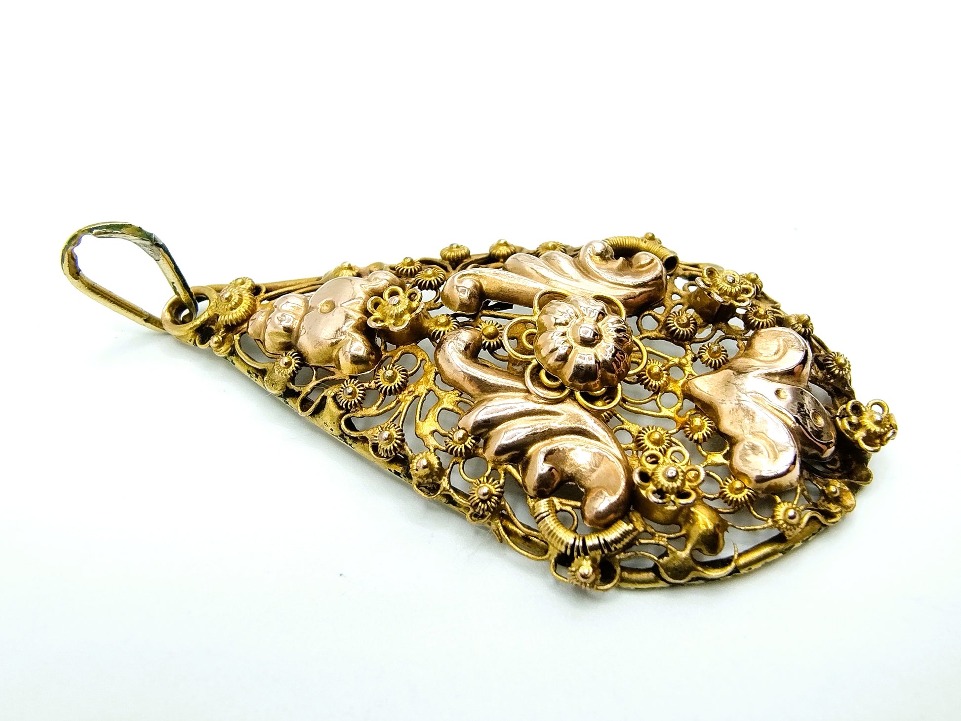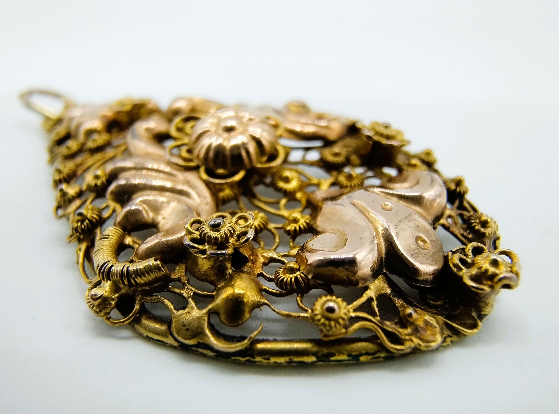 14K gold filigree pendant,