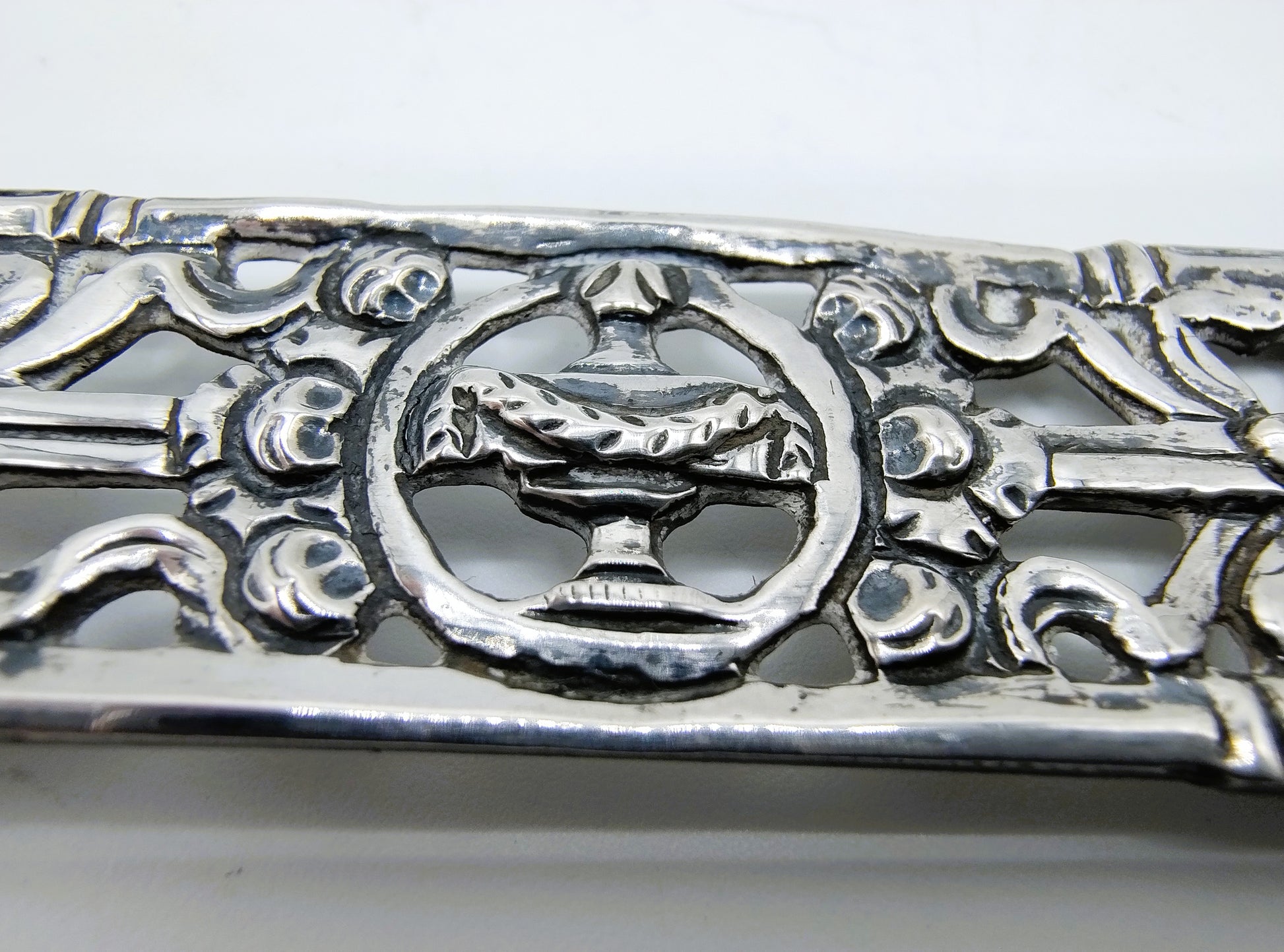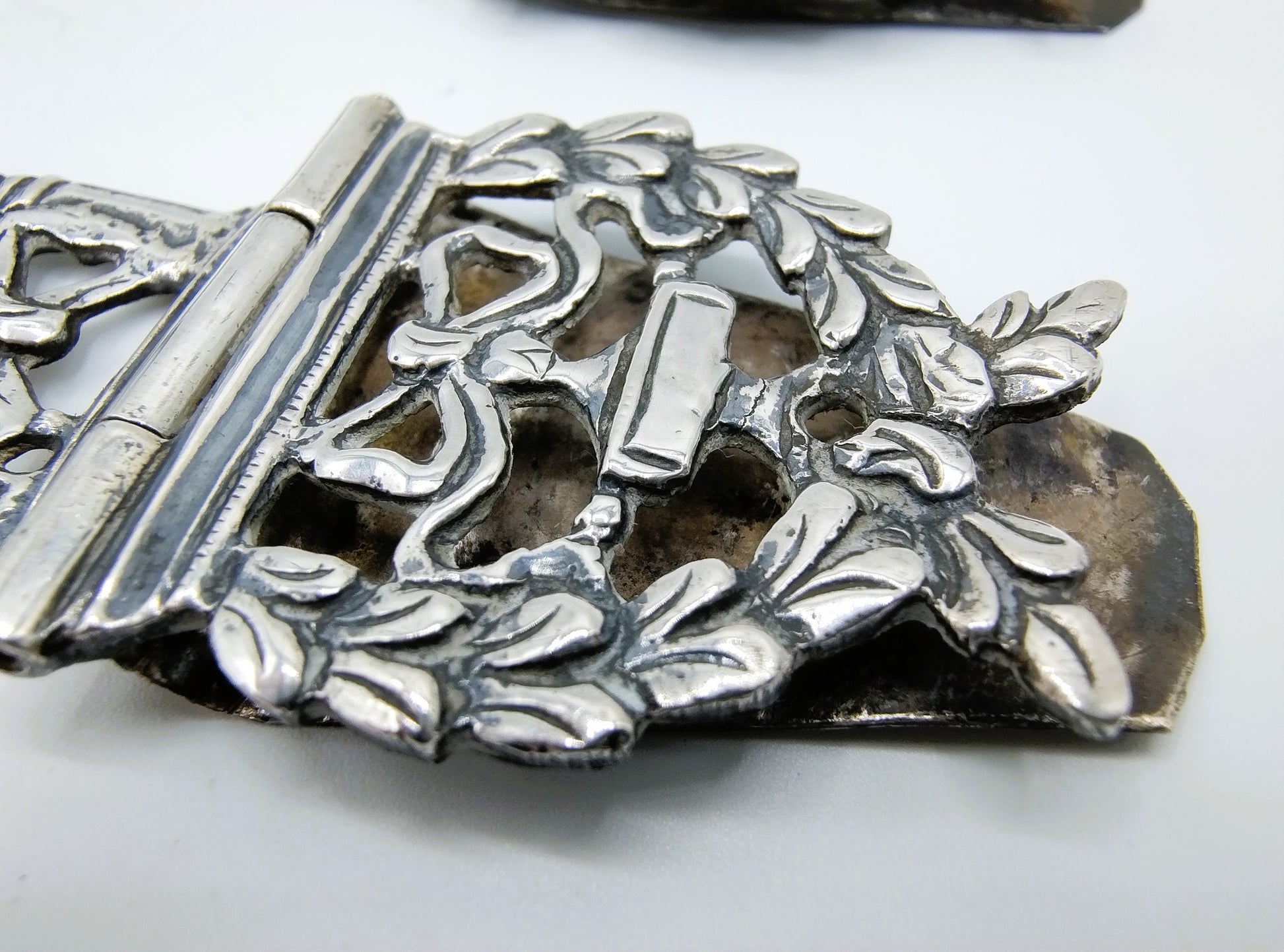Zilveren bijbelsloten met een opengezaagd Empire decor. Gemaakt door de zilversmid Jan van der Geest uit Almenum.