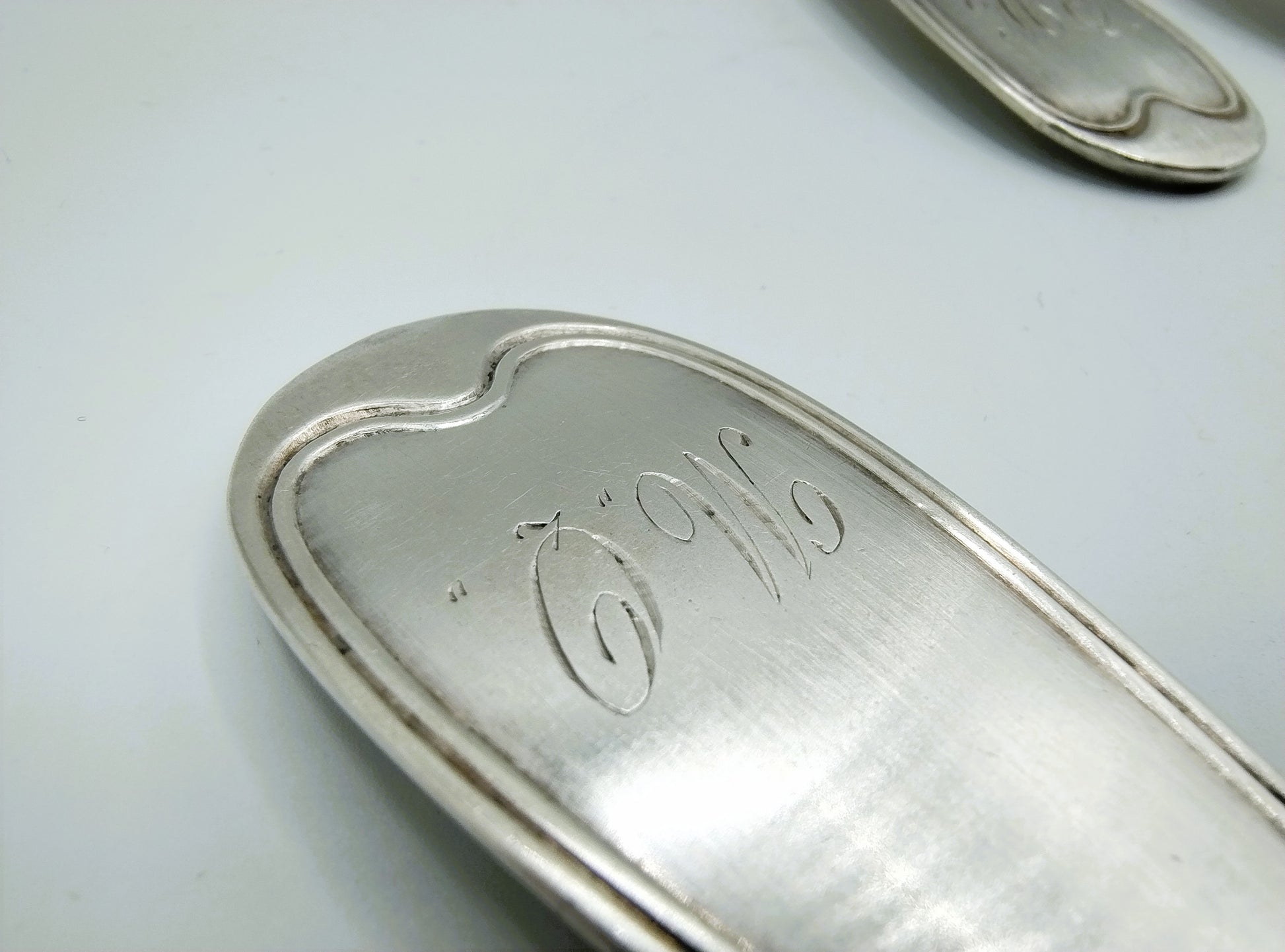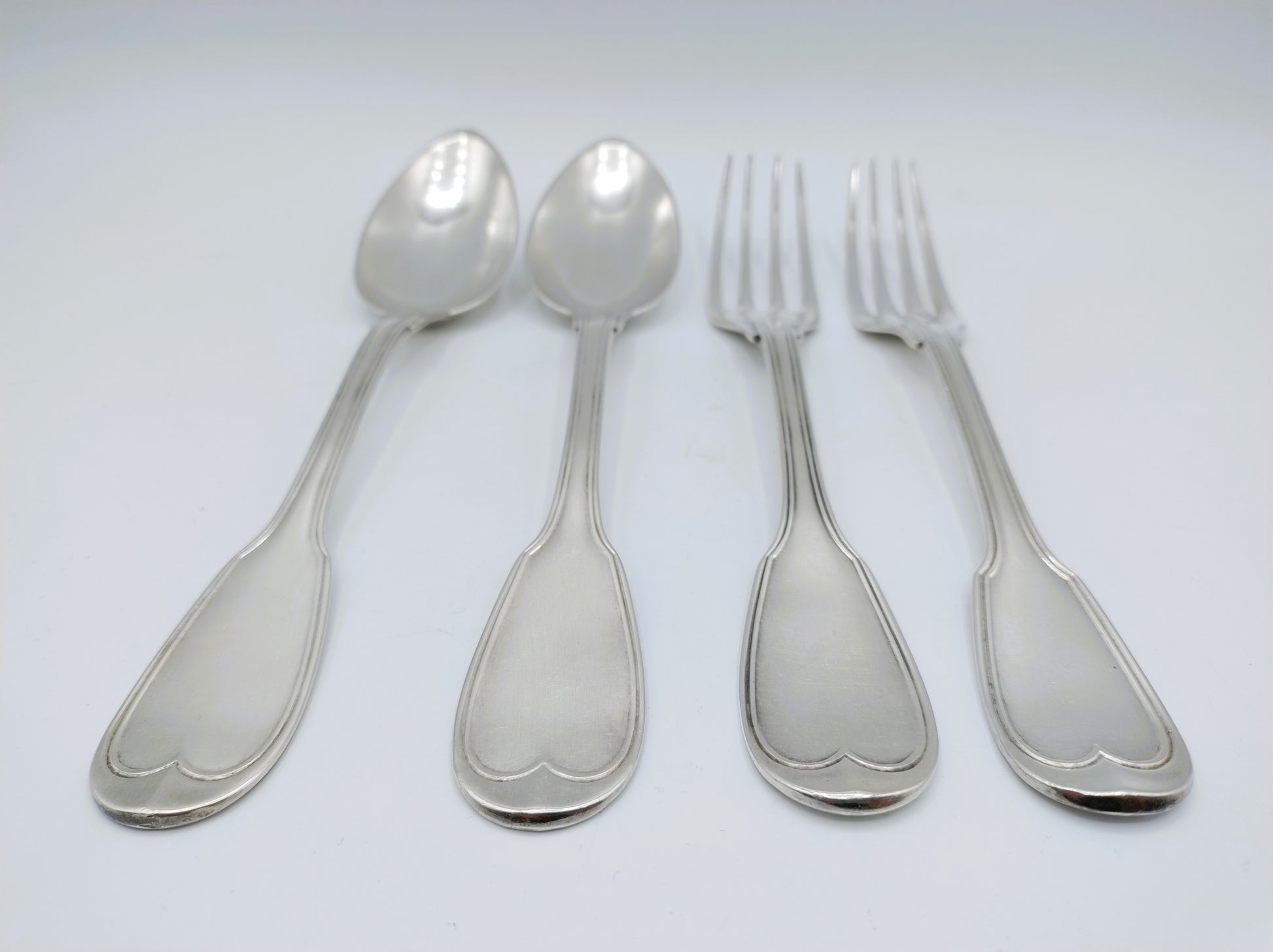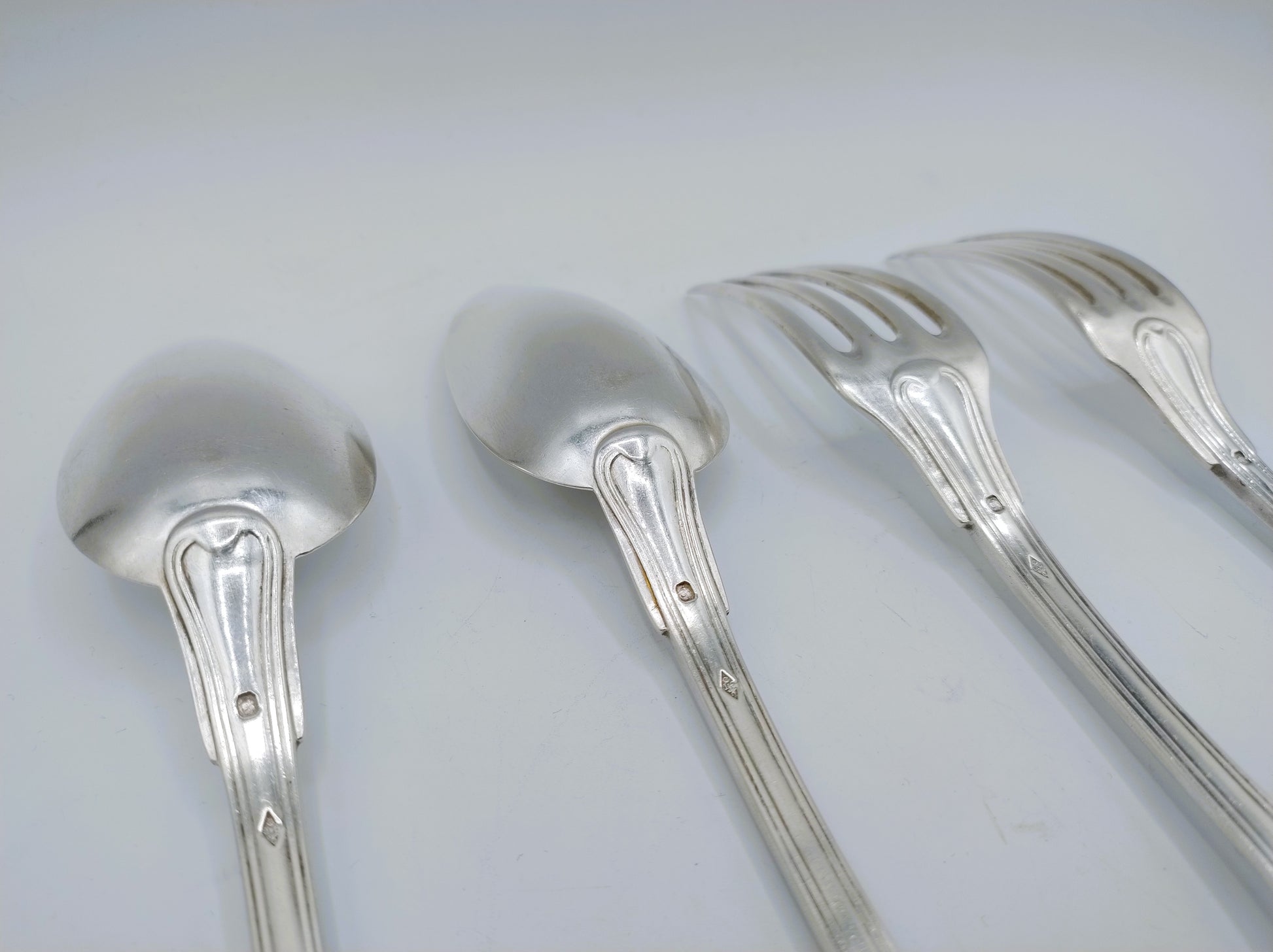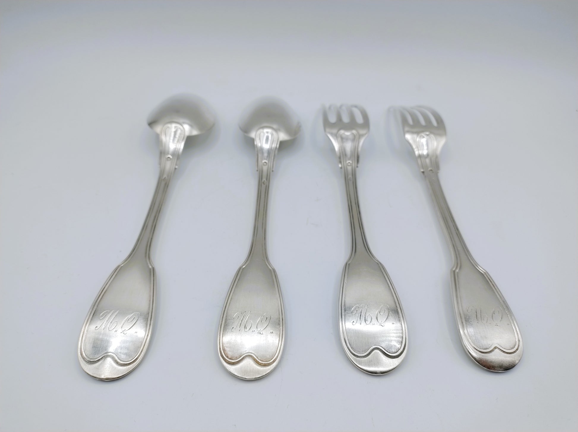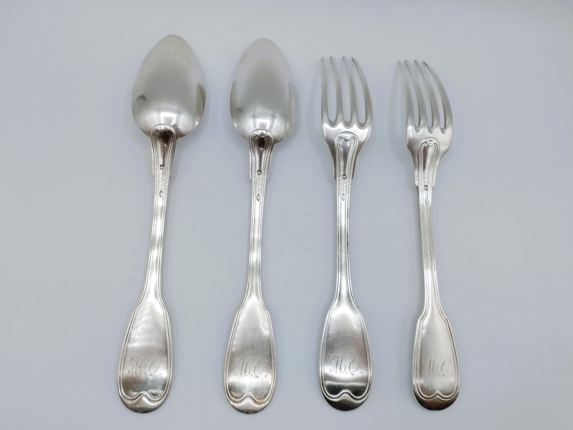 Heavy and solid silver cutlery made by silversmith Guillaume Deninger Jr. of Maison Deniére in Paris. This silversmith worked for a short time from 1850 to 1855.