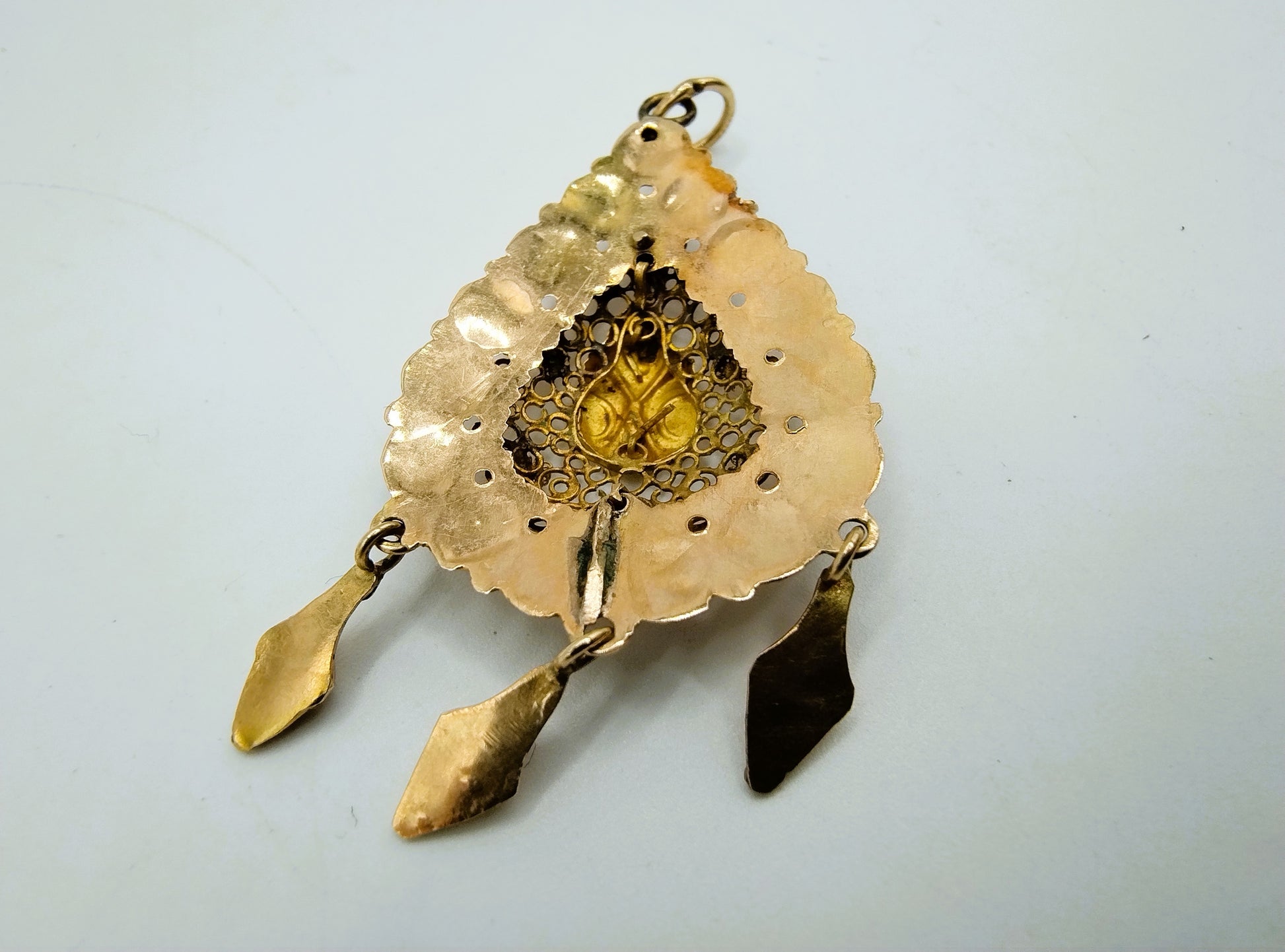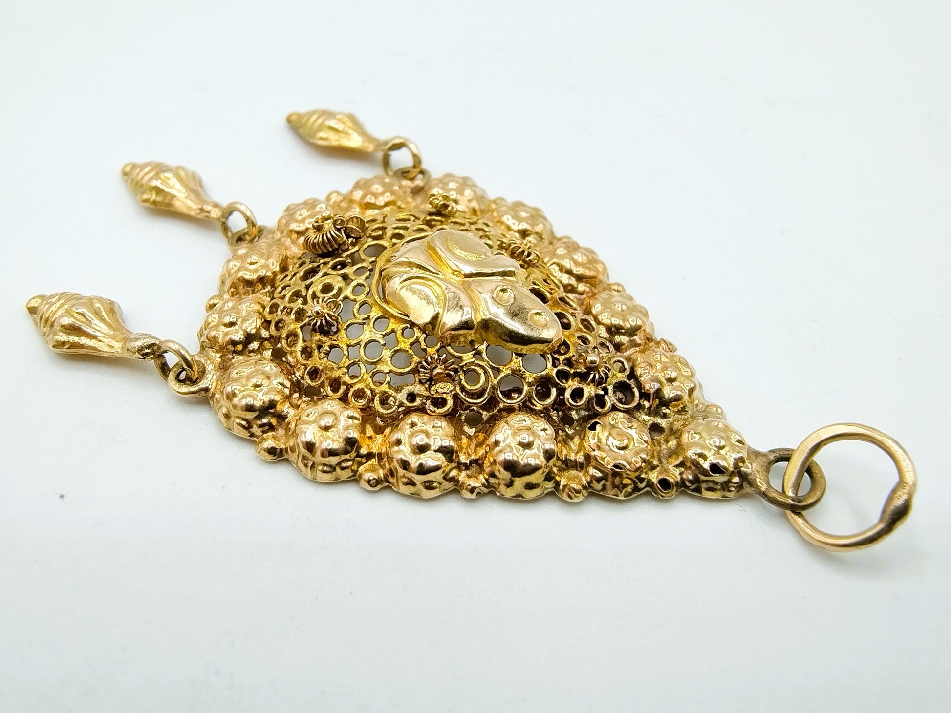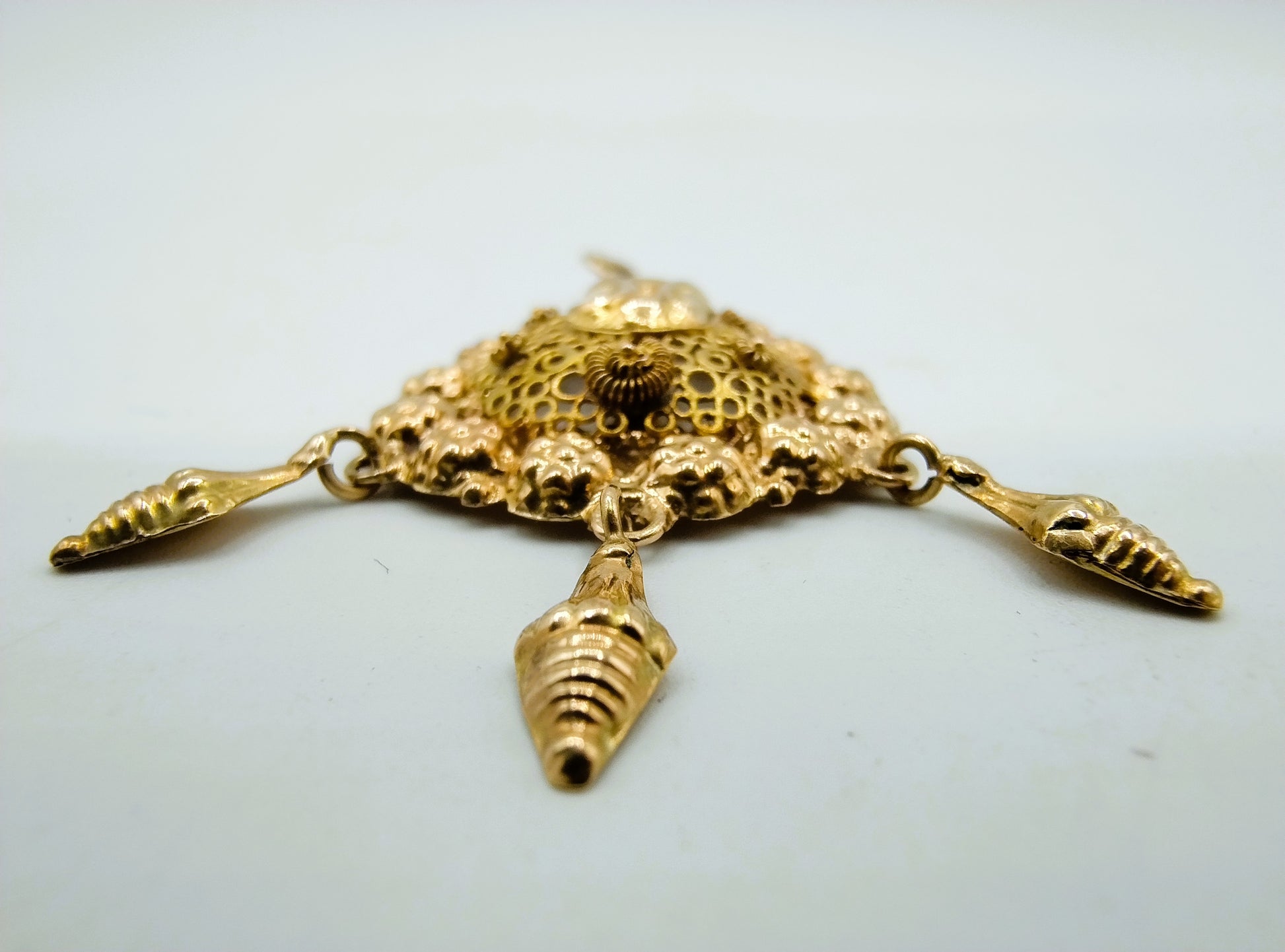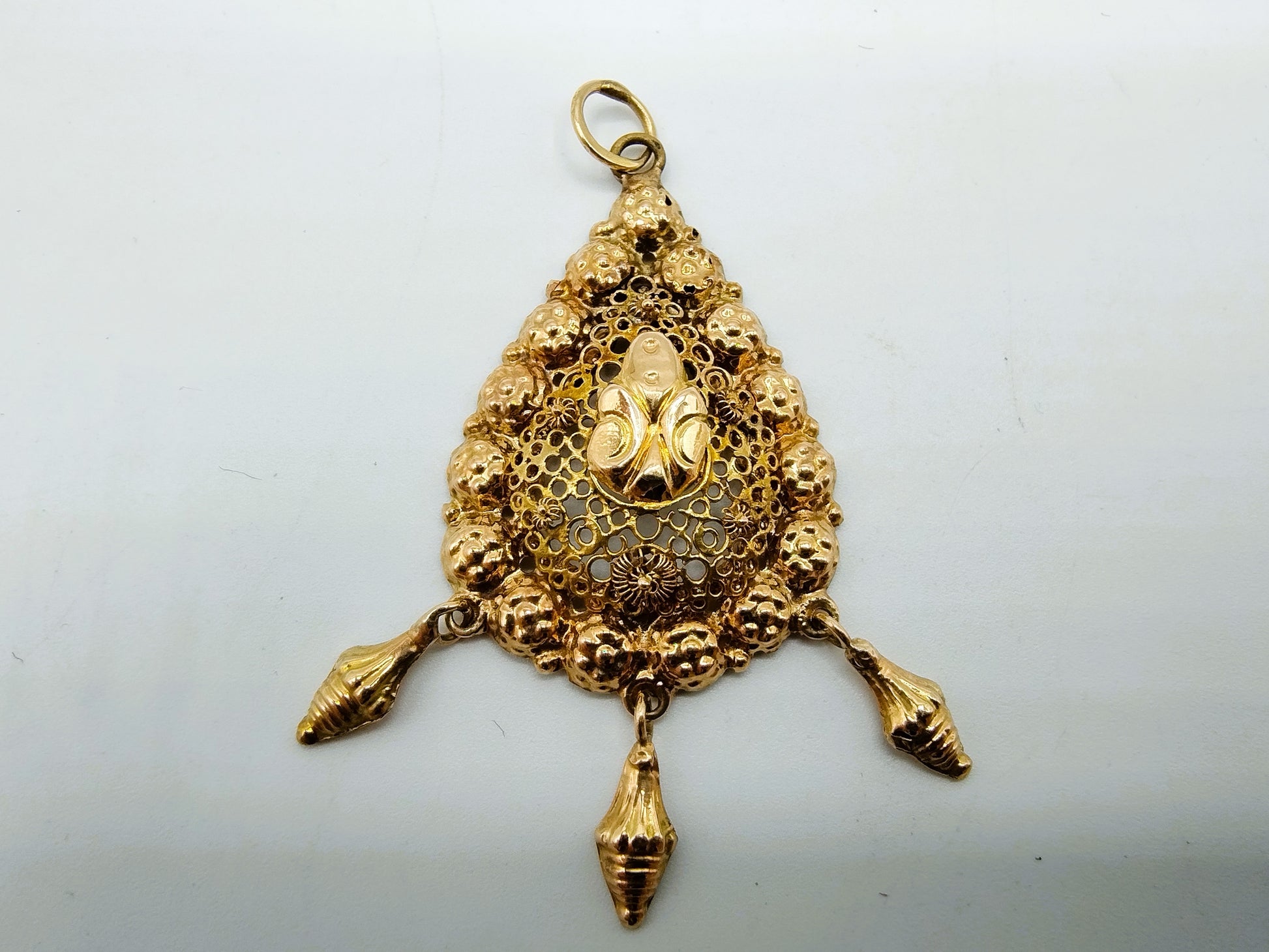 Antique gold traditional costume pendant. Filigree gold with delicate Zeeland buttons.
