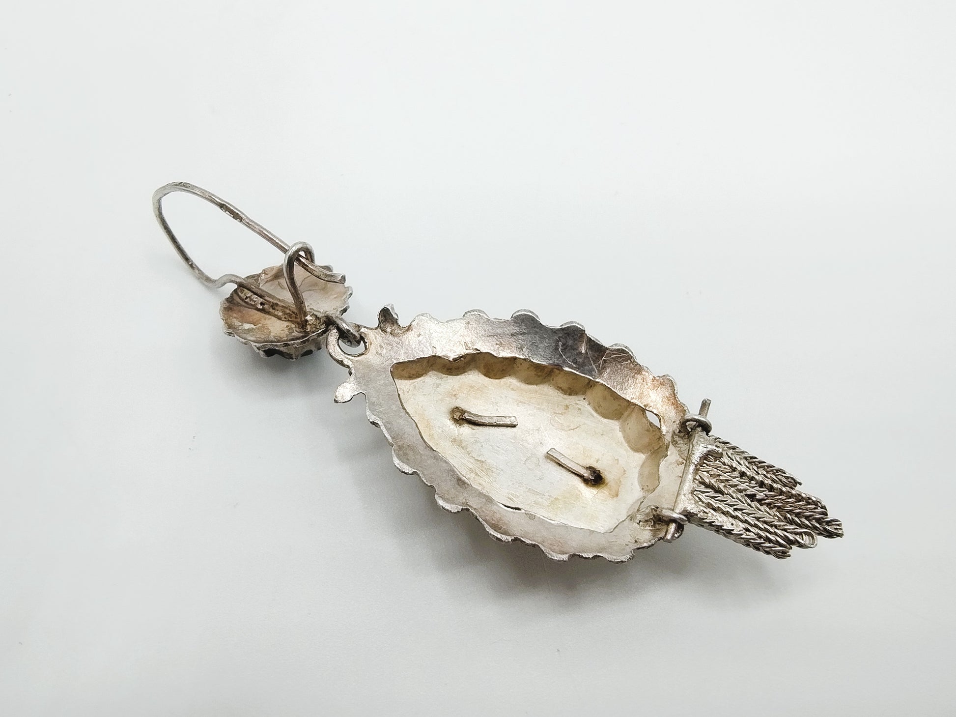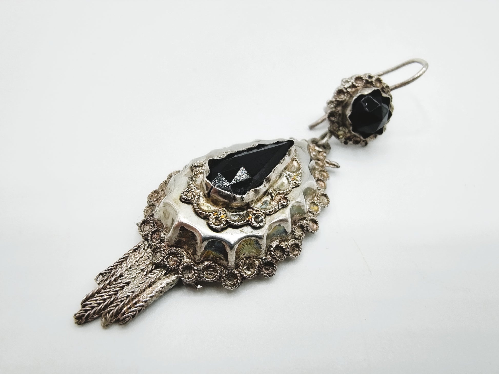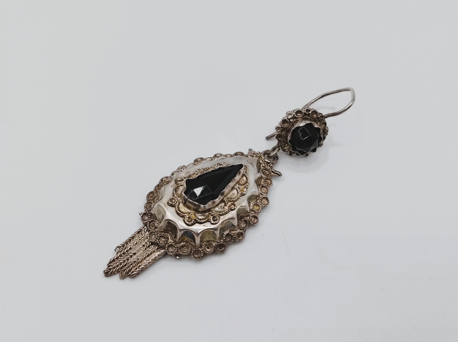 Antique silver cap bell with jet, traditional costume, 19th century
