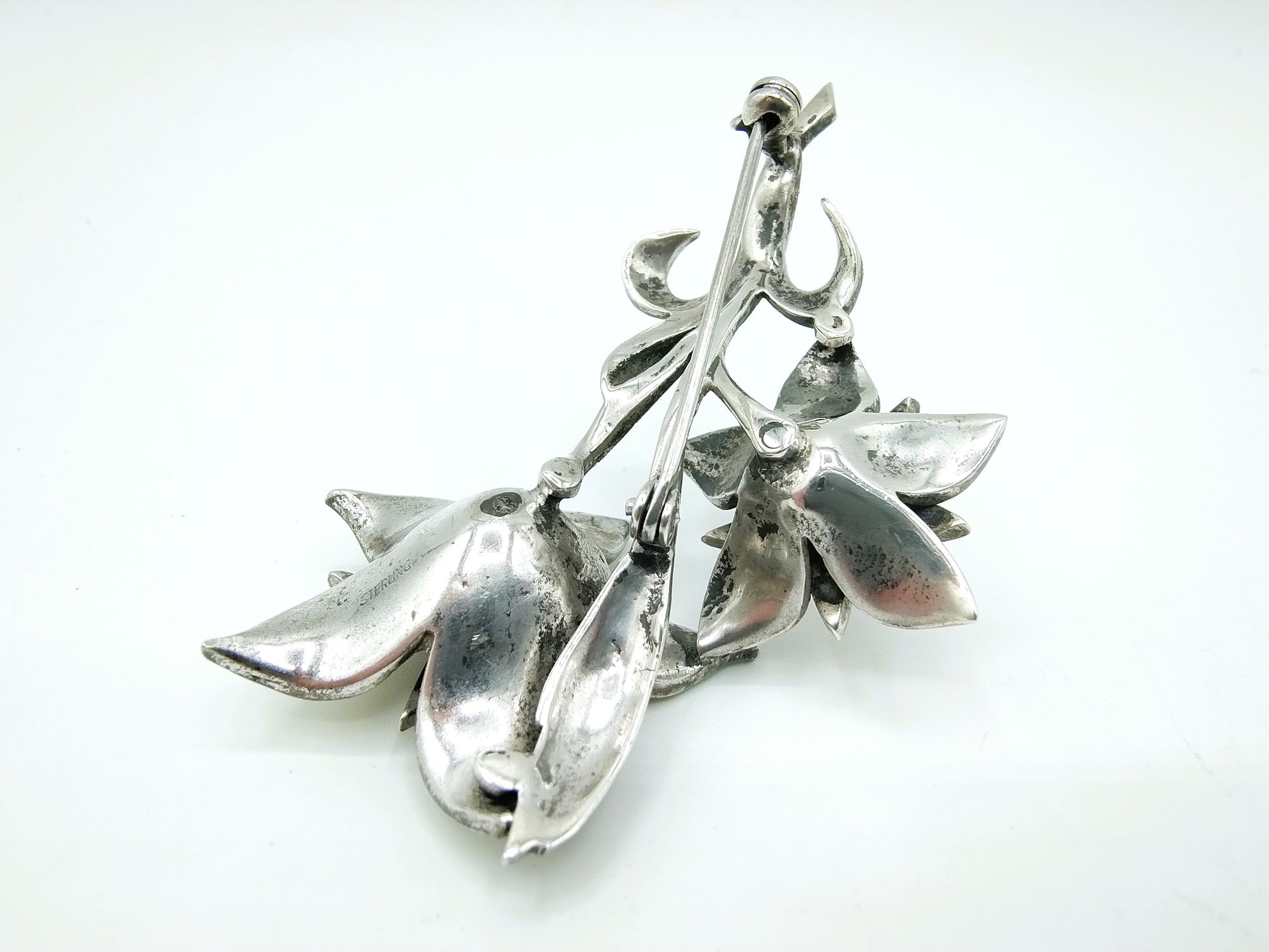 Art Nouveau flower brooch, silver with enamel and marcasites.