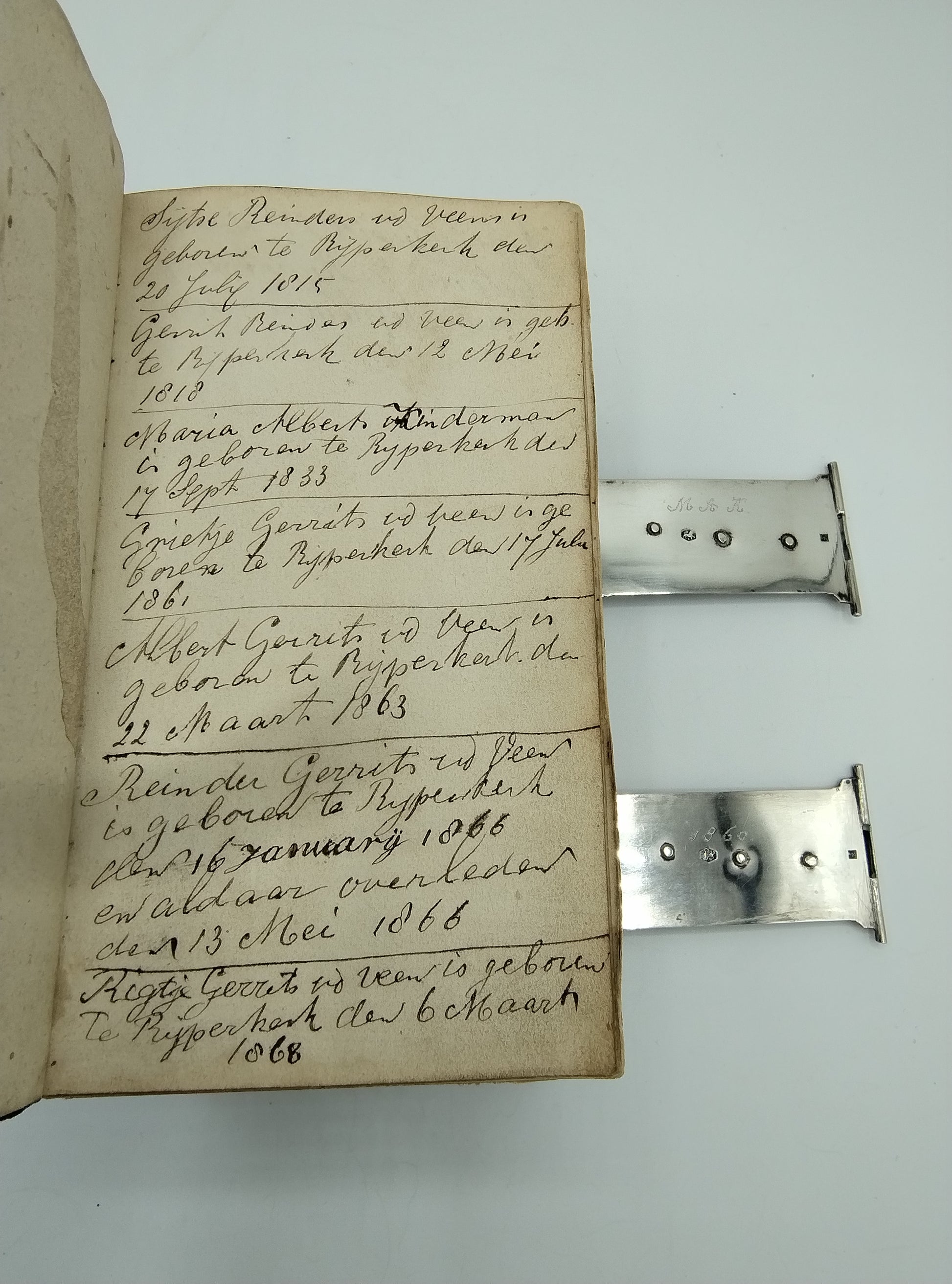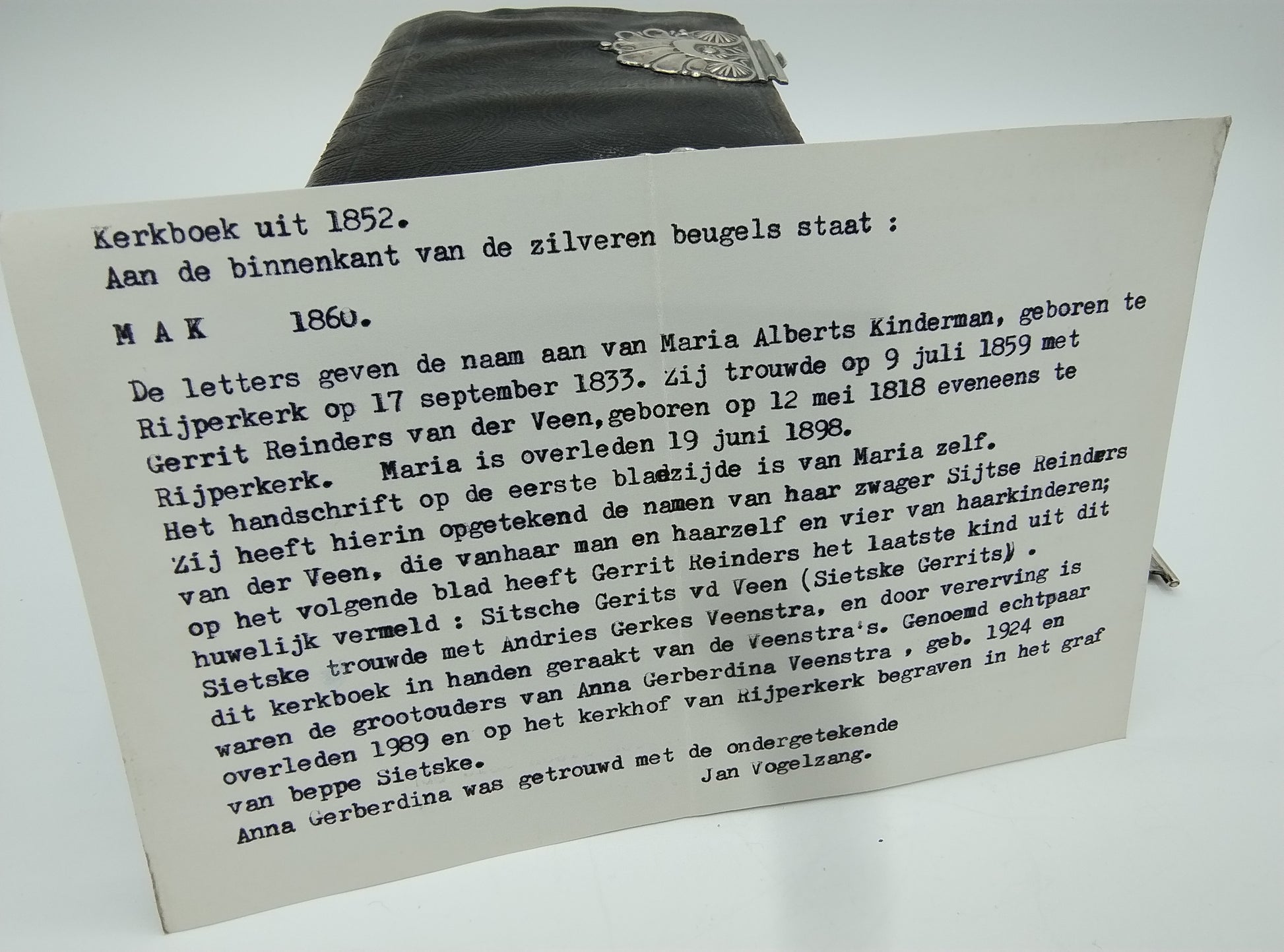 The Bible locks were made by A. Kooiman from Schoonhoven, who worked from 1837 to 1860. The initials MAK and the year 1860 are engraved on the inside.