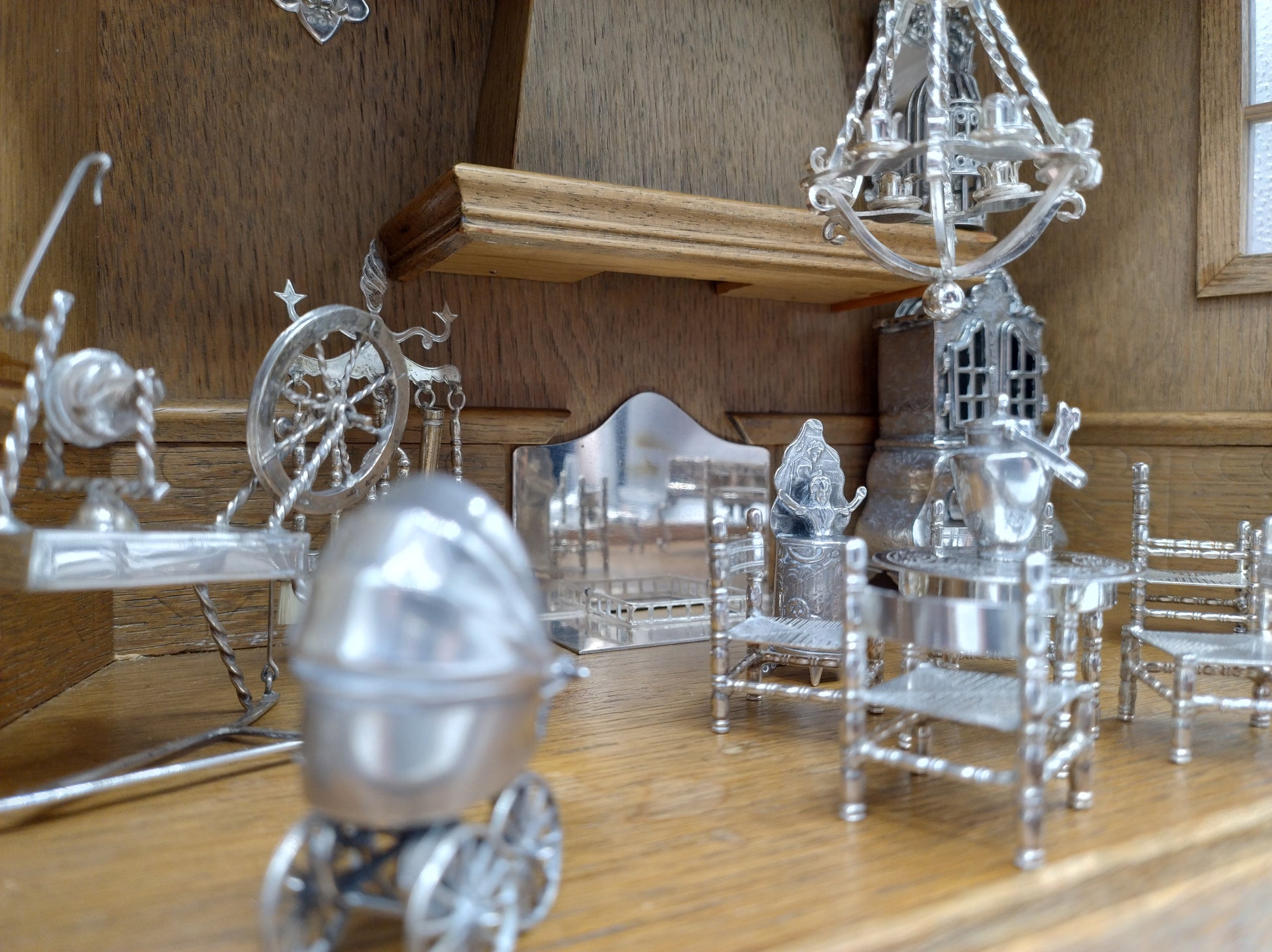 Oak room with 21 silver miniatures, Schoonhoven ca. 1975