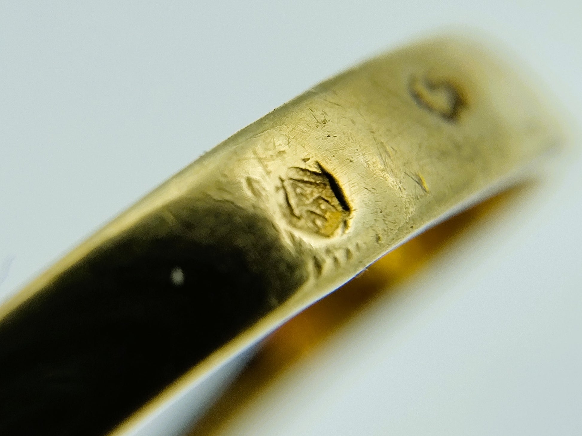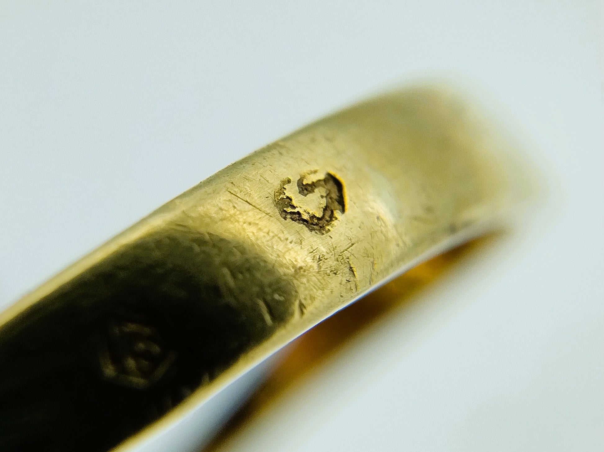 This is a sturdy solid ring provided with 2 (foreign) gold hallmarks. Tested as a minimum of 14 carat.
