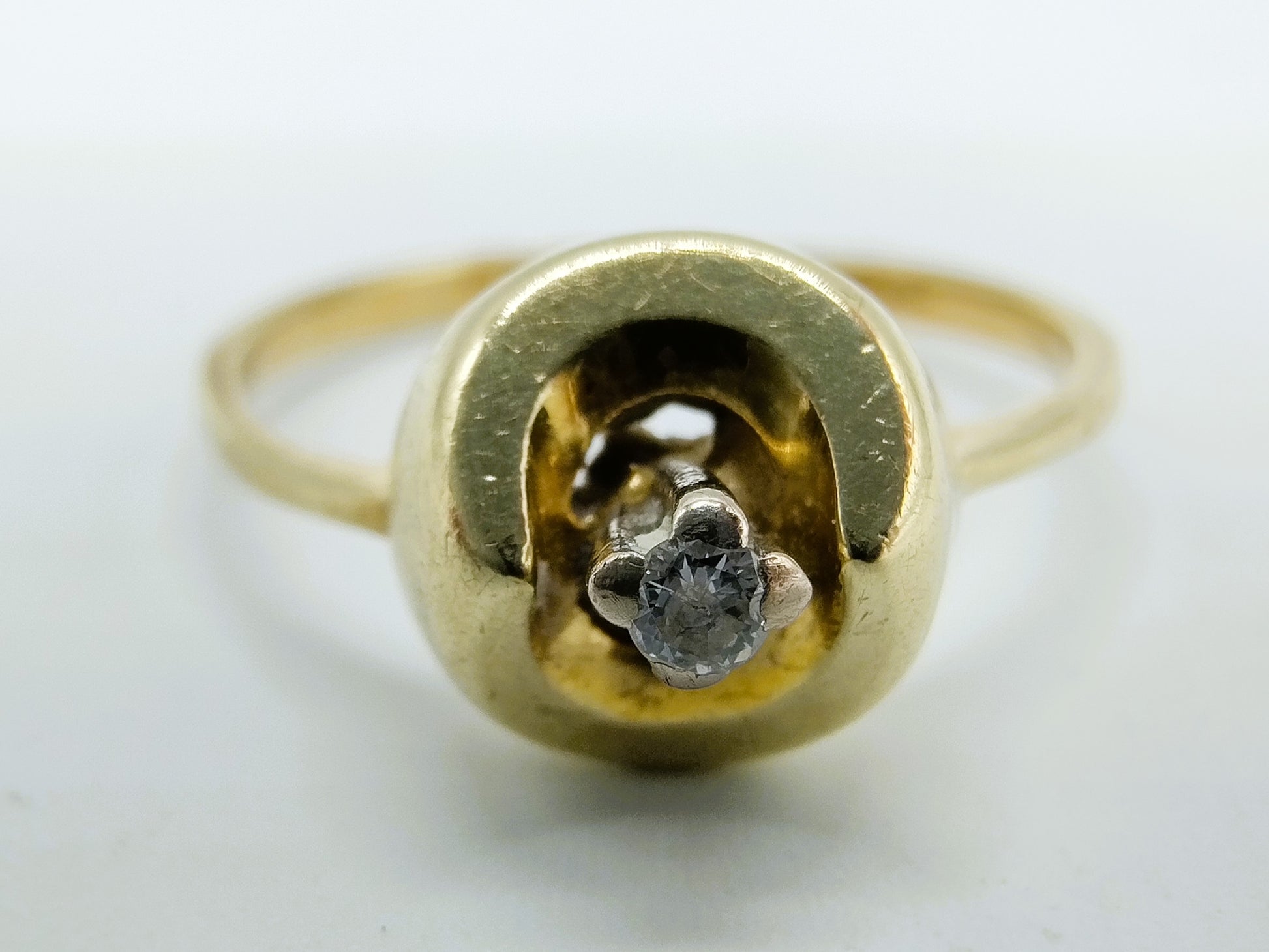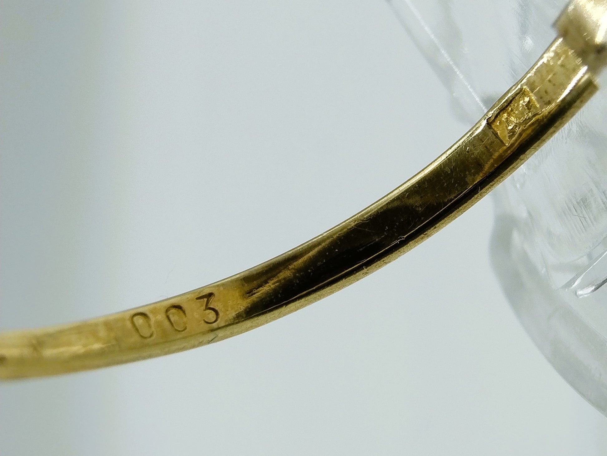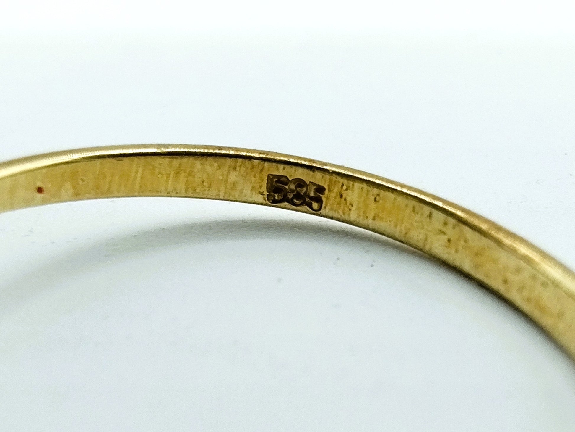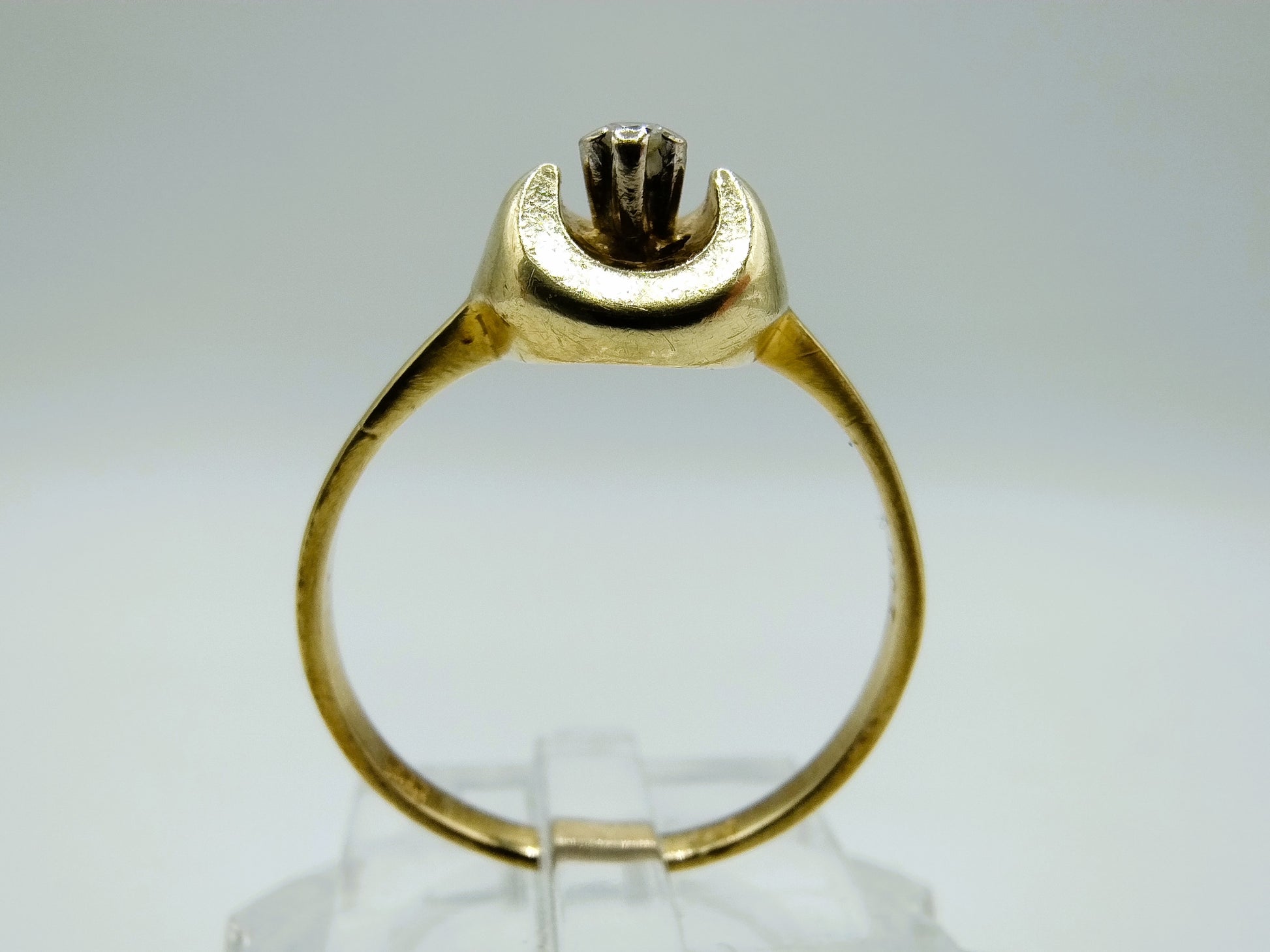 The ring is hallmarked 585 for 14 carat gold and 0.03 for the carat content of the stone. Finally hallmarked with master hallmark A+.