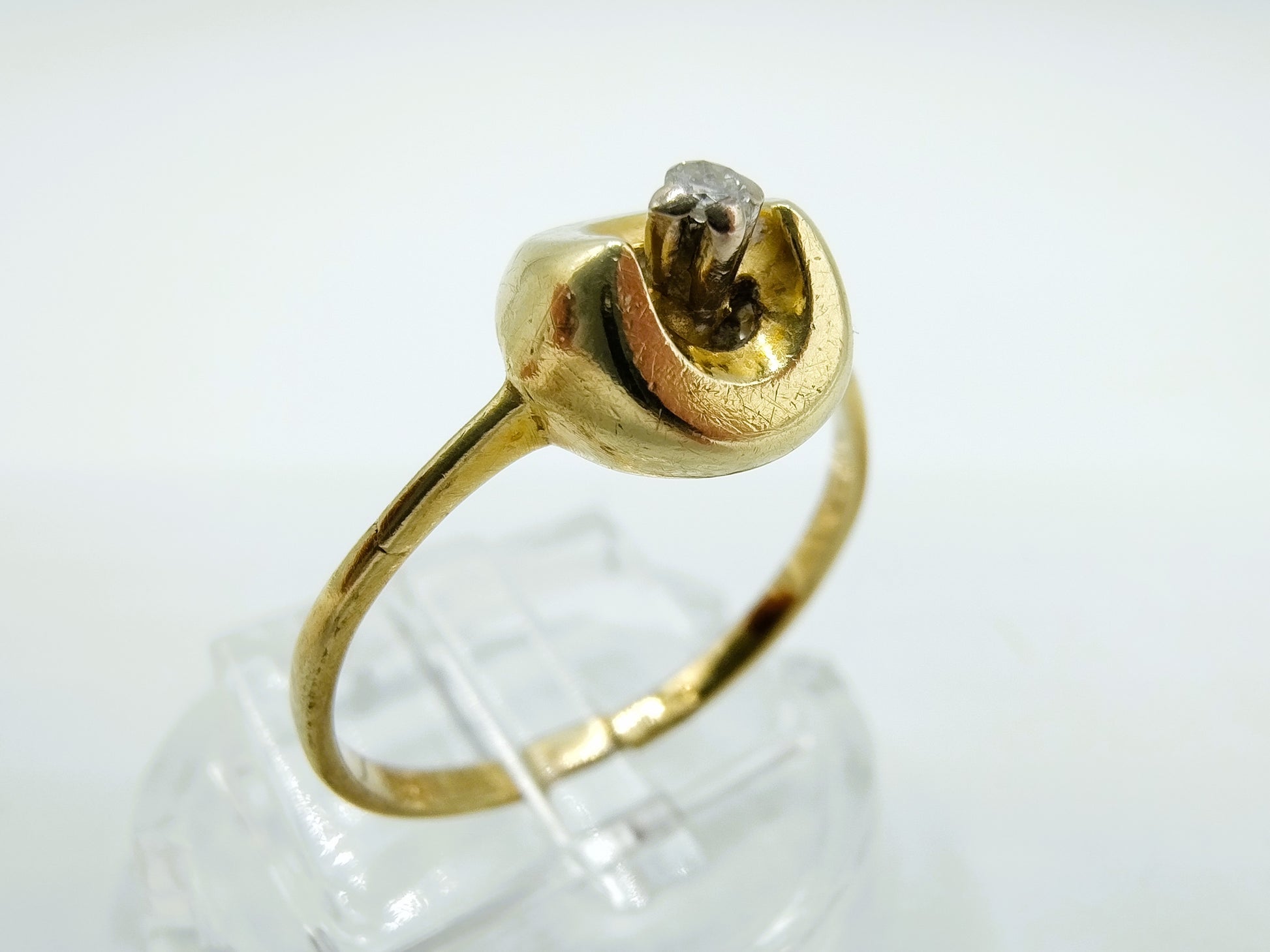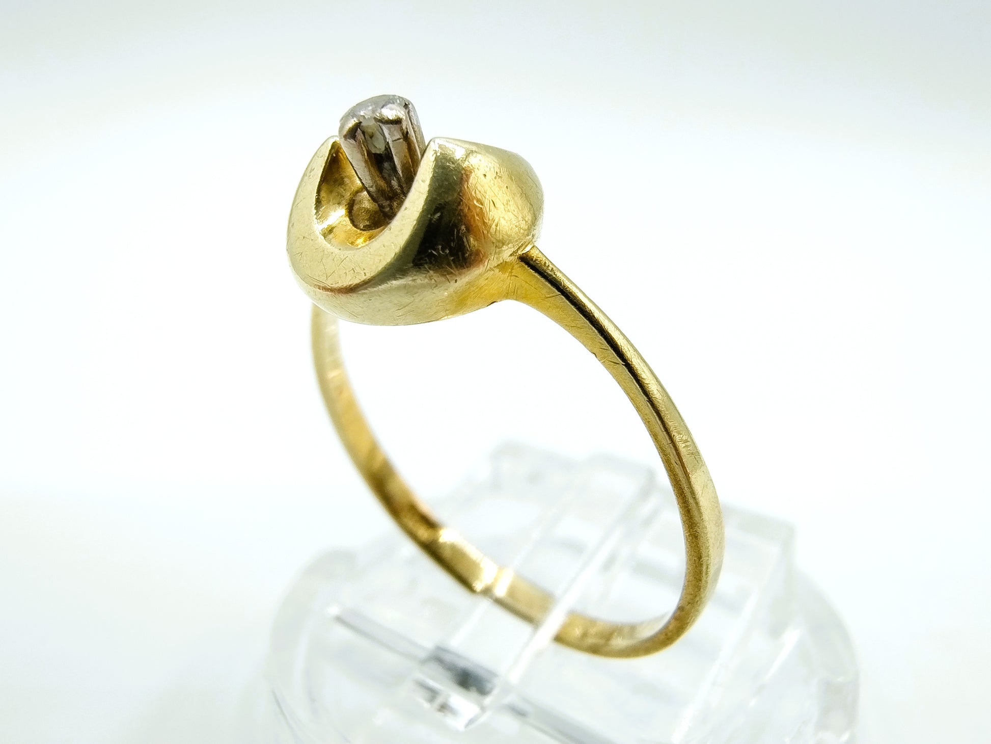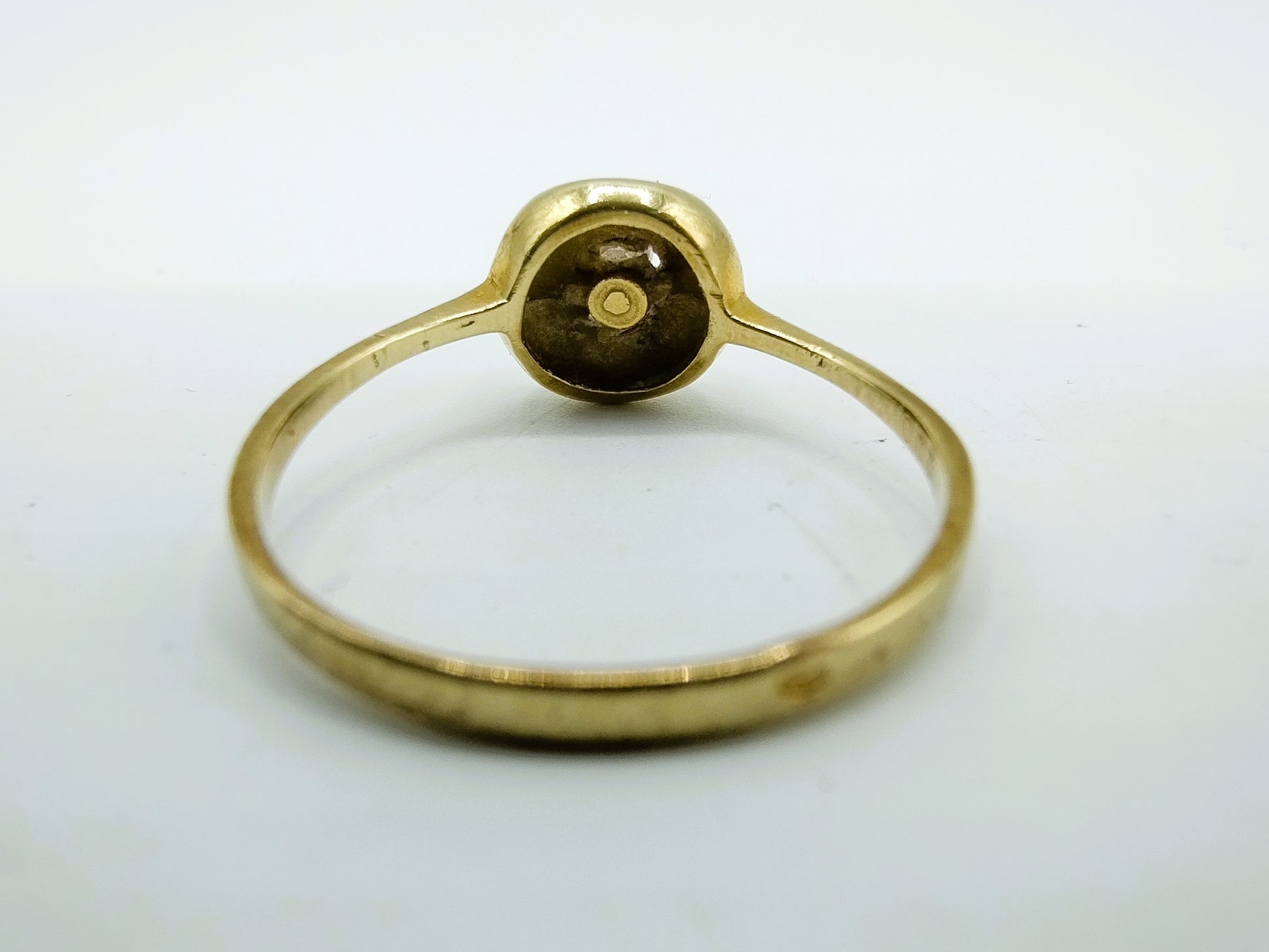 Gold ring set with a brilliant cut diamond of 0.03 ct in a chaton setting.