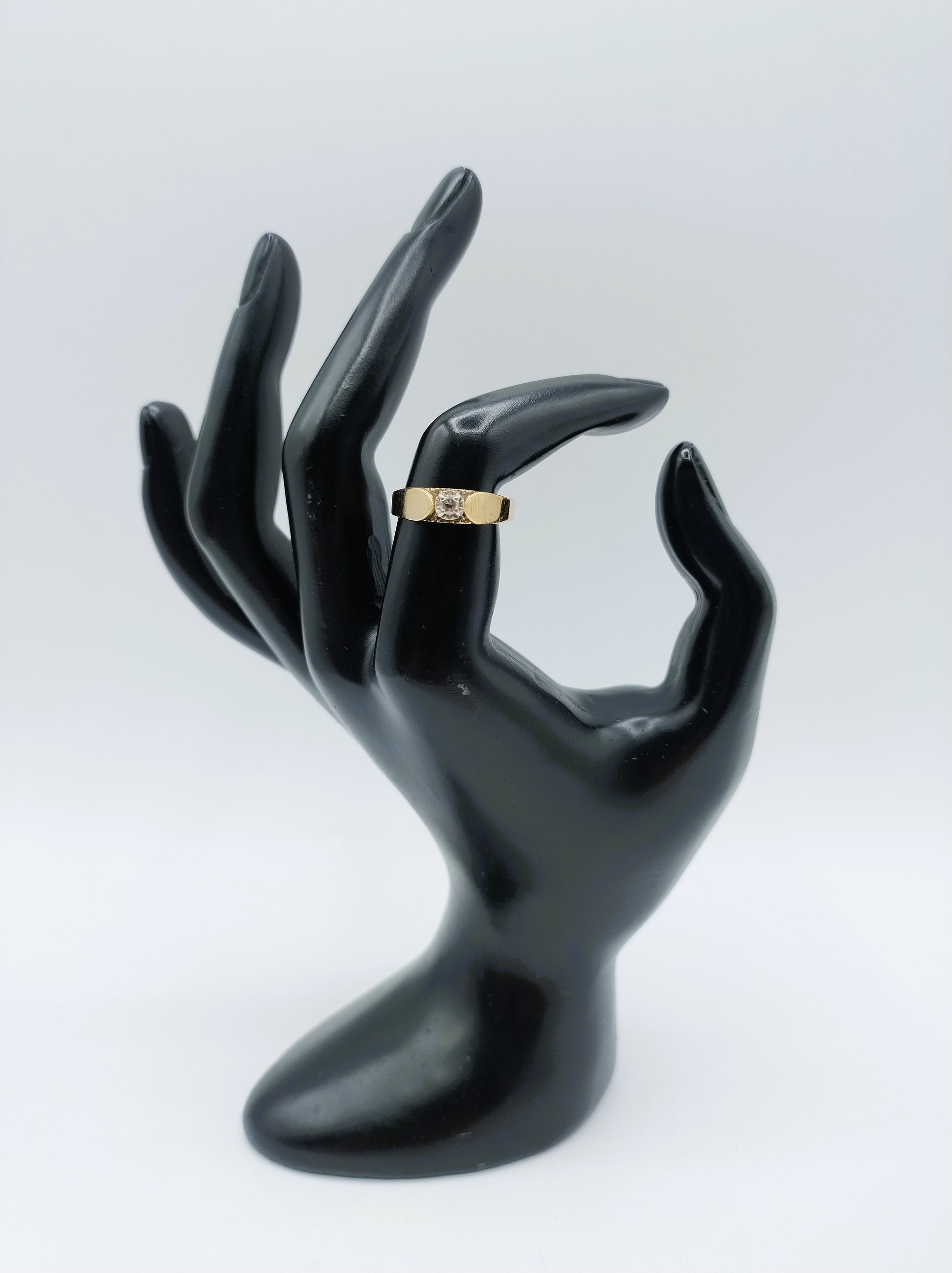 Gold solitaire ring set with a brilliant cut diamond with a diameter of approx. 2.7 mm, which represents 0.07 ct.
