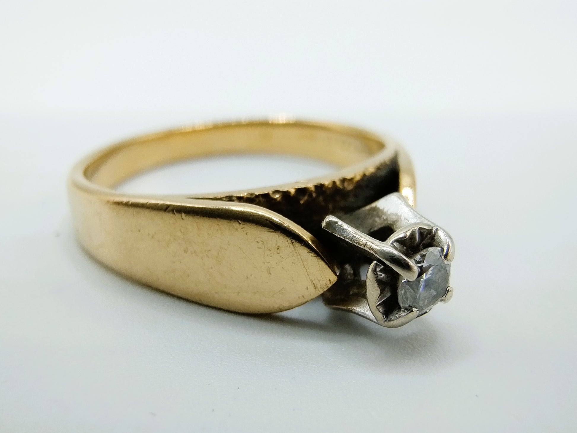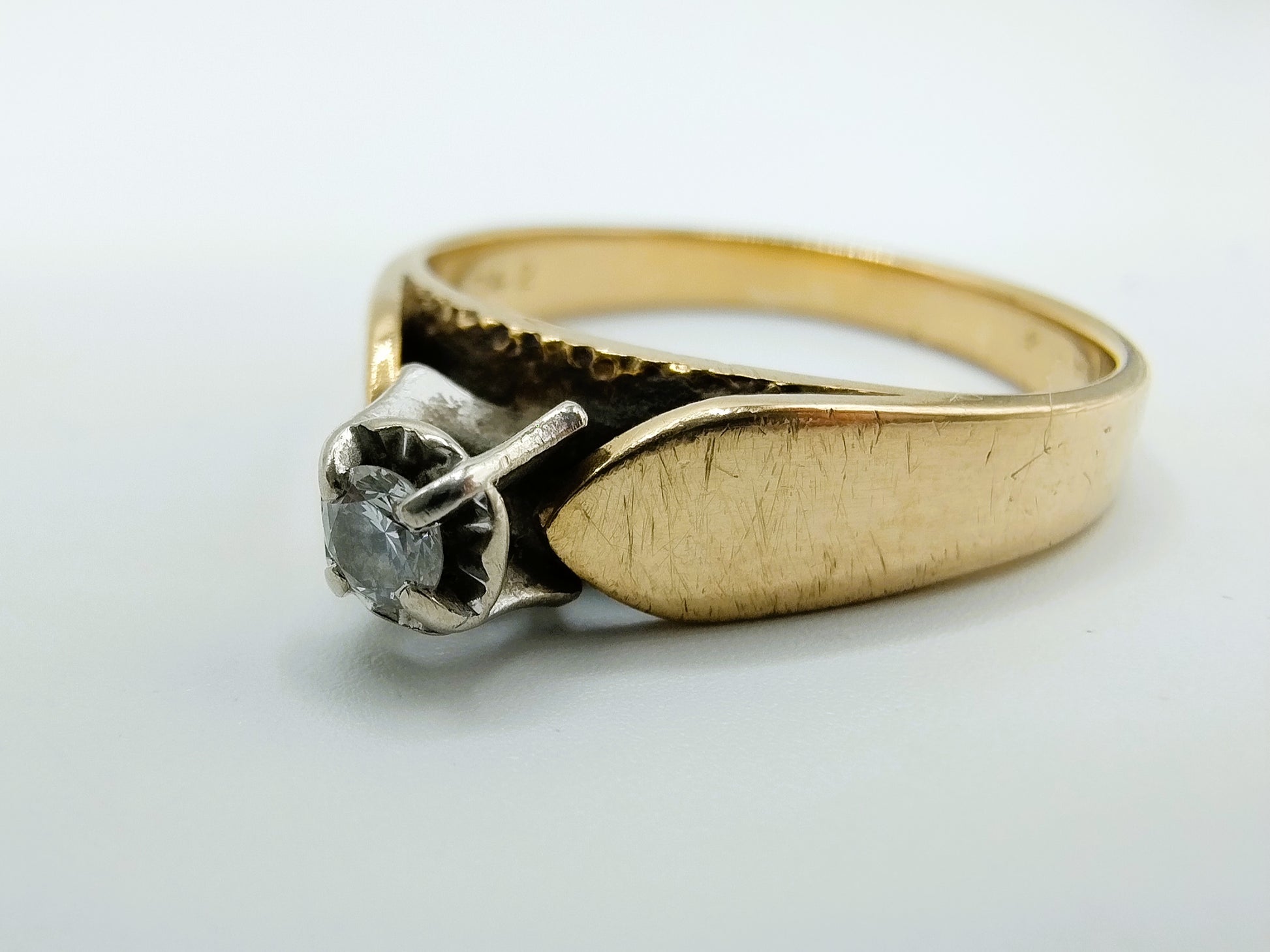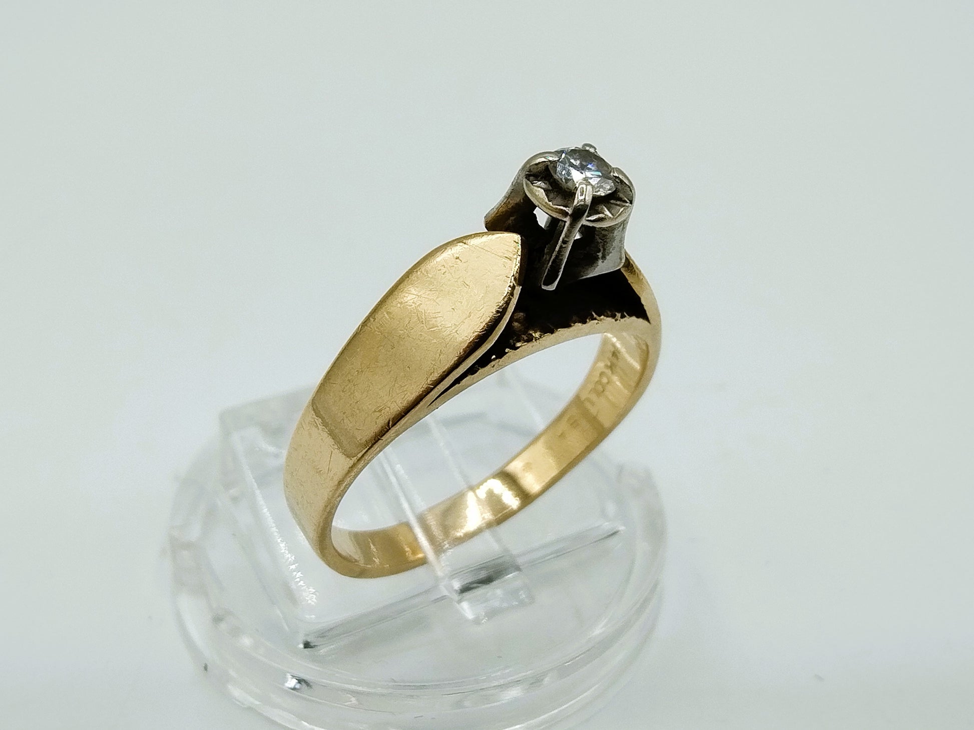 Gold solitaire ring with diamond, 0.07 ct, 17 mm