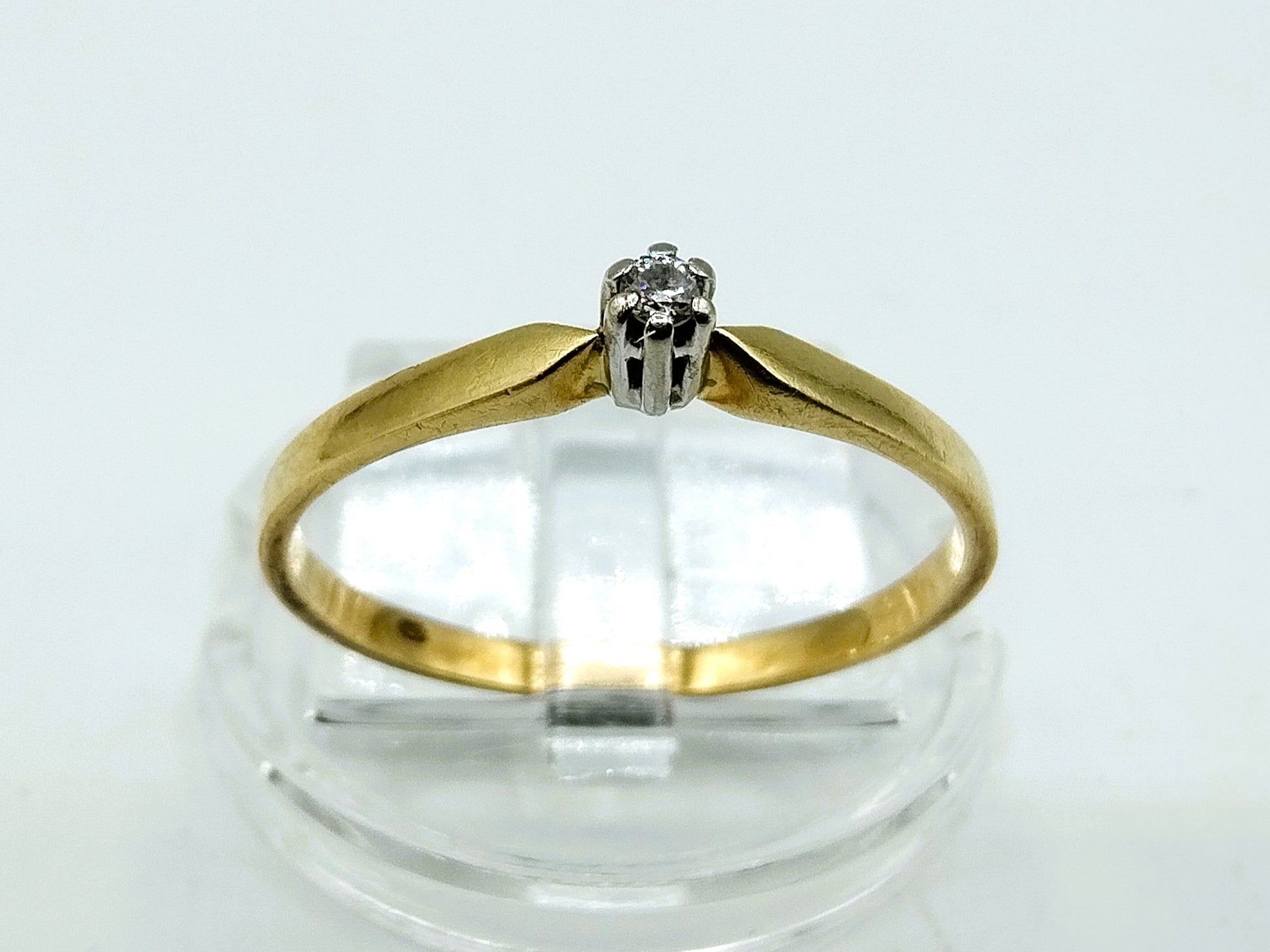 Gold solitaire ring with diamond, 17.5 mm