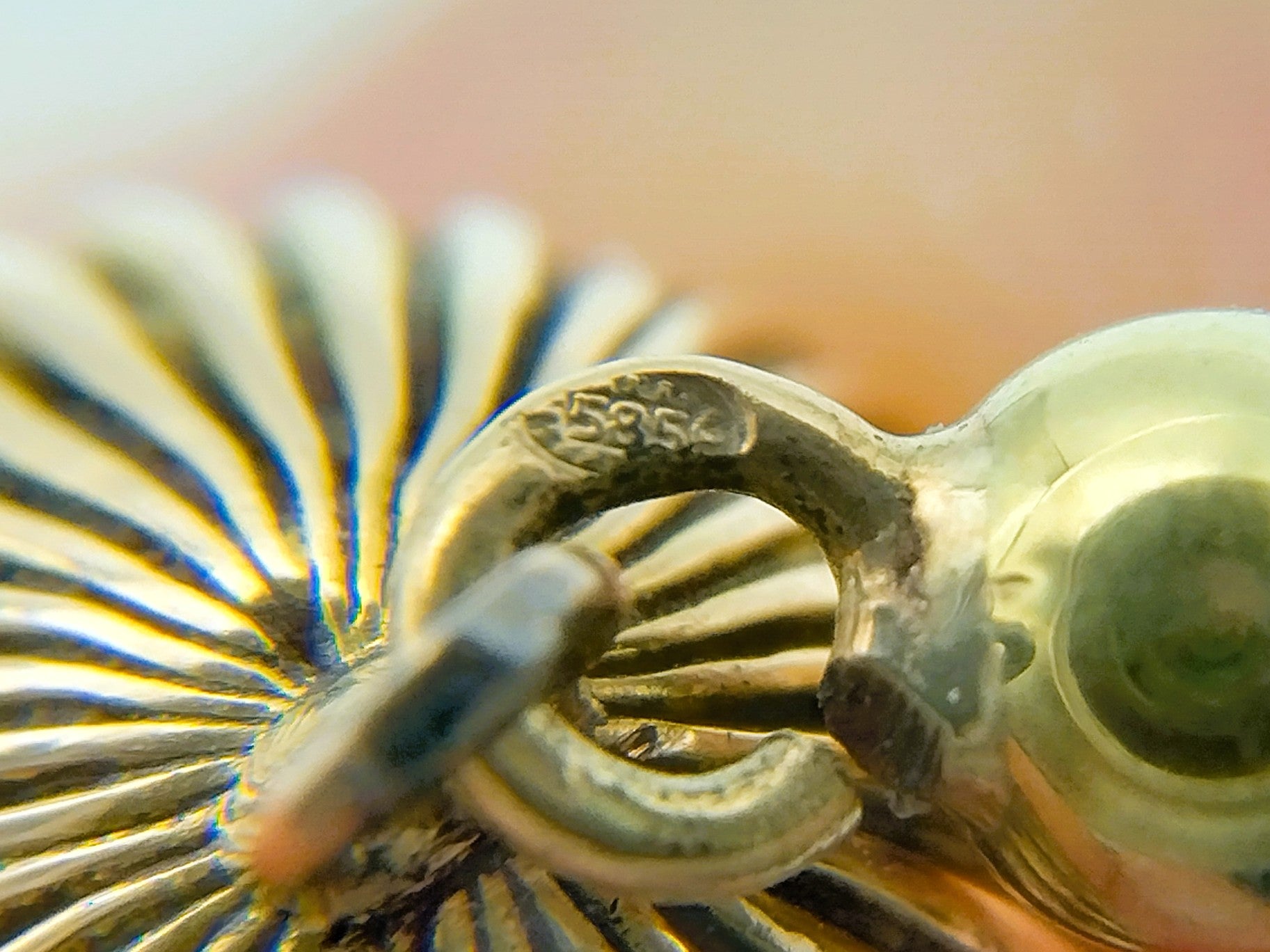 Het gouden slot is gekeurd met het eikenblad voor 14 karaats goud. Tevens gekeurd met moeilijk leesbaar meesterkeur.