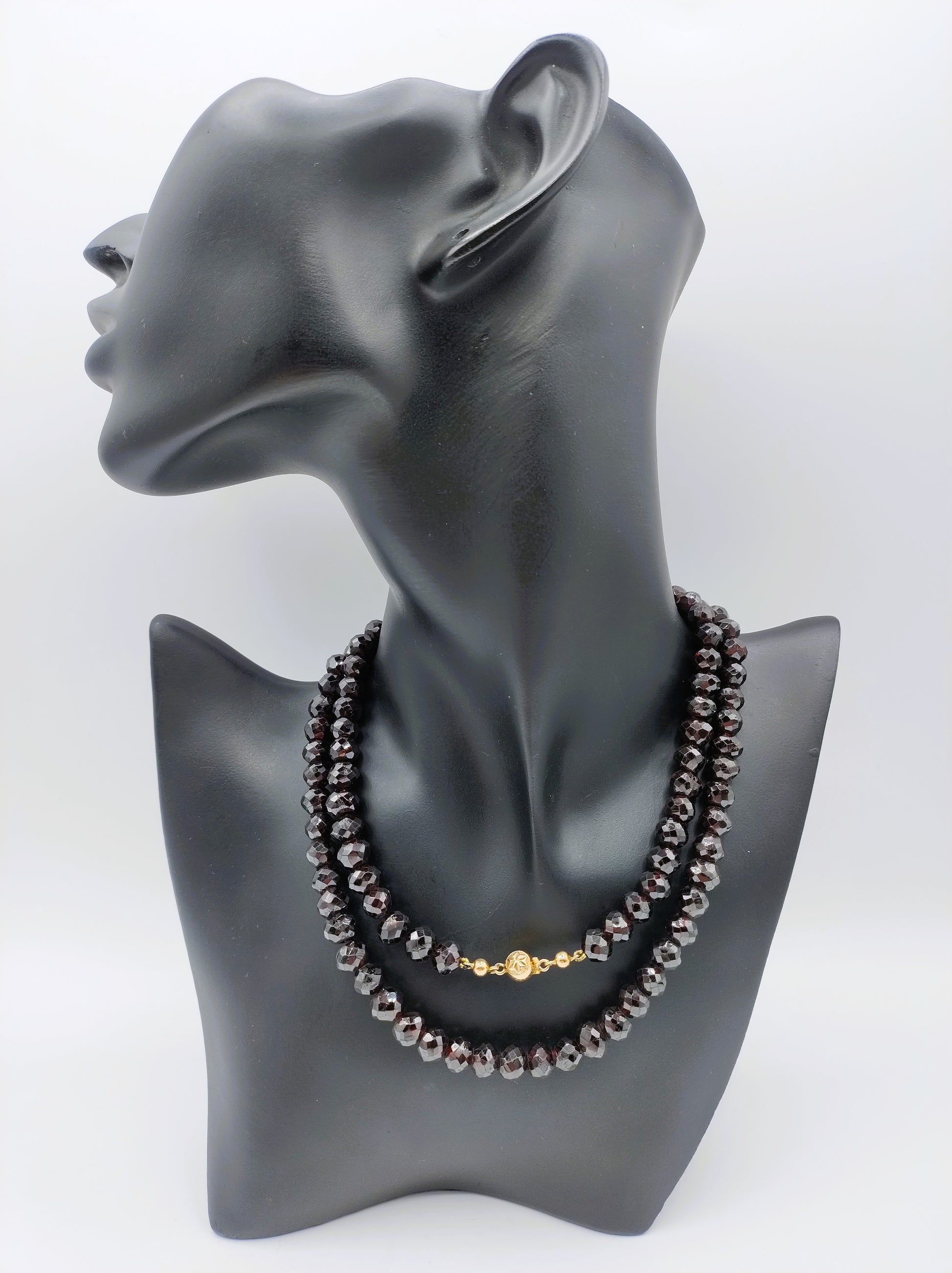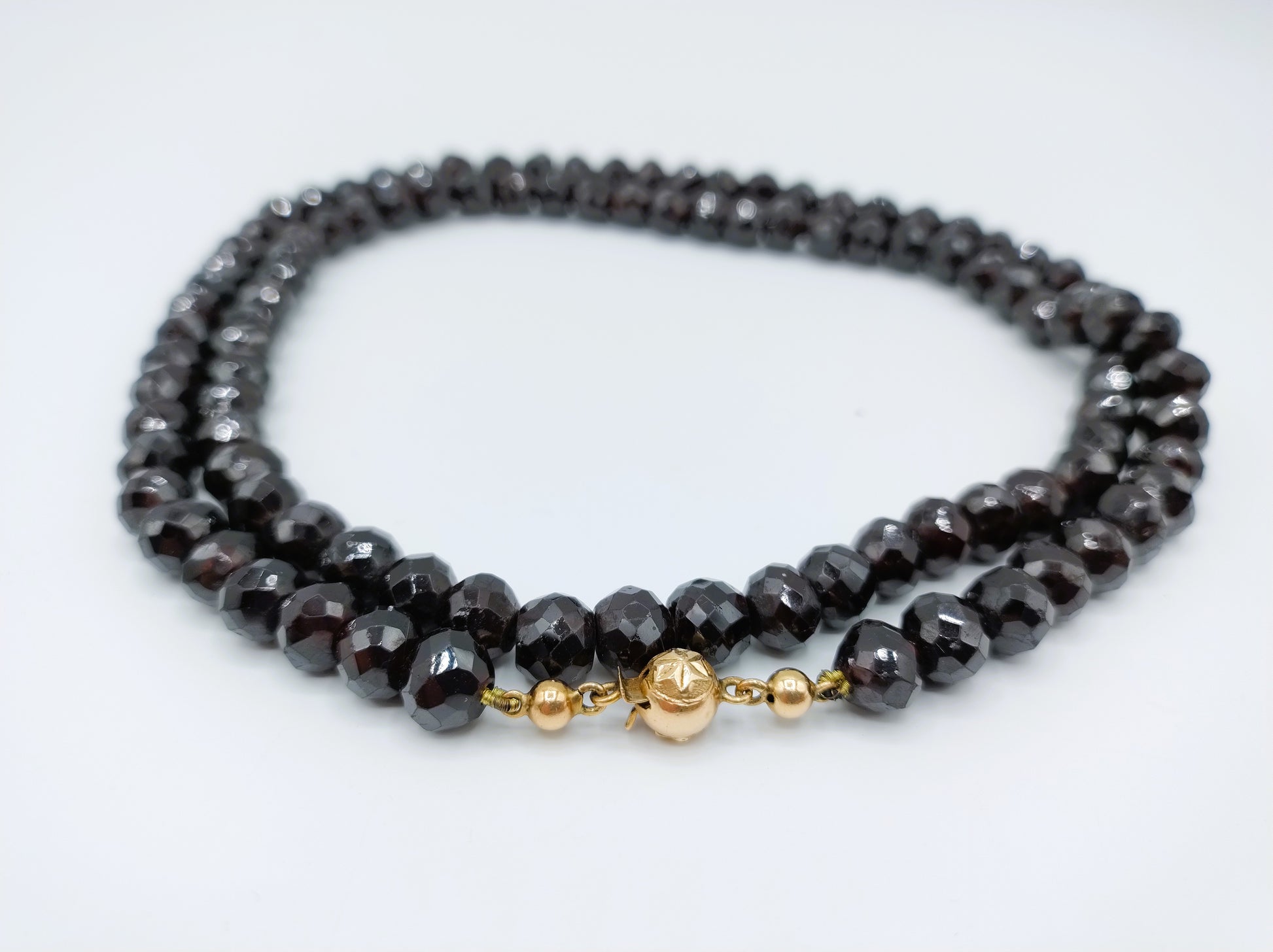 The gold clasp is hallmarked with the oak leaf for 14 carat gold.