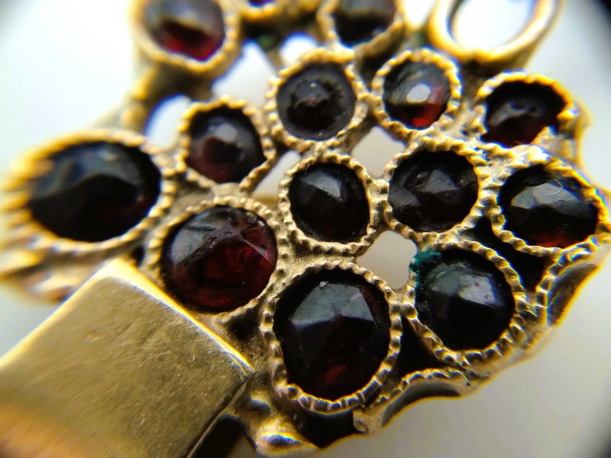 The clasp is not hallmarked, but tested as at least 14 carat gold. (585/1000)