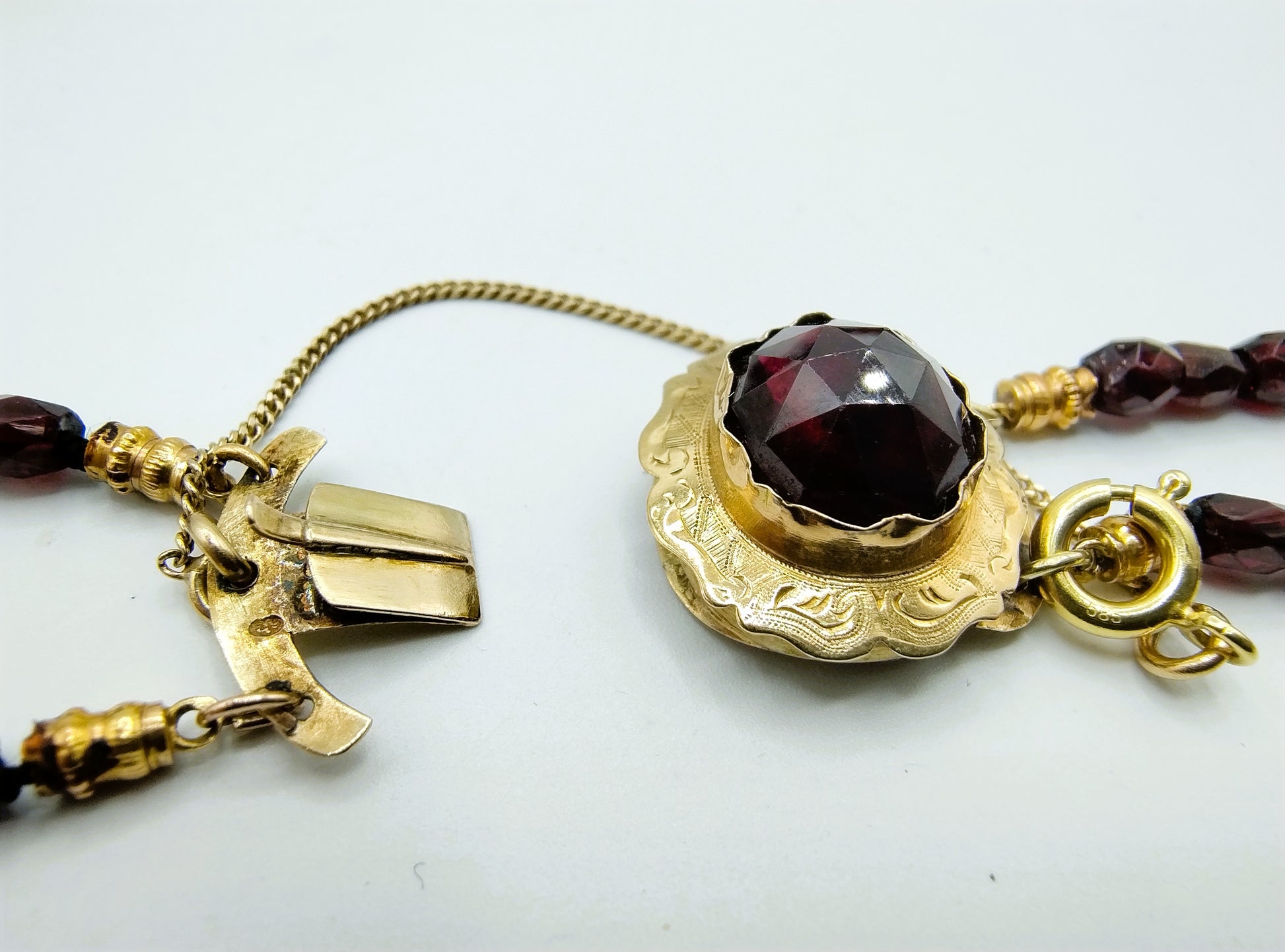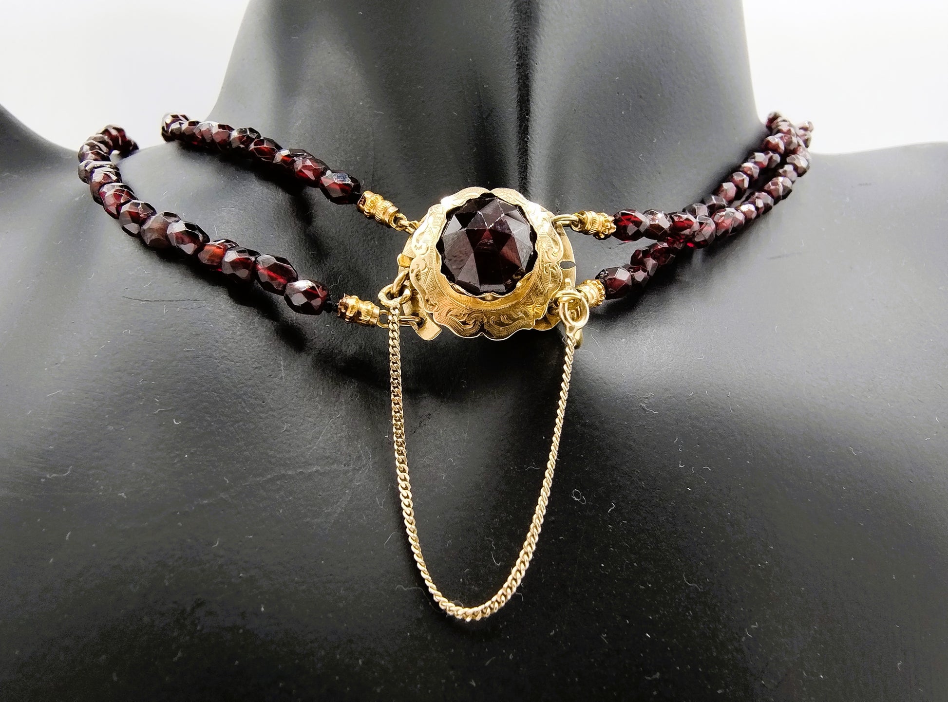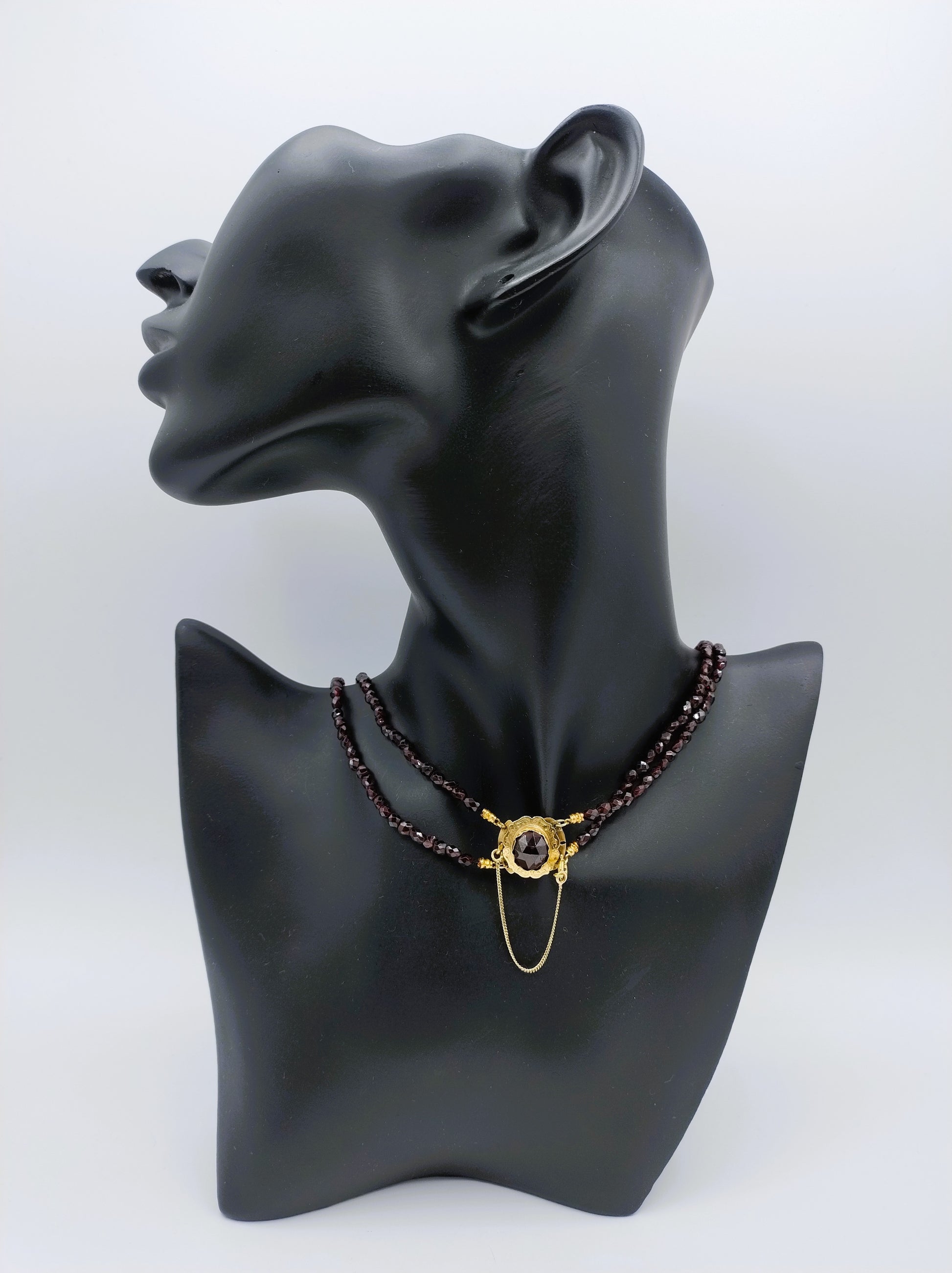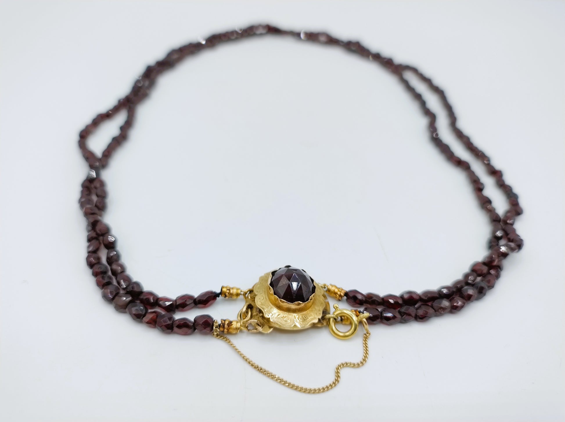 Garnet necklace with gold clasp, 50 cm.