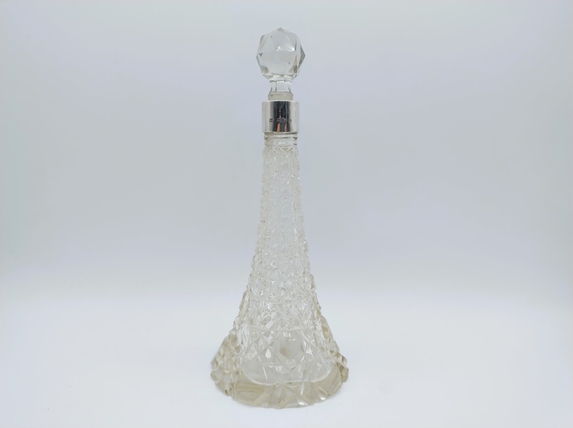 Crystal decanter with silver rim, H. Bourne, Birmingham, 1898