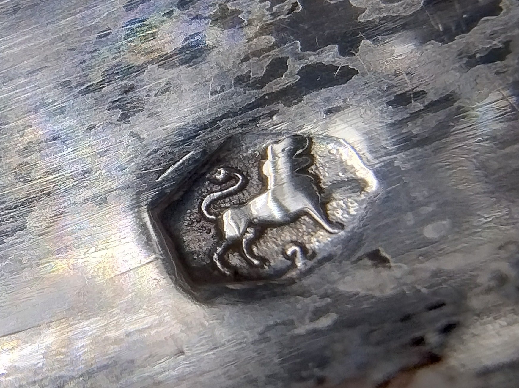 The silver is marked with the 2nd grade hallmark and an illegible master hallmark.