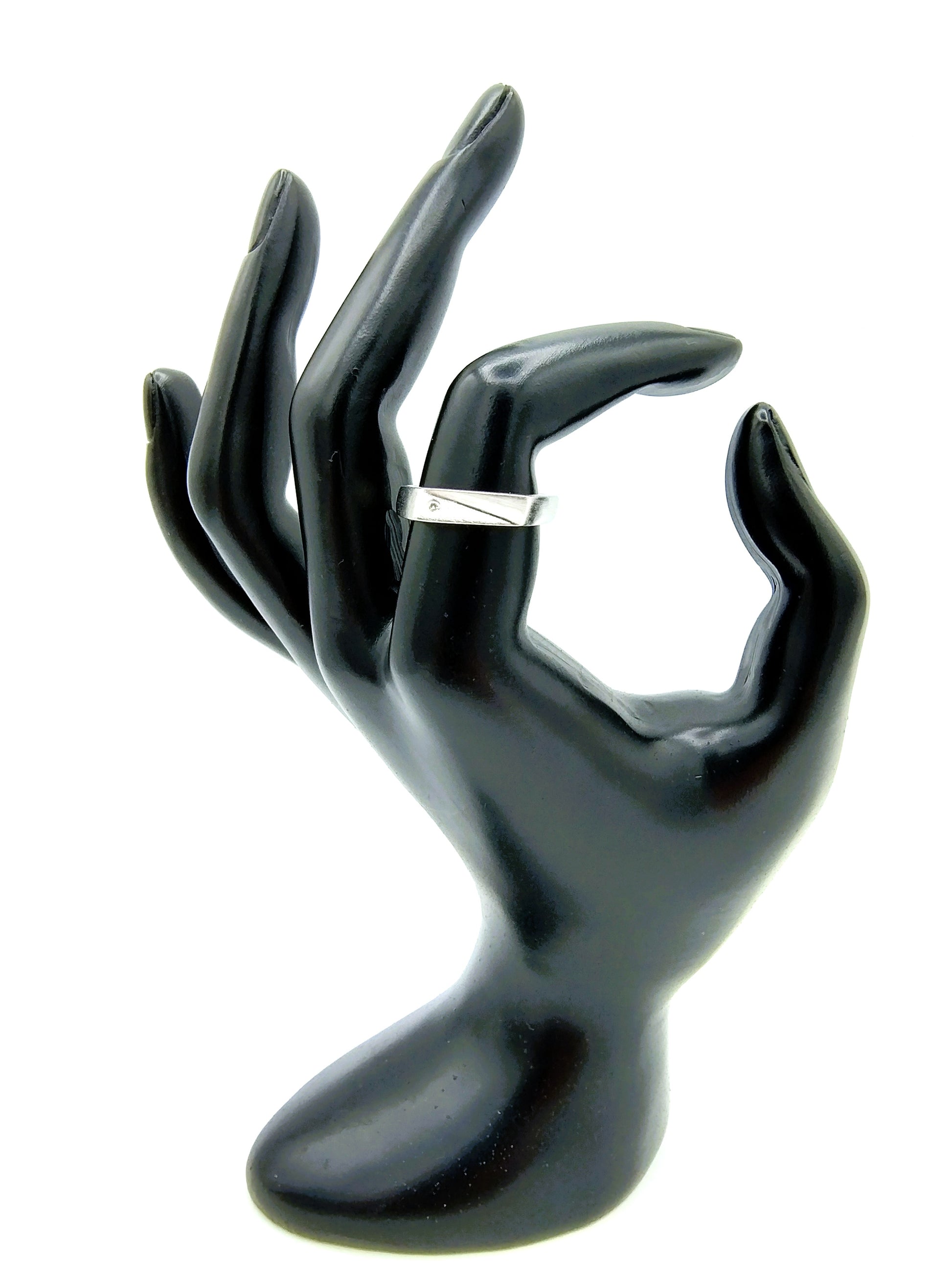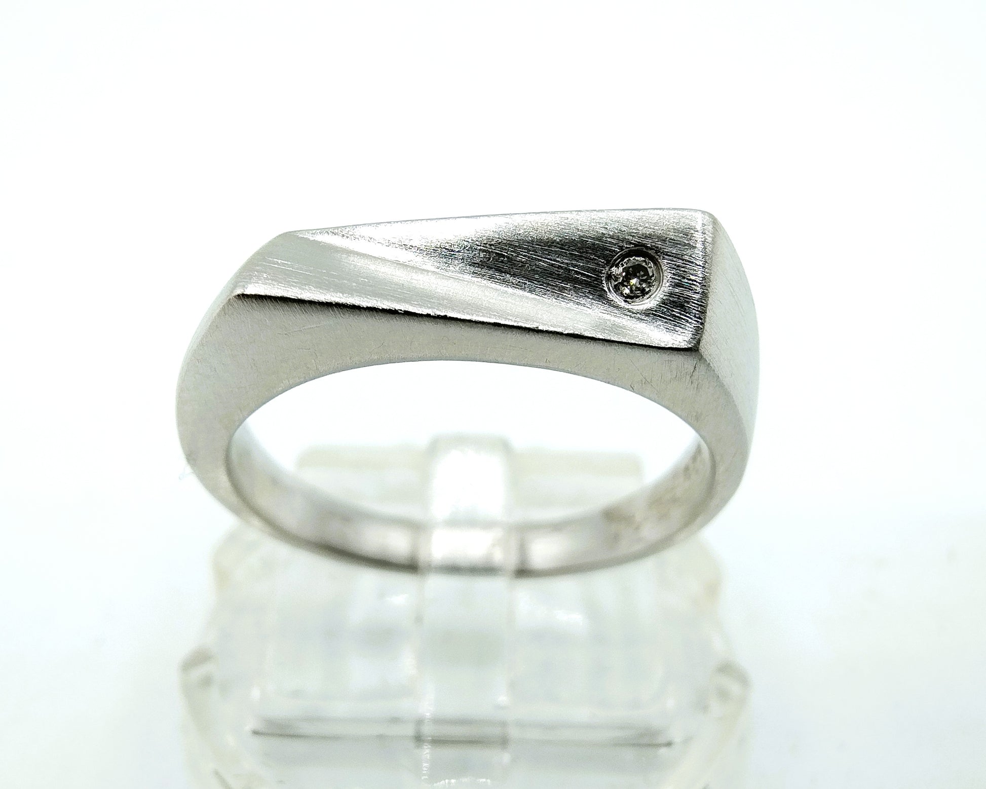 Silver ring made of matt brushed silver. Equipped with a real diamond with a diameter of: 1 mm.