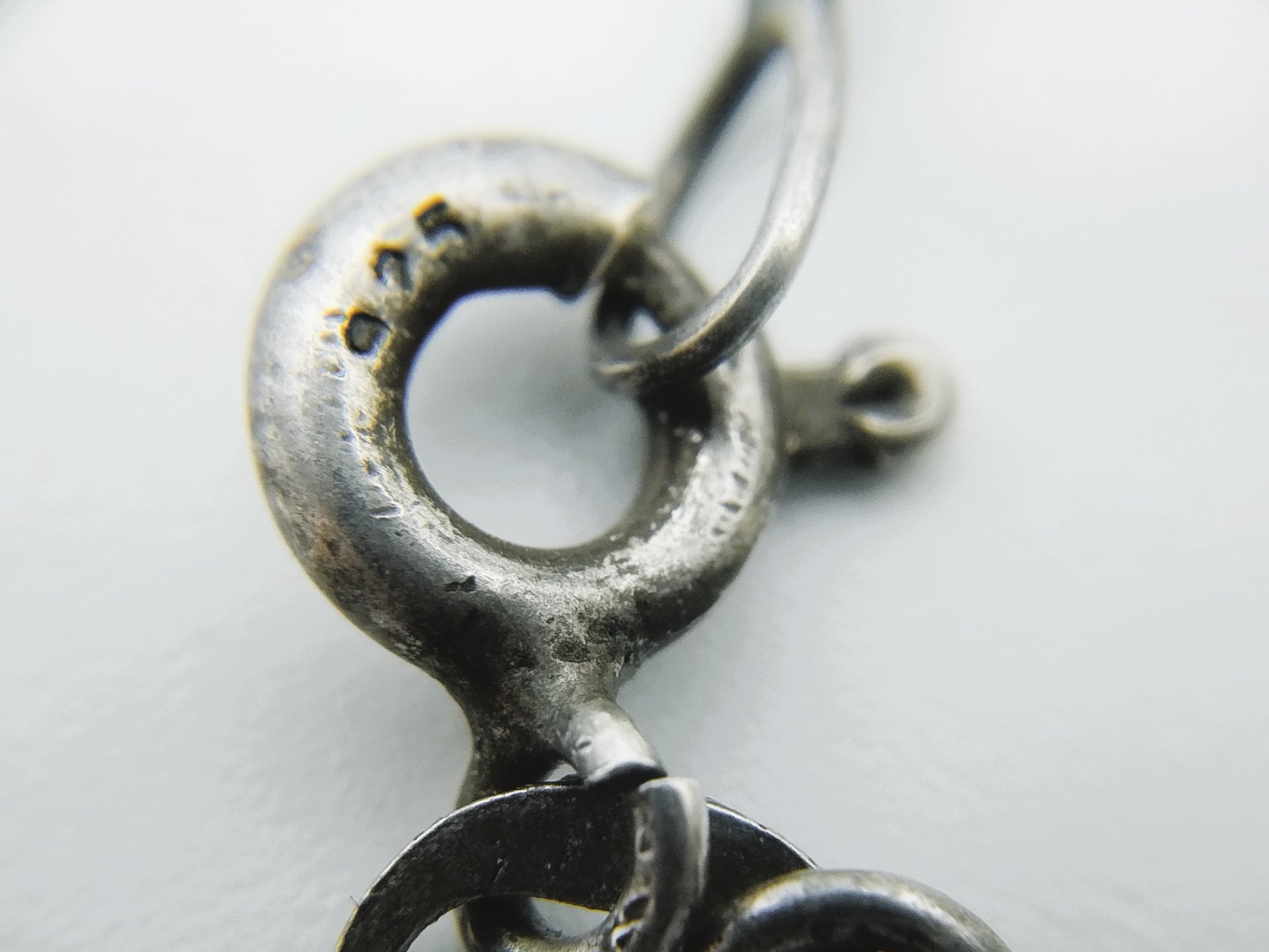 The silver clasp has a diameter of 1.1 cm. It is hallmarked 835 for second-grade silver.
