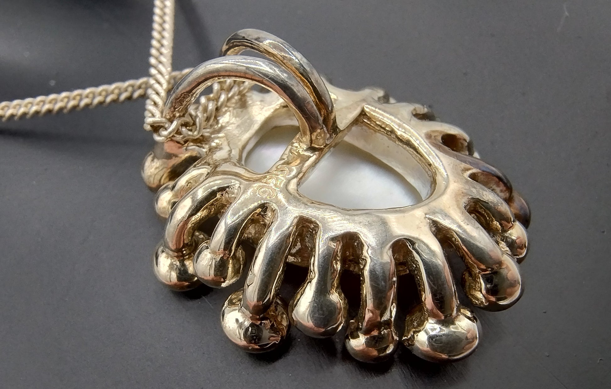 Gold plated silver pendant with mother of pearl and 6 zirconias