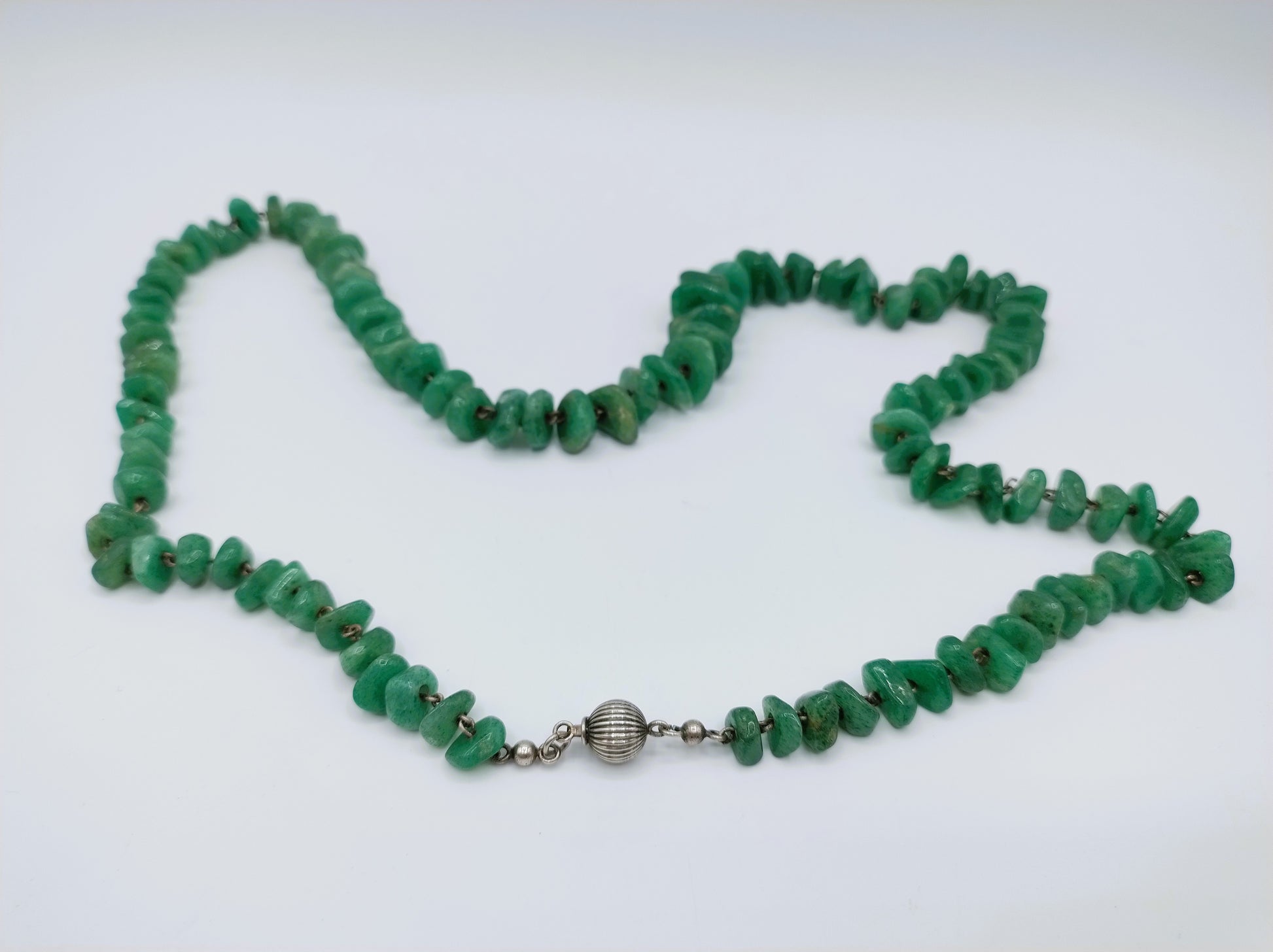 Vintage aventurine necklace with silver ball clasp, 73.5 cm