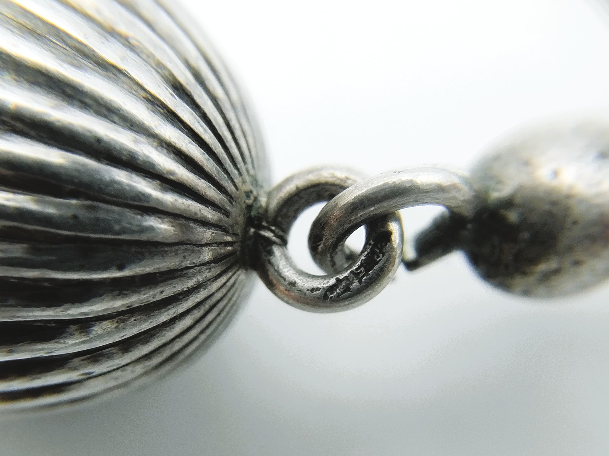 The silver clasp is decorated with a ribbed motif.