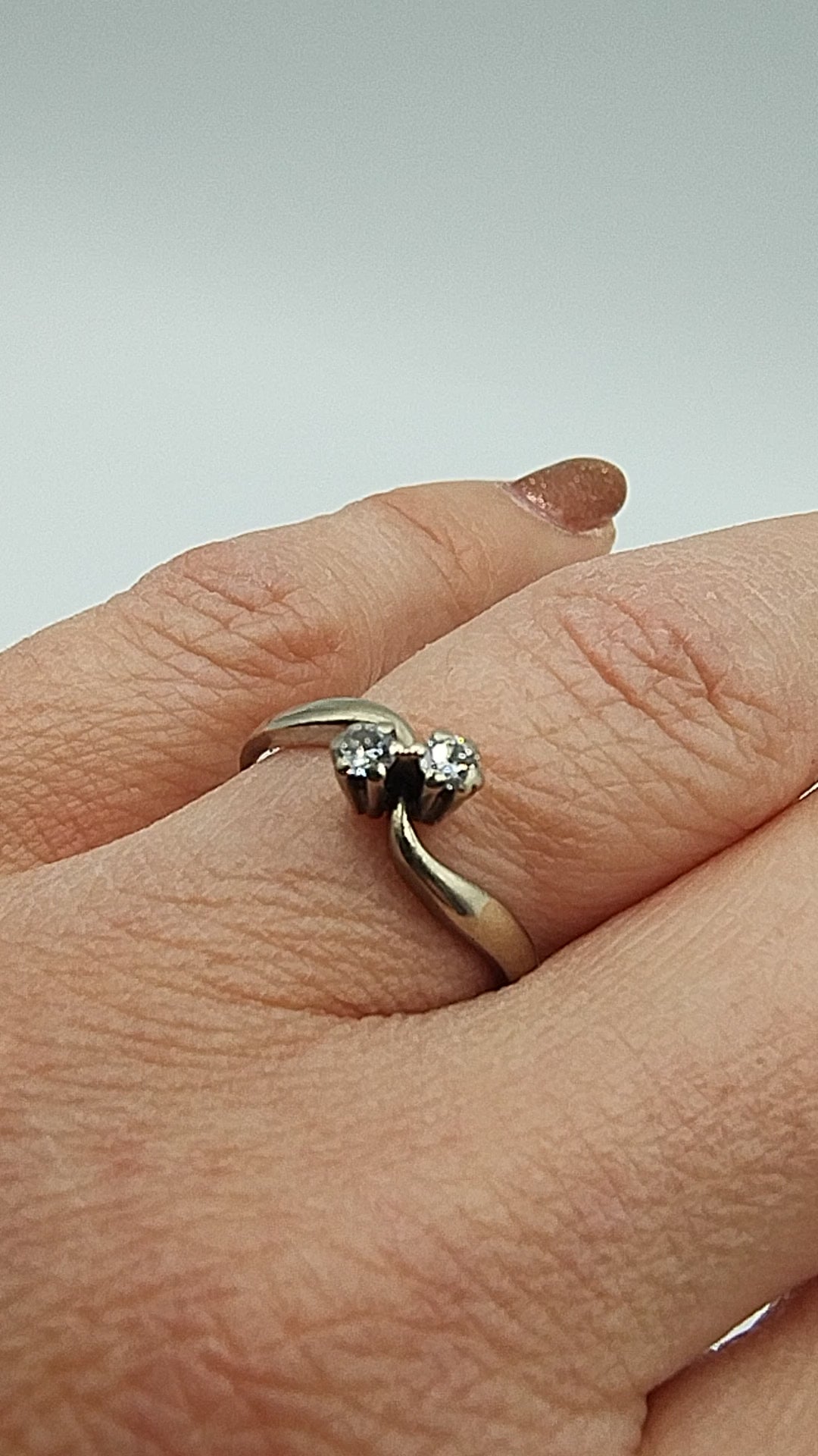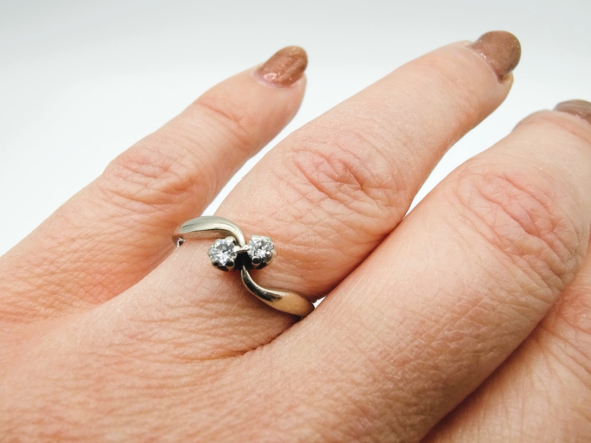 White gold ring with 2 brilliant cut diamonds totaling 0.14ct.