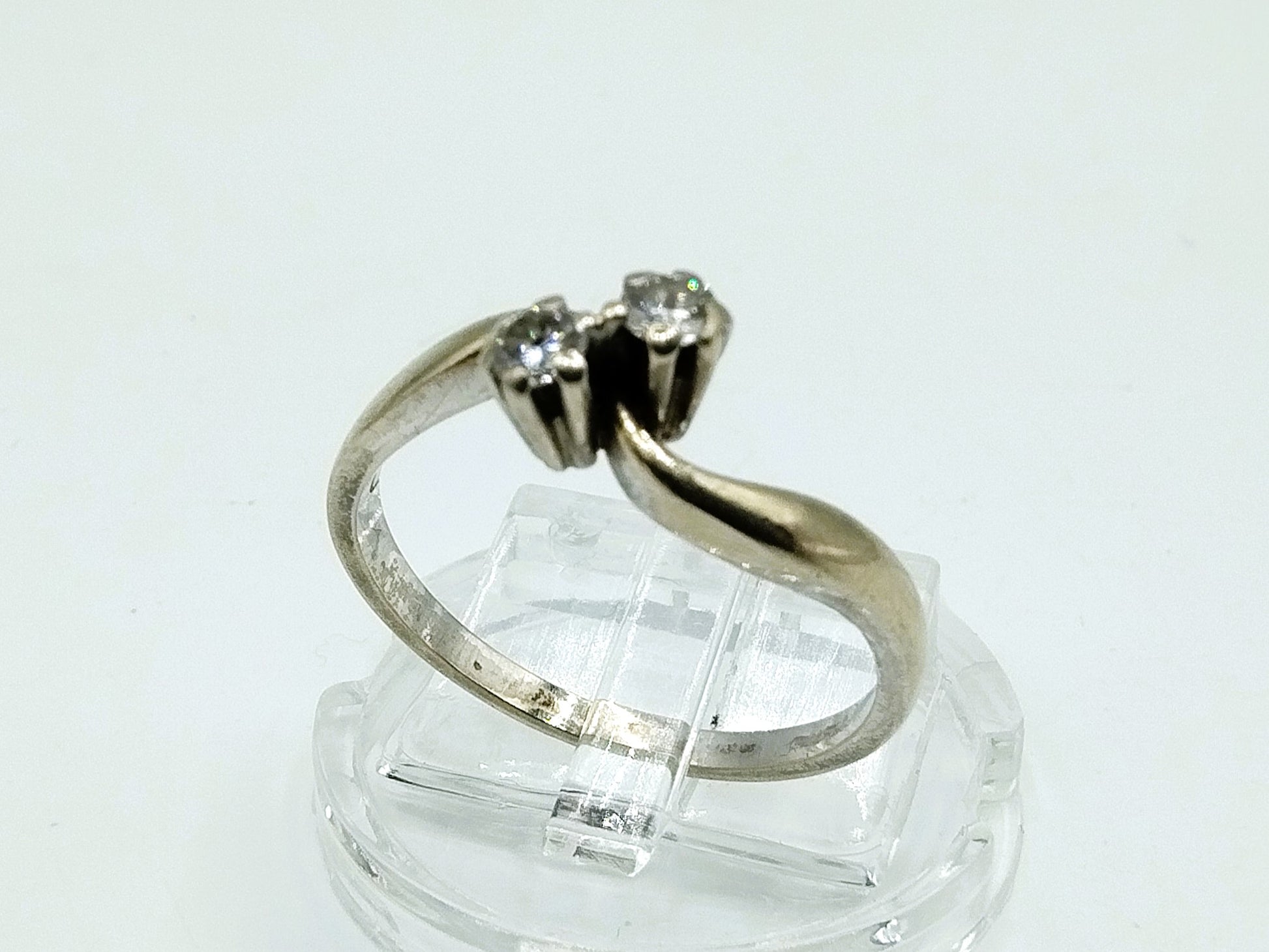 White gold ring with 2 diamonds (0.14ct), 17.5 mm