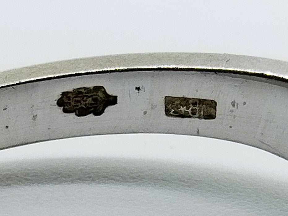 The ring is hallmarked with the oak leaf 585 for 14 carat gold, master hallmark JB*3 and 014 for the carat content.