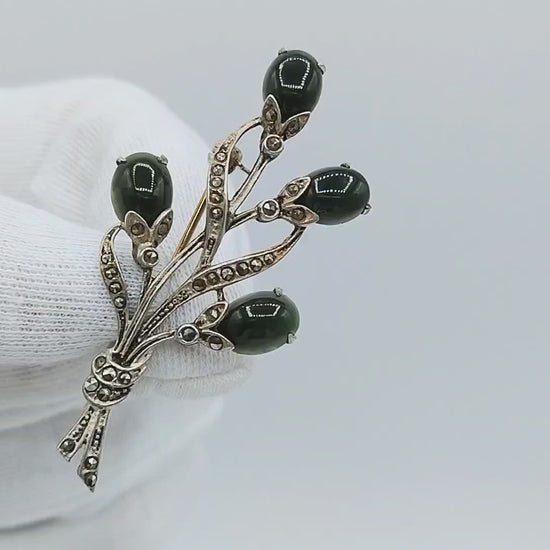 The vintage brooch is not hallmarked. Therefore, it is not sold as silver.