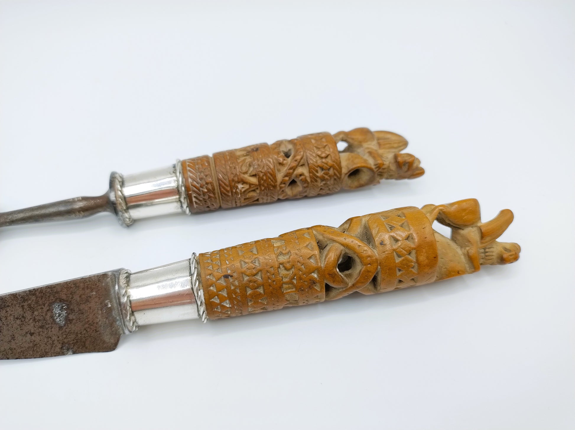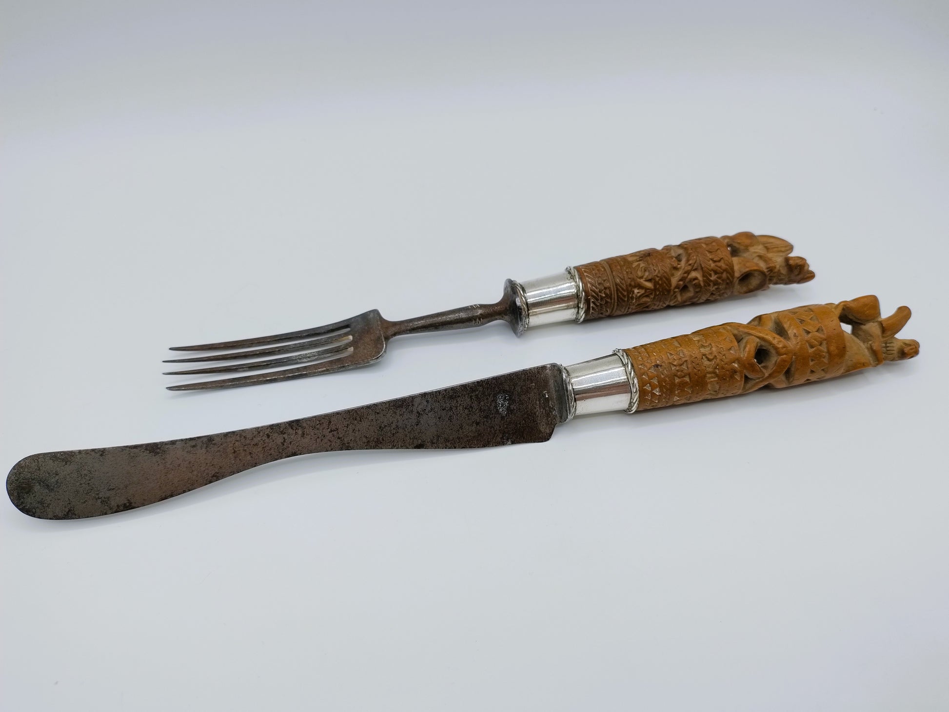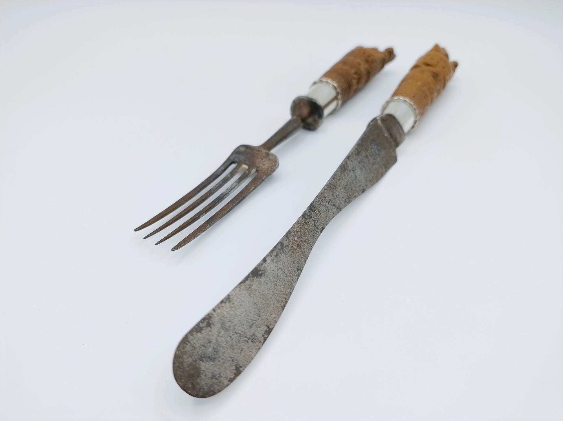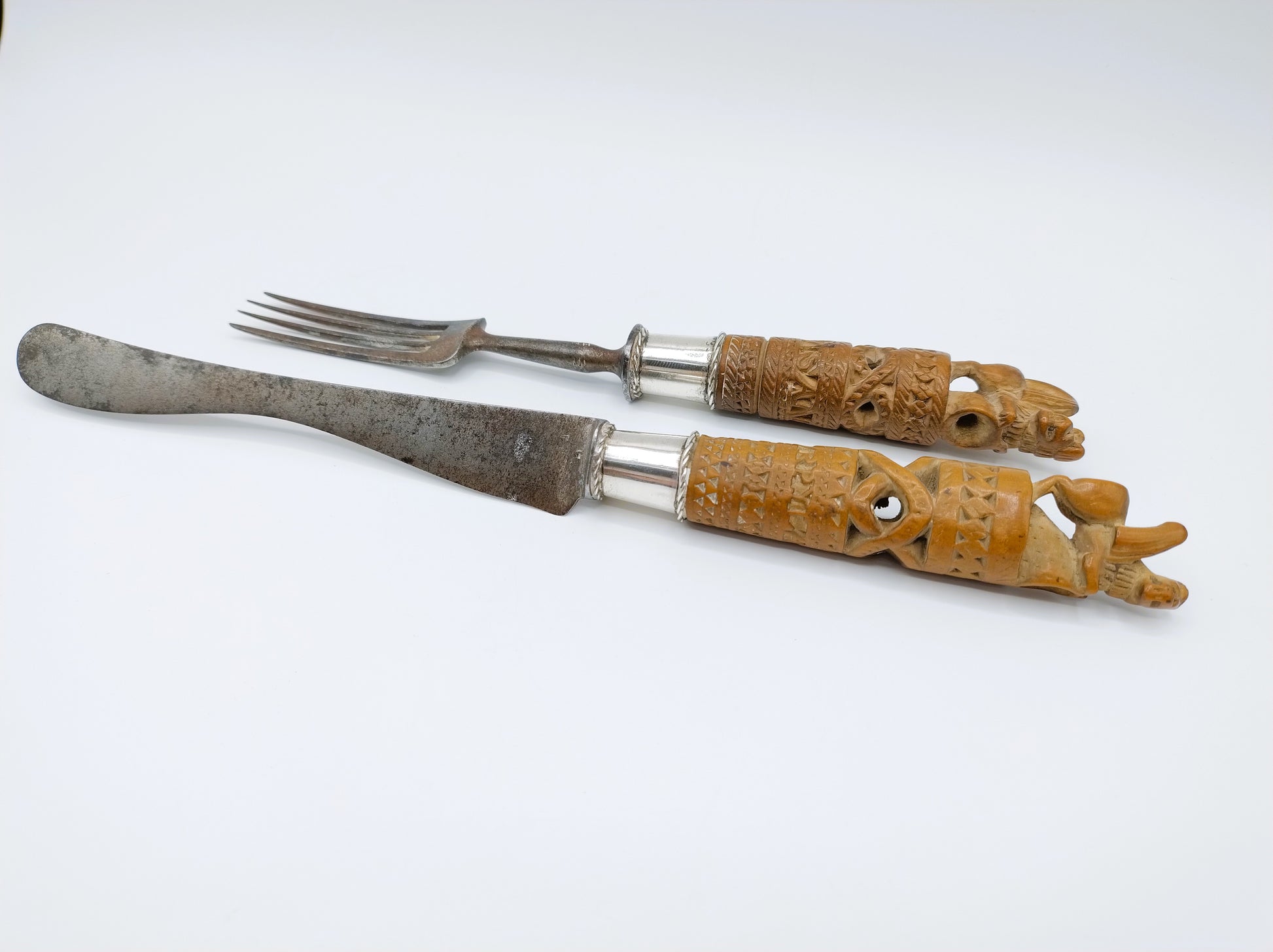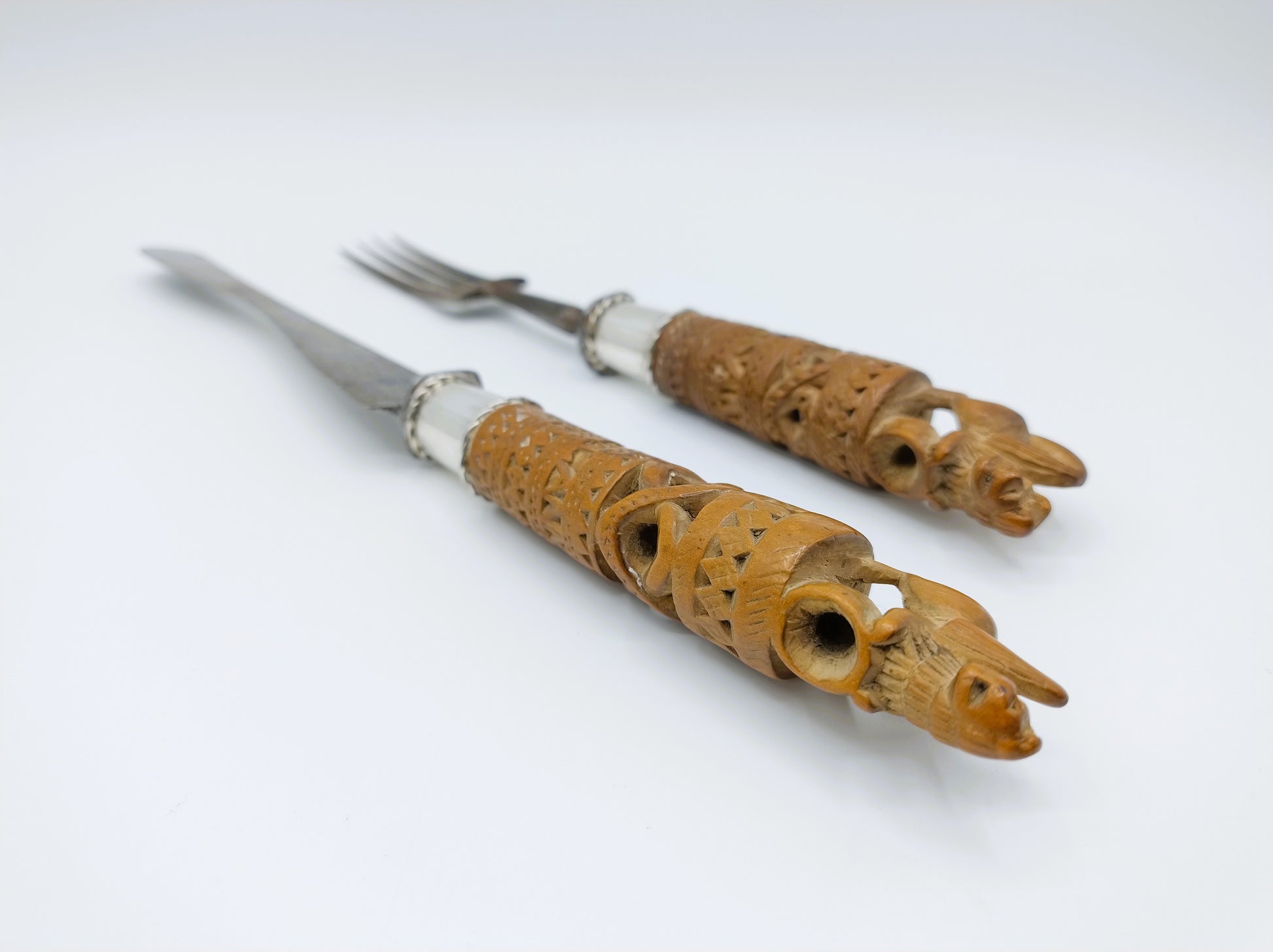 West Frisian cutlery consisting of a fork and a knife with beautifully carved handles. A time-consuming and precise job. One mistake was fatal, and you had to start over.