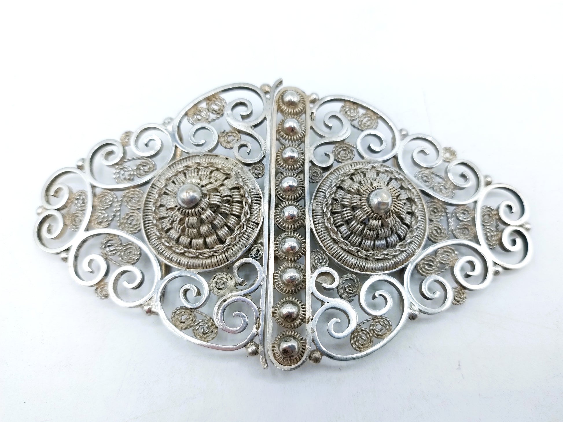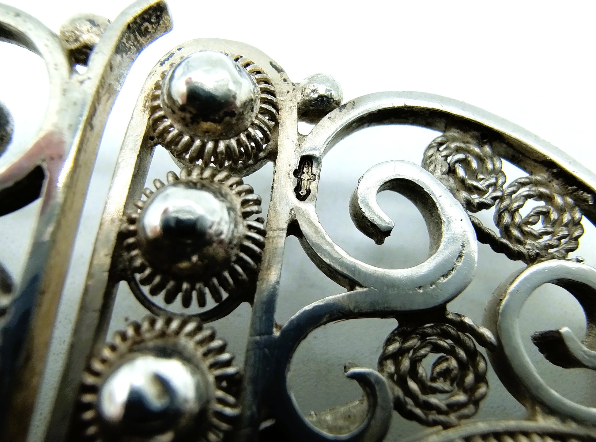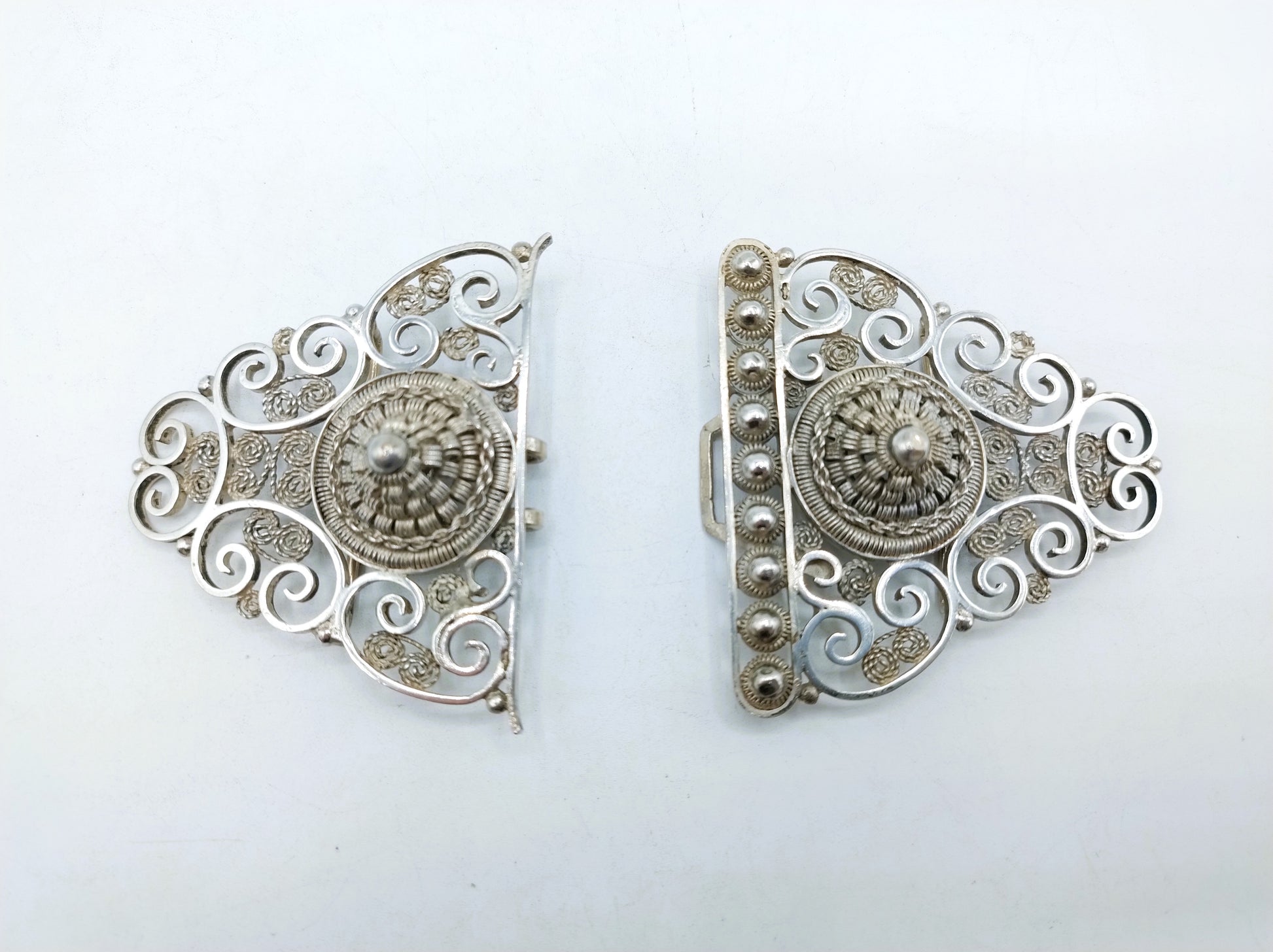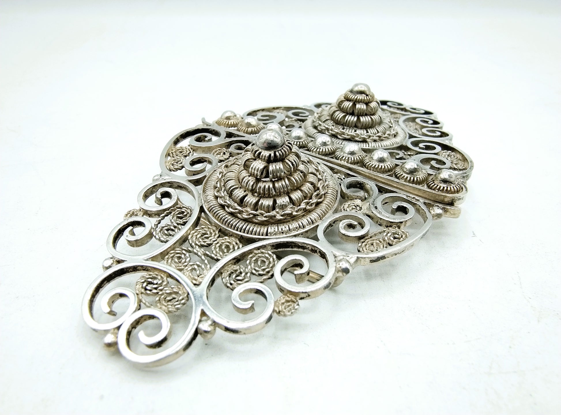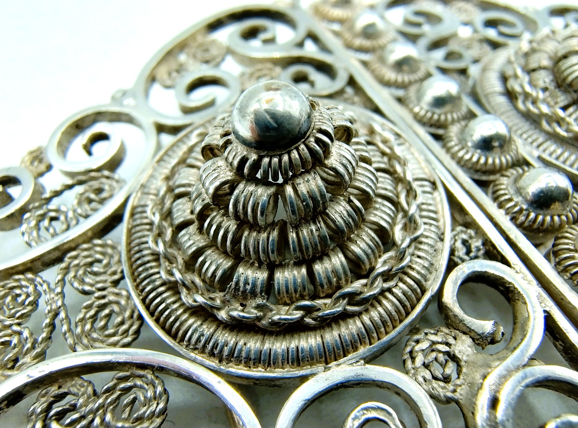 Antique silver apron clasp worn with Zeeland traditional costume.