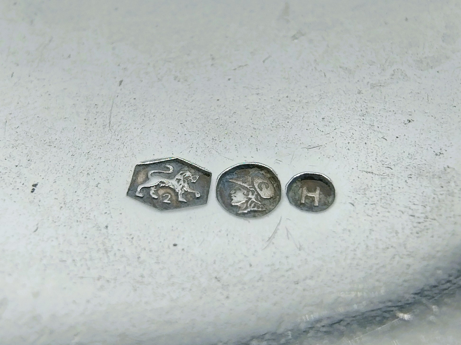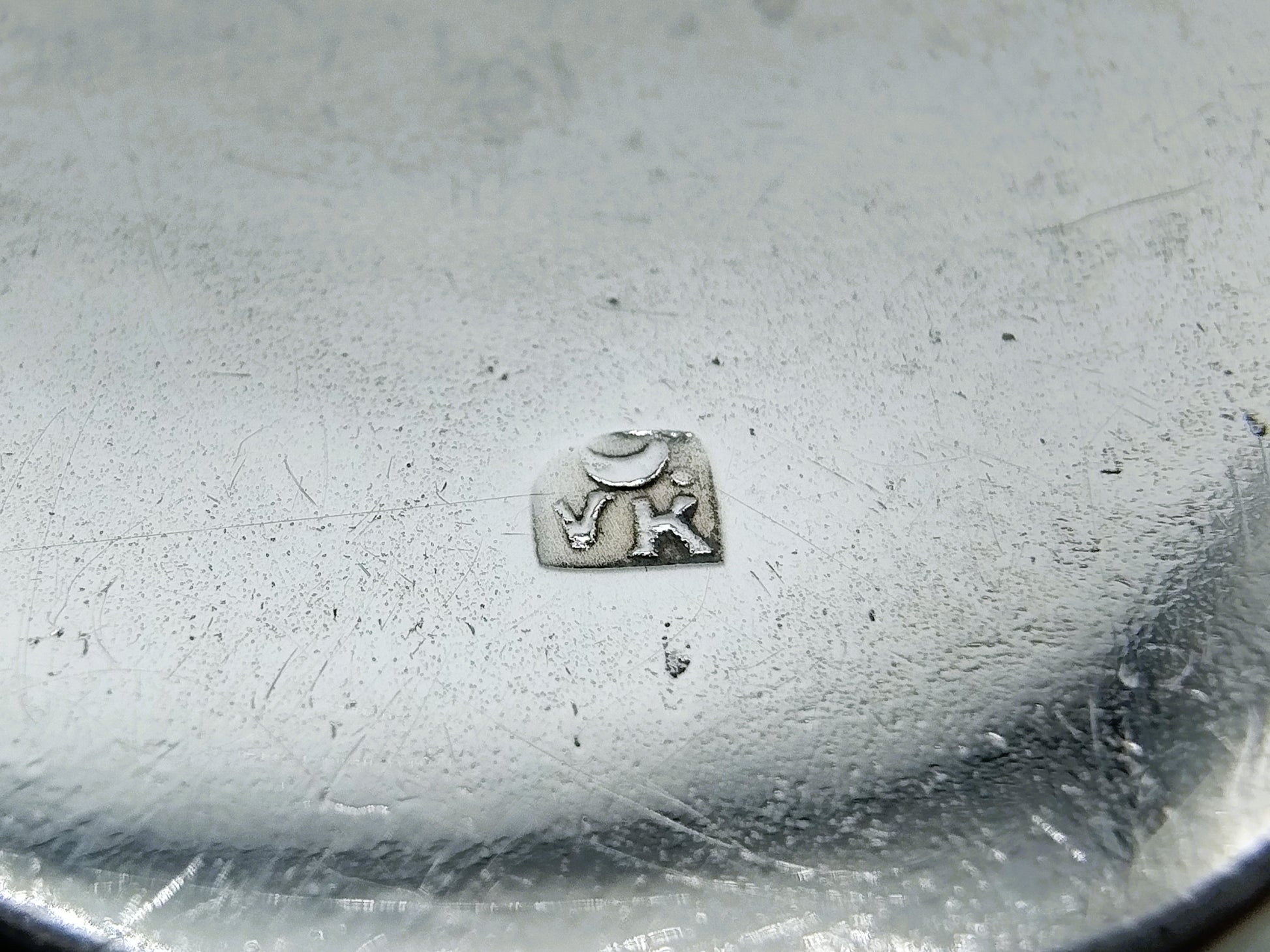 Hallmarked with master mark VK half moon, second fineness mark, Minerva head and date letter H for 1917.