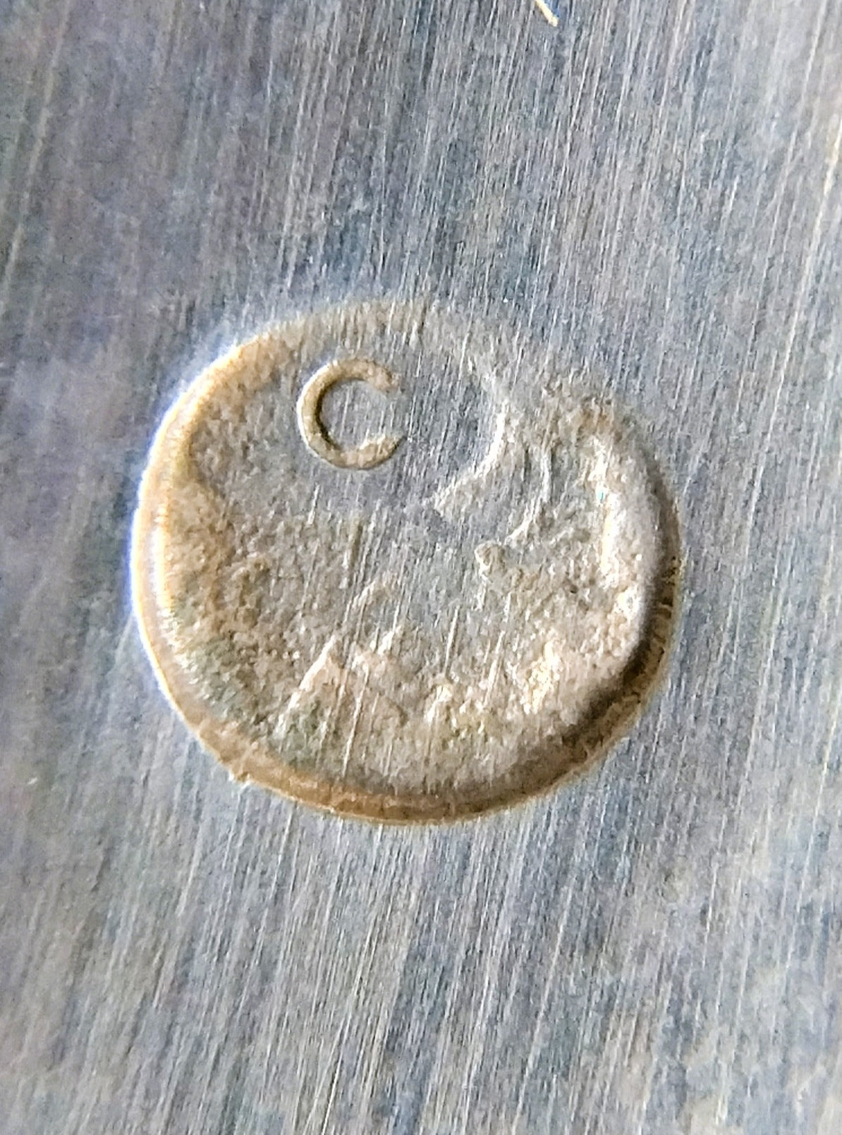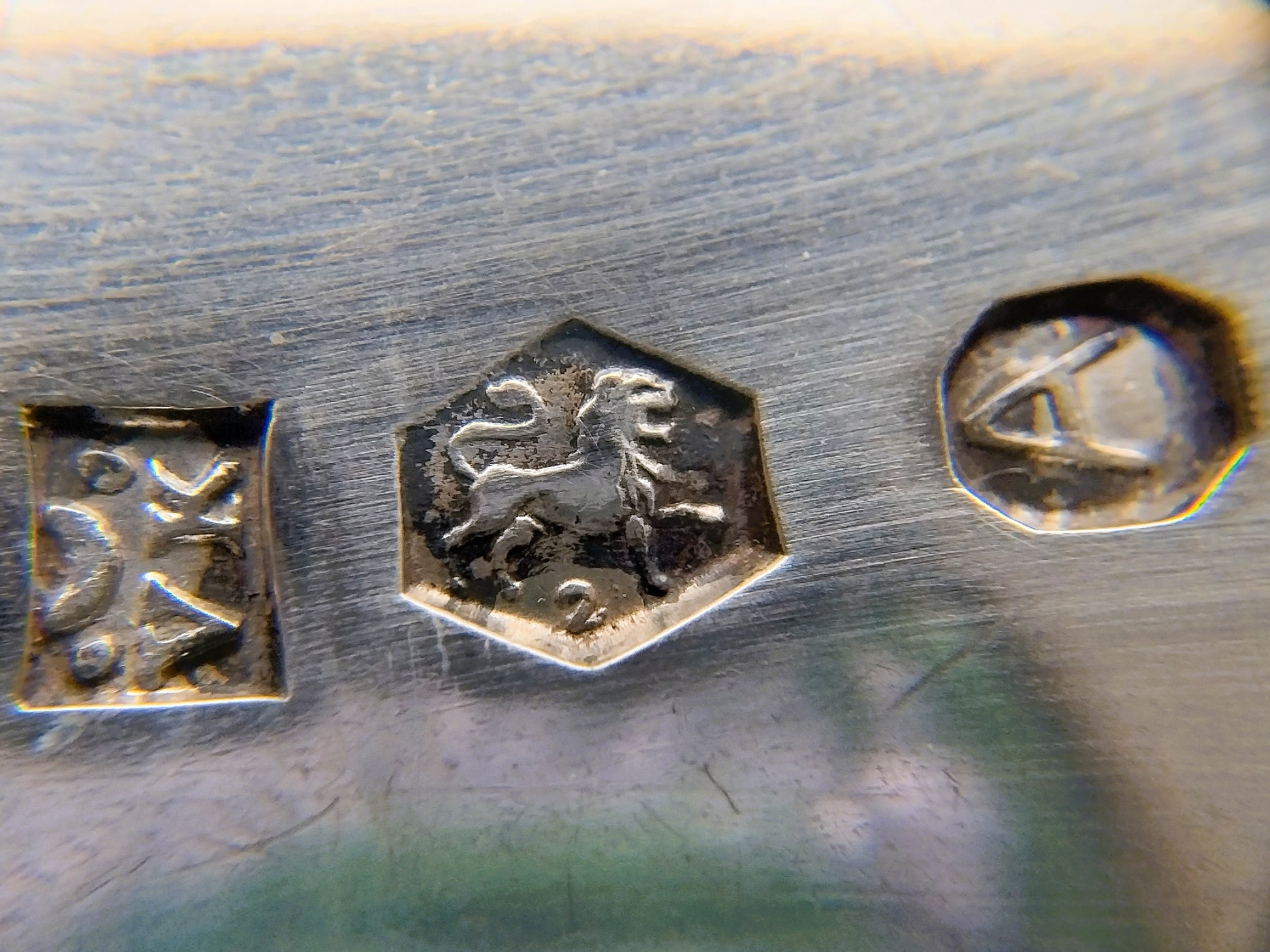 The shovel is marked with the master hallmark VK half moon, second content hallmark, Minerva head and date letter A for 1910.