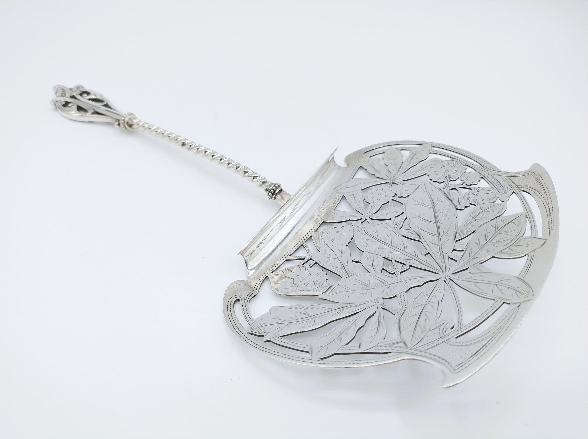 Silver Art Nouveau / Jugendstil asparagus scoop made by the JM van Kempen company from Voorschoten. The hallmark was used between 1858 and 1924