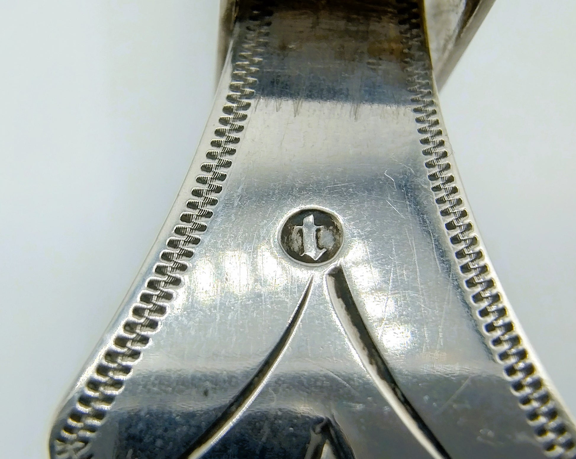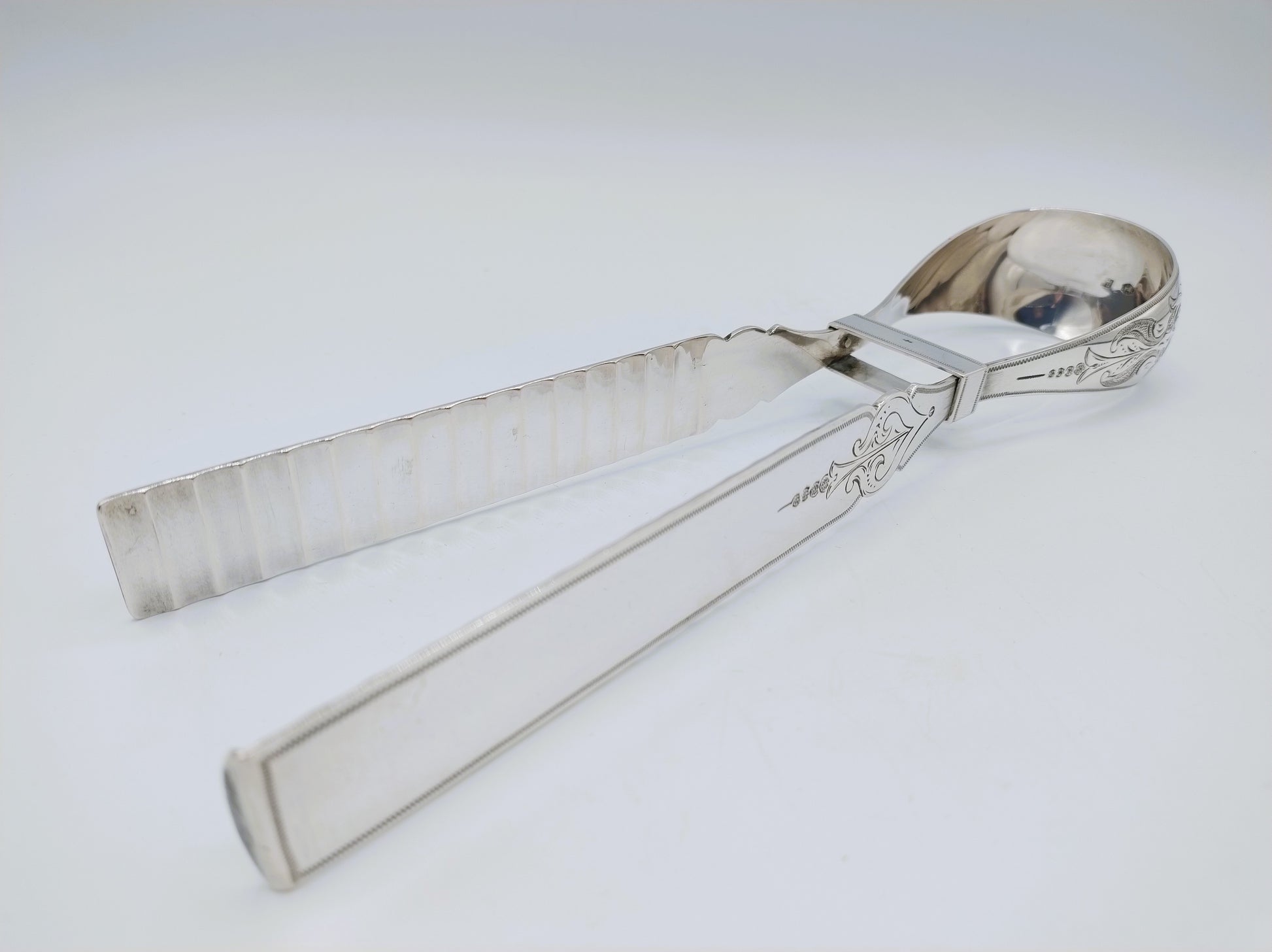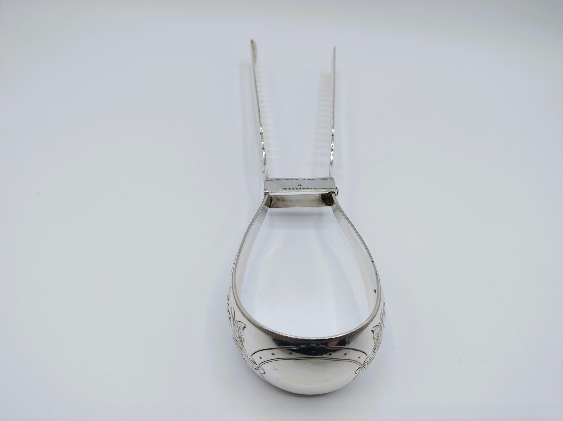 Silver asparagus tongs, made by the JM van Kempen Company from Voorschoten. They were active from 1858 to 1924.