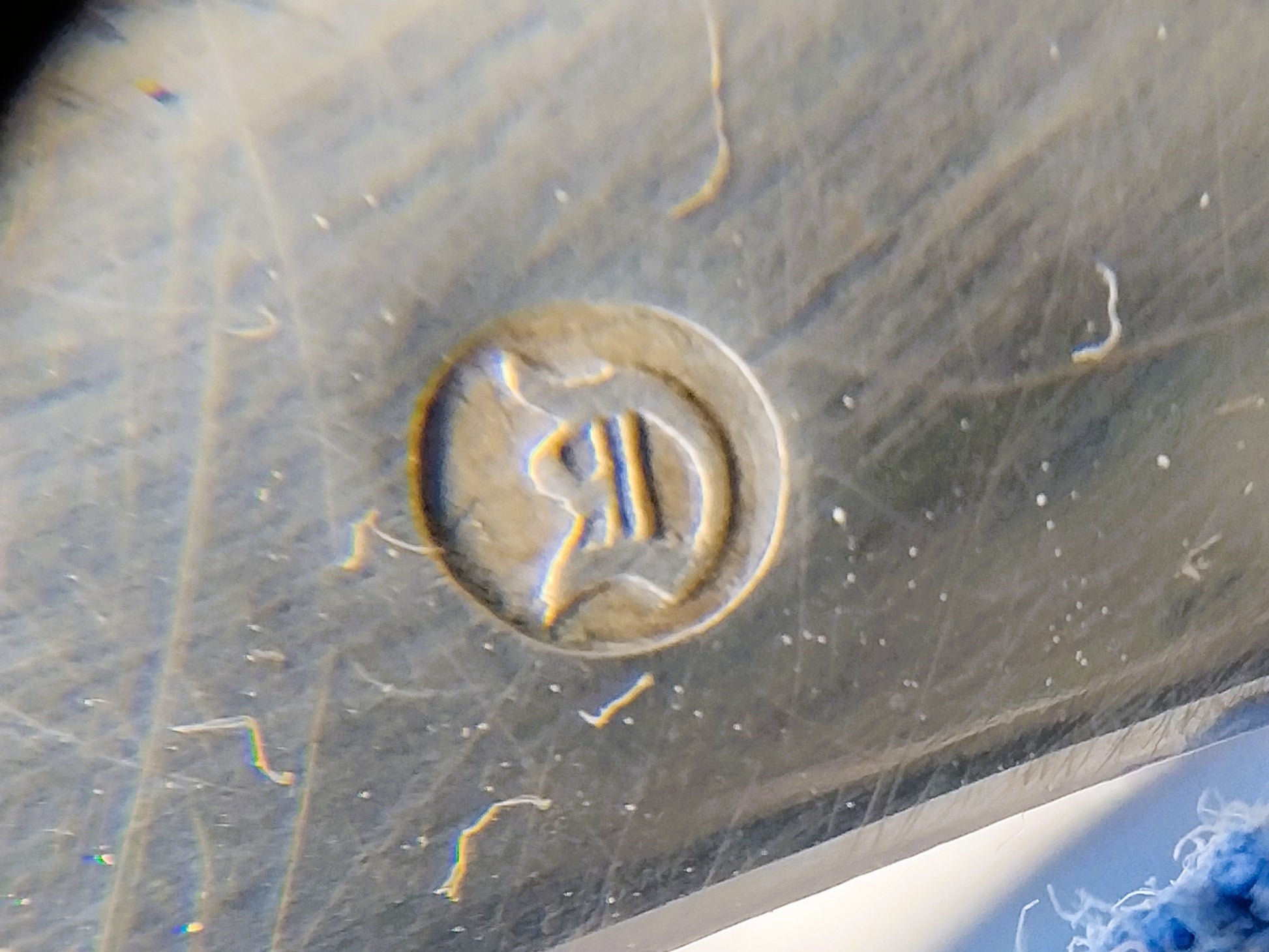 It appears that the ornament with the ring for the skirt hook has been ground down to give the bag a slightly different look.