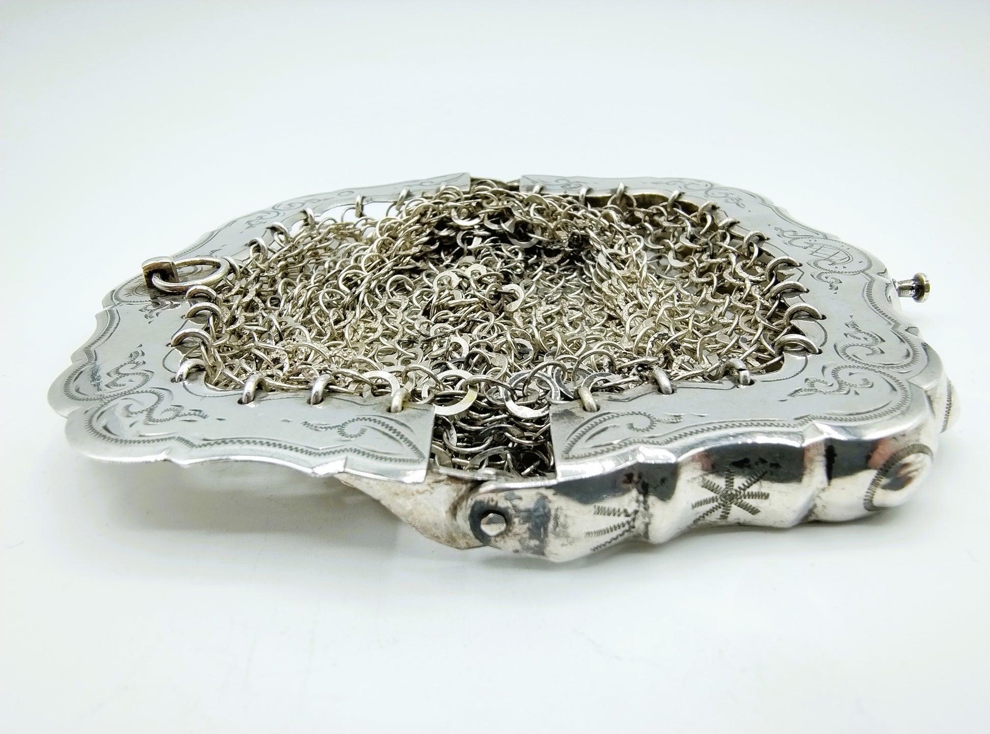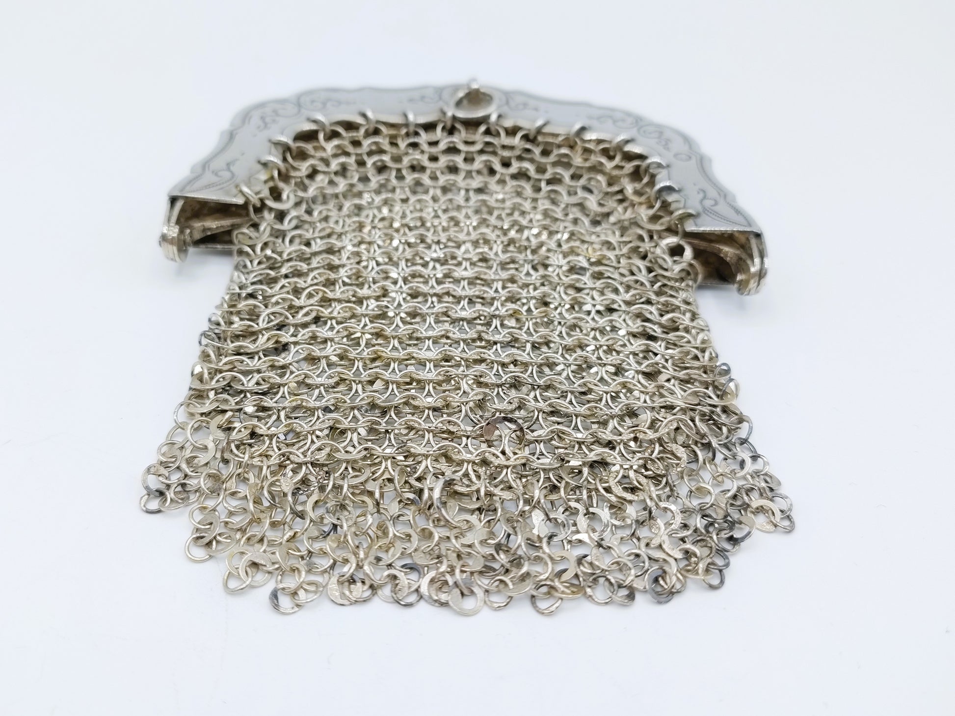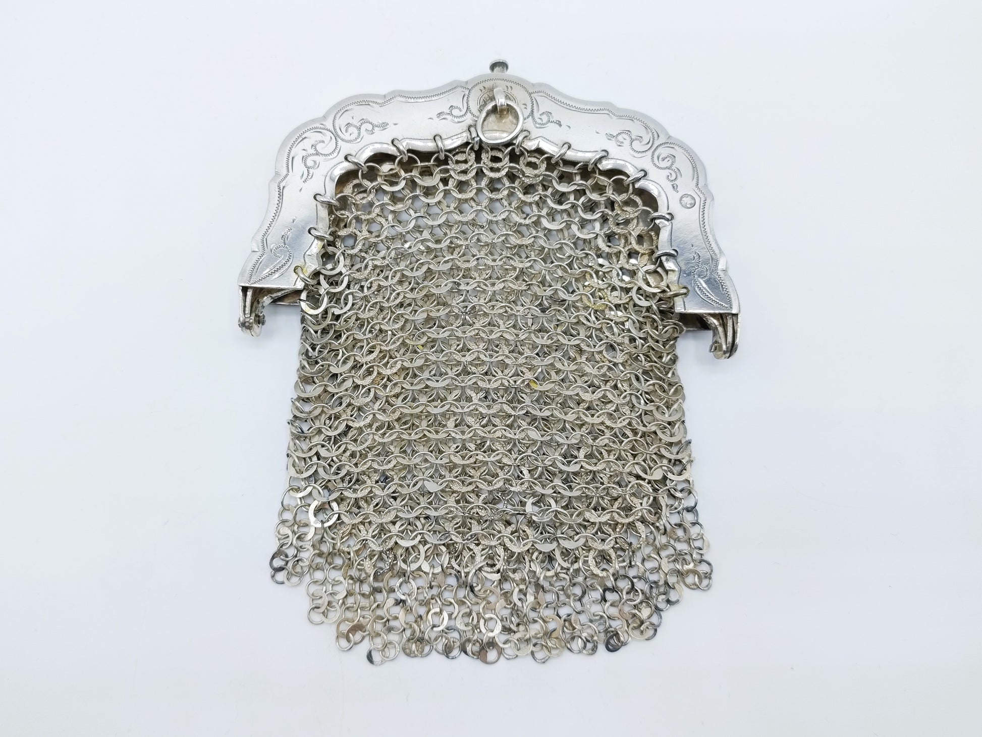 Silver purse with chain mail made by the silversmith H. Copier from Schoonhoven, active from 1882 to 1916.