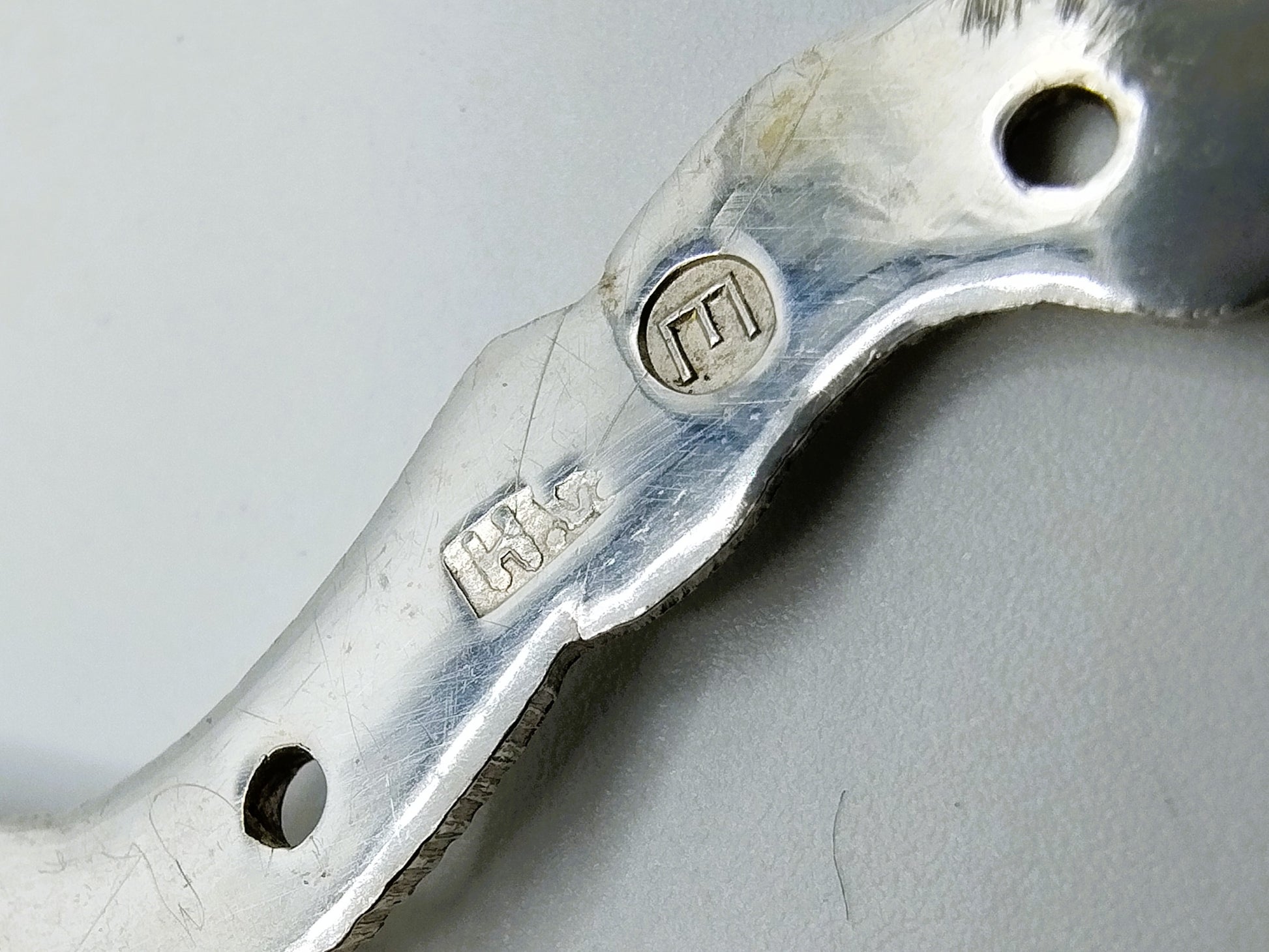 The bracket is marked with the master mark HC, second fineness mark, Minerva head and date letter E for 1914.