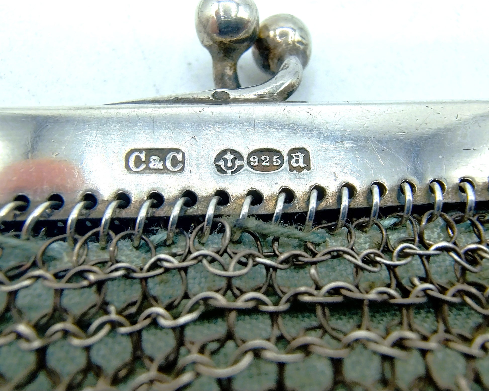 The bracket has been tested with various (import) marks from England. C & C which stands for Albert Cohen & Charles Soloman, 925 for 1st grade silver, letter a for 1916 and import hallmark.
