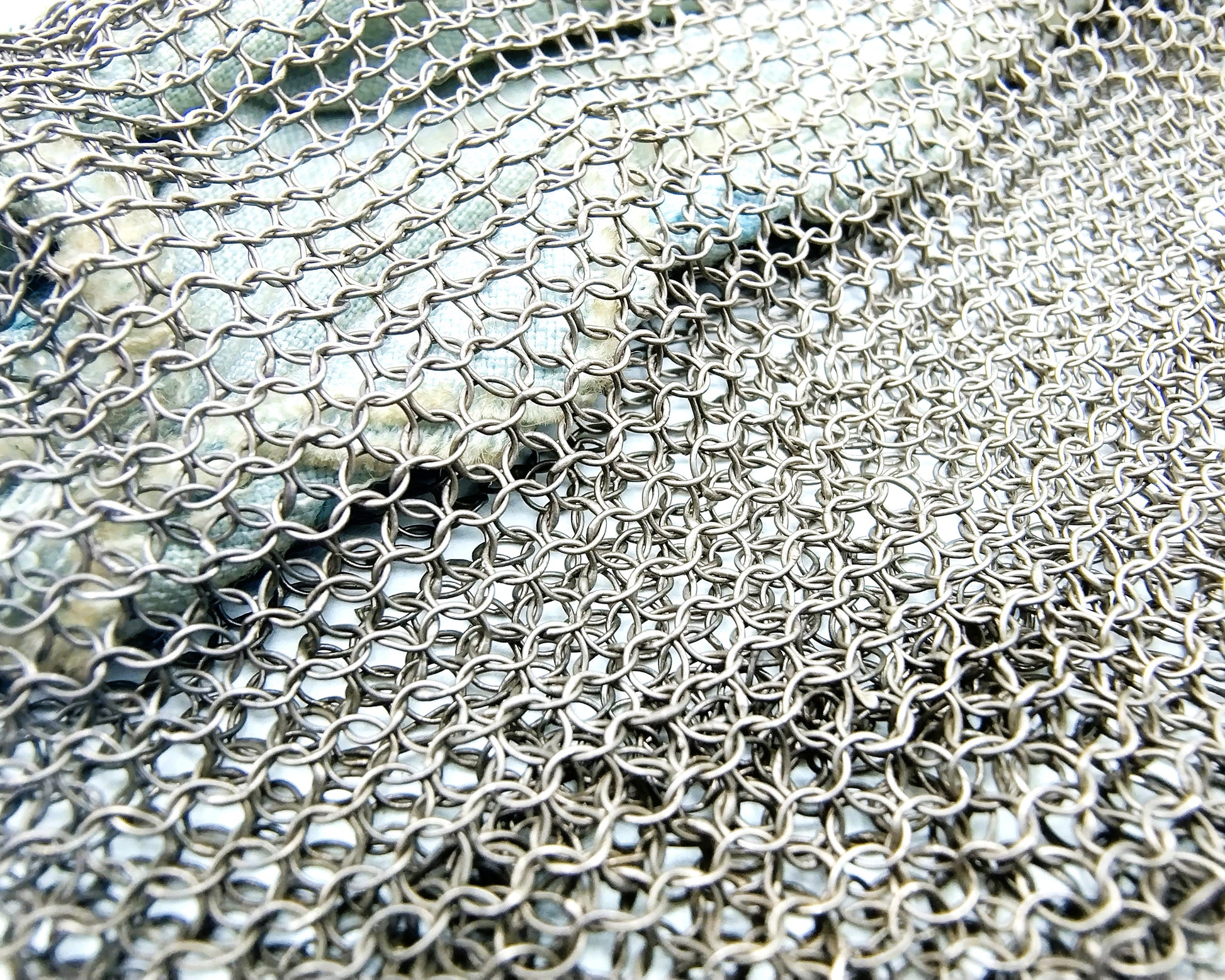 Silver purse with chain mail and inner bag.
