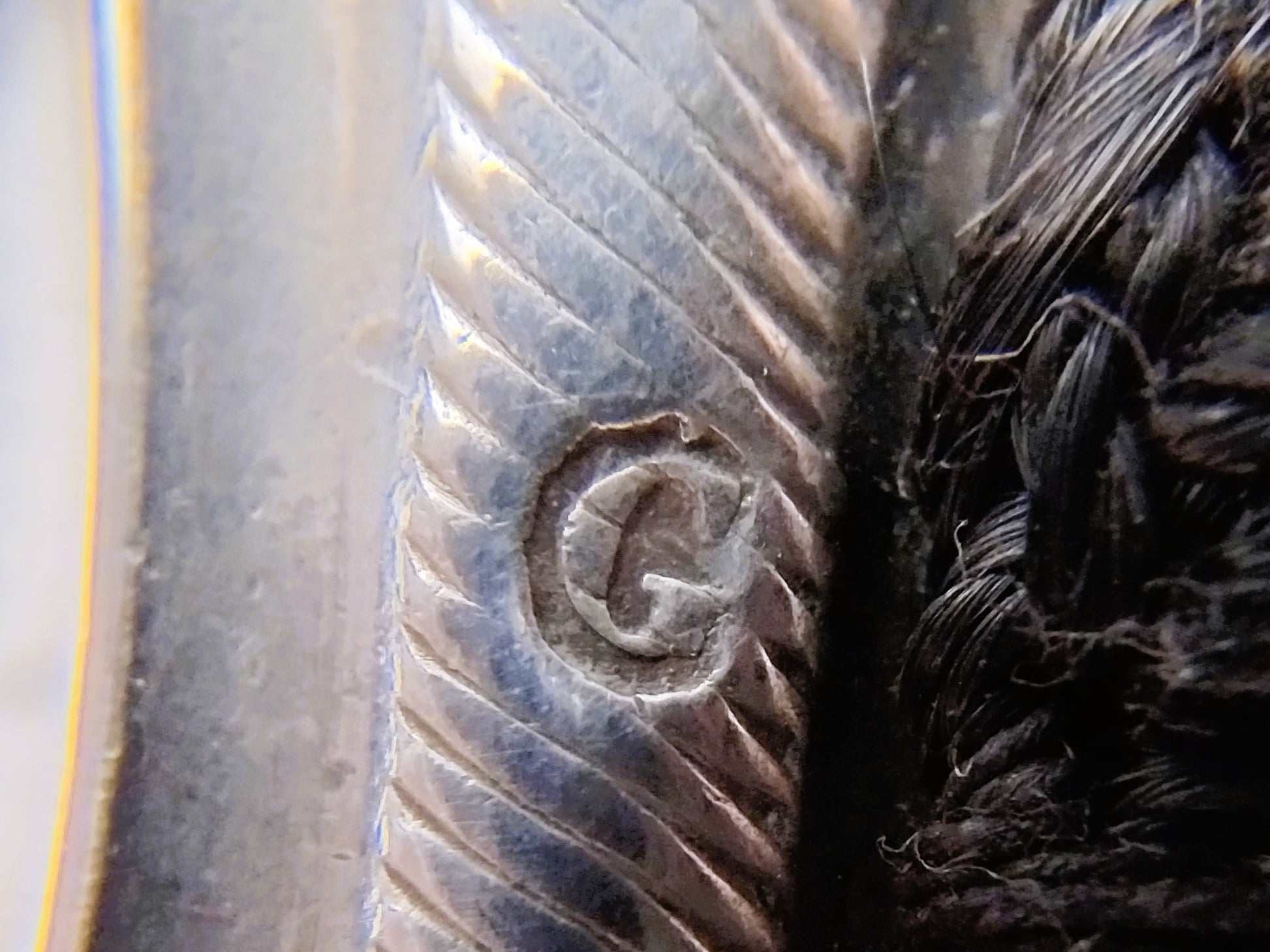 The silver clasp is marked with the second grade hallmark, Minerva head, date letter G for 1841 and master mark *JHK.