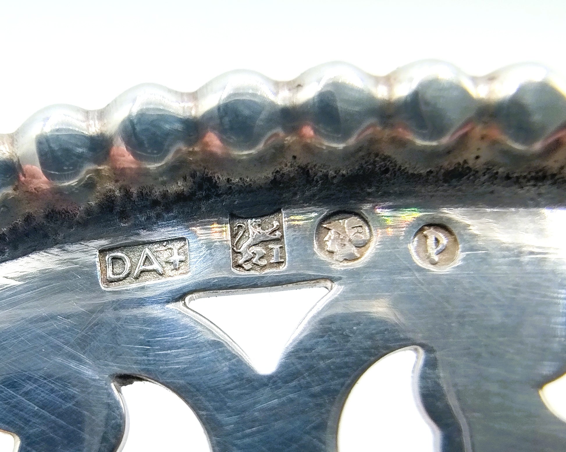 The basket is marked with the master mark DA+, minerva head, 1st grade mark 925 and year letter p for 1999.