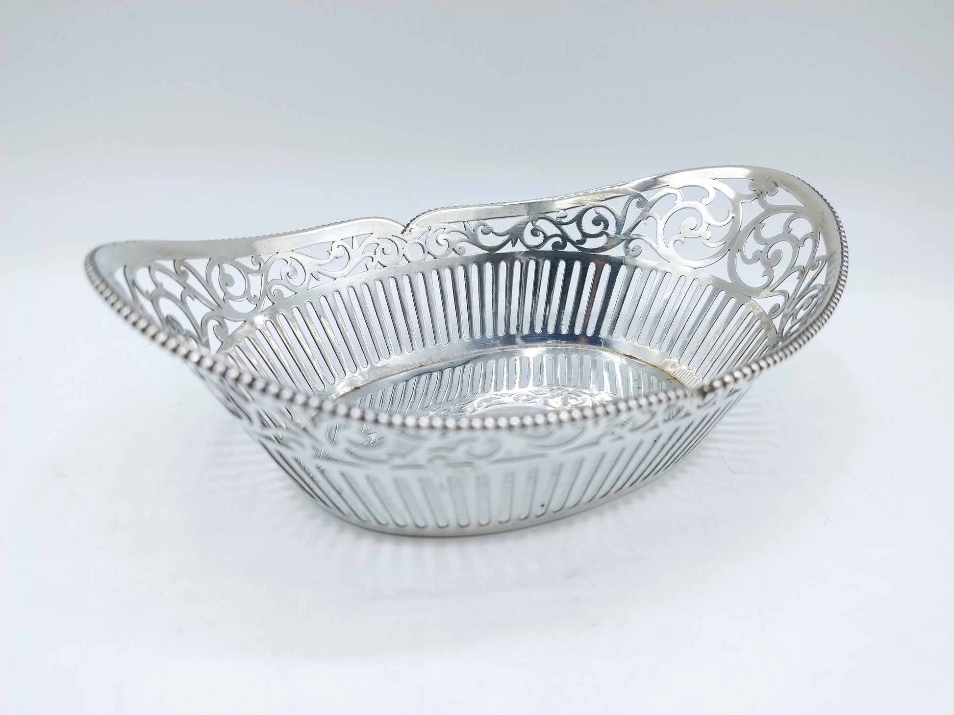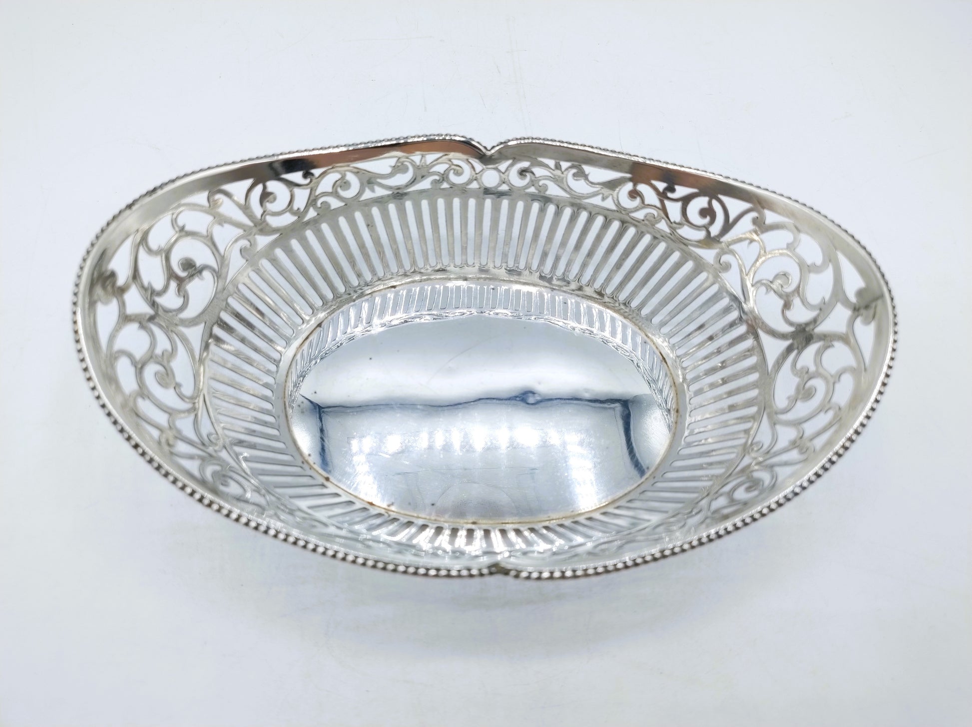 The basket is openwork and in perfect condition.