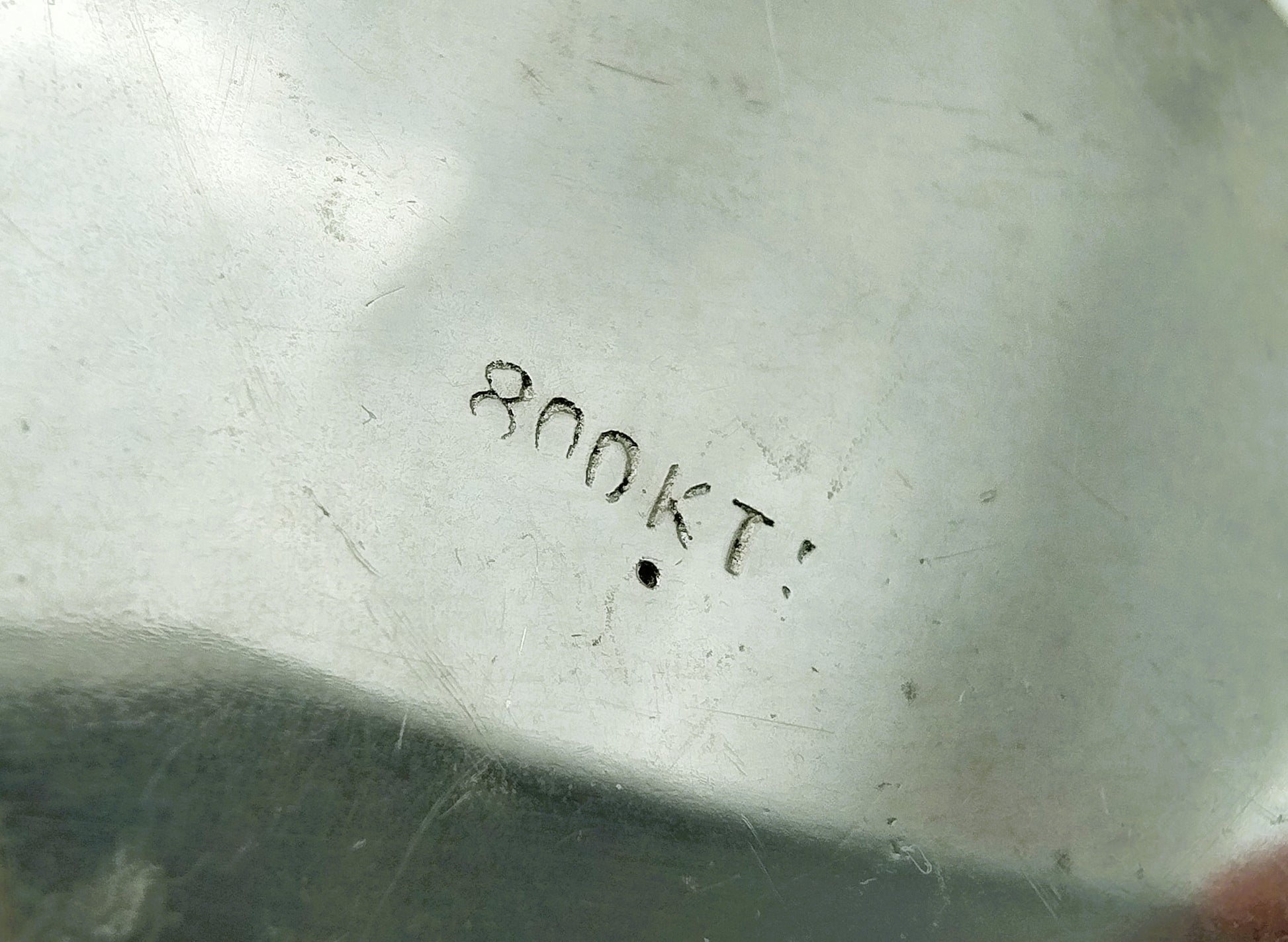 The bowl is marked with master hallmark KT and 800 for 3rd grade silver.