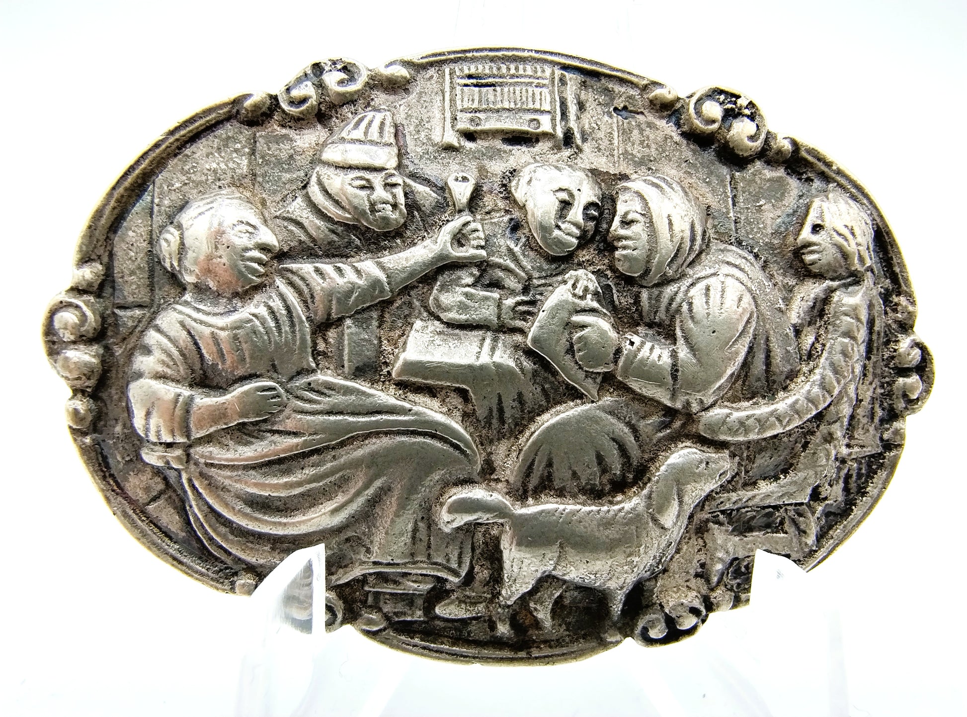 Silver brooch with old Dutch scene, A. Lensen, Schoonhoven, ca. 1920