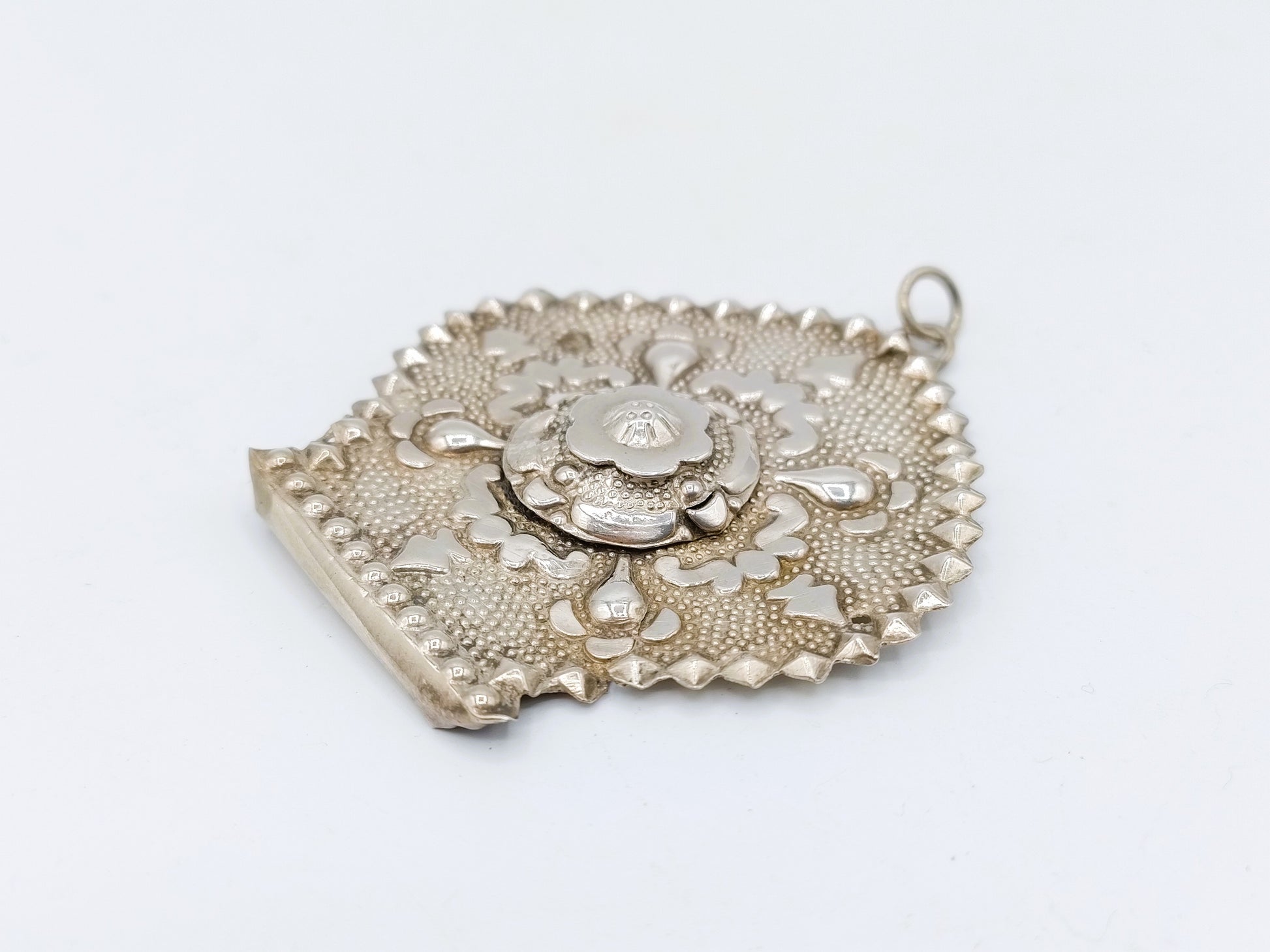Silver brooch made from a book or marker. There was a book on both sides of the earring. Often the ear iron was also divided when the inheritance was divided.