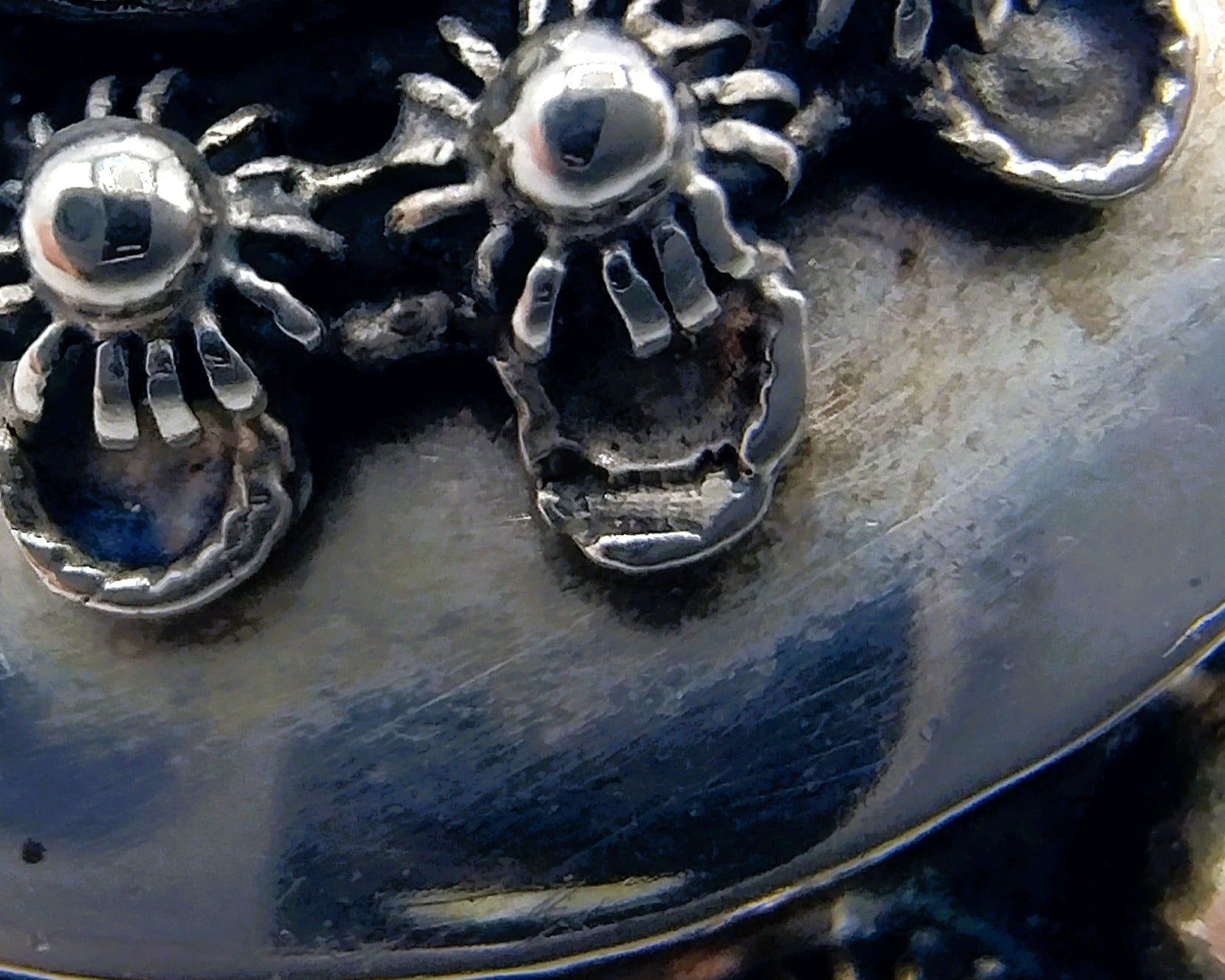 Silver brooch or pendant set with Zeeland buttons and a jet.