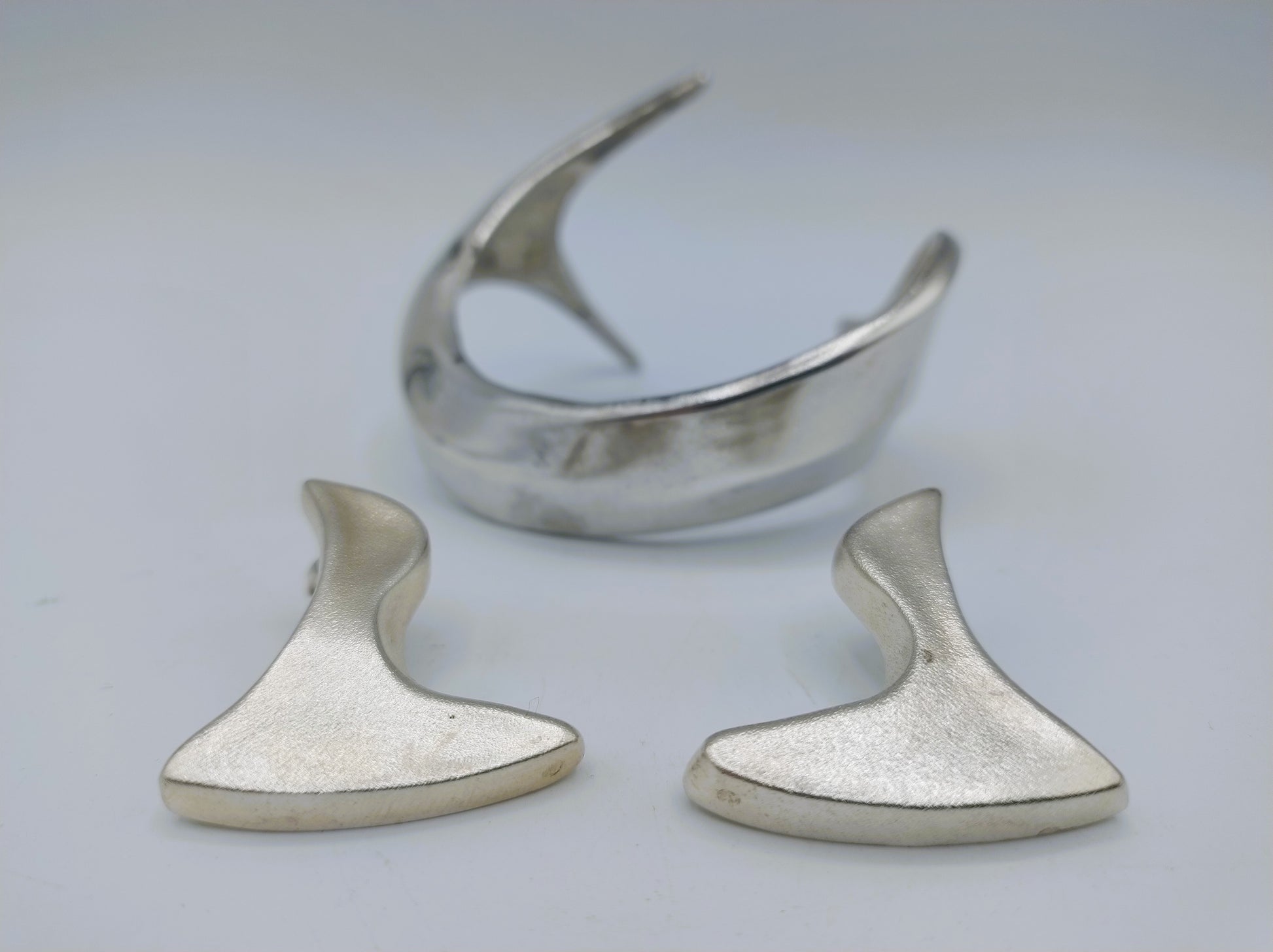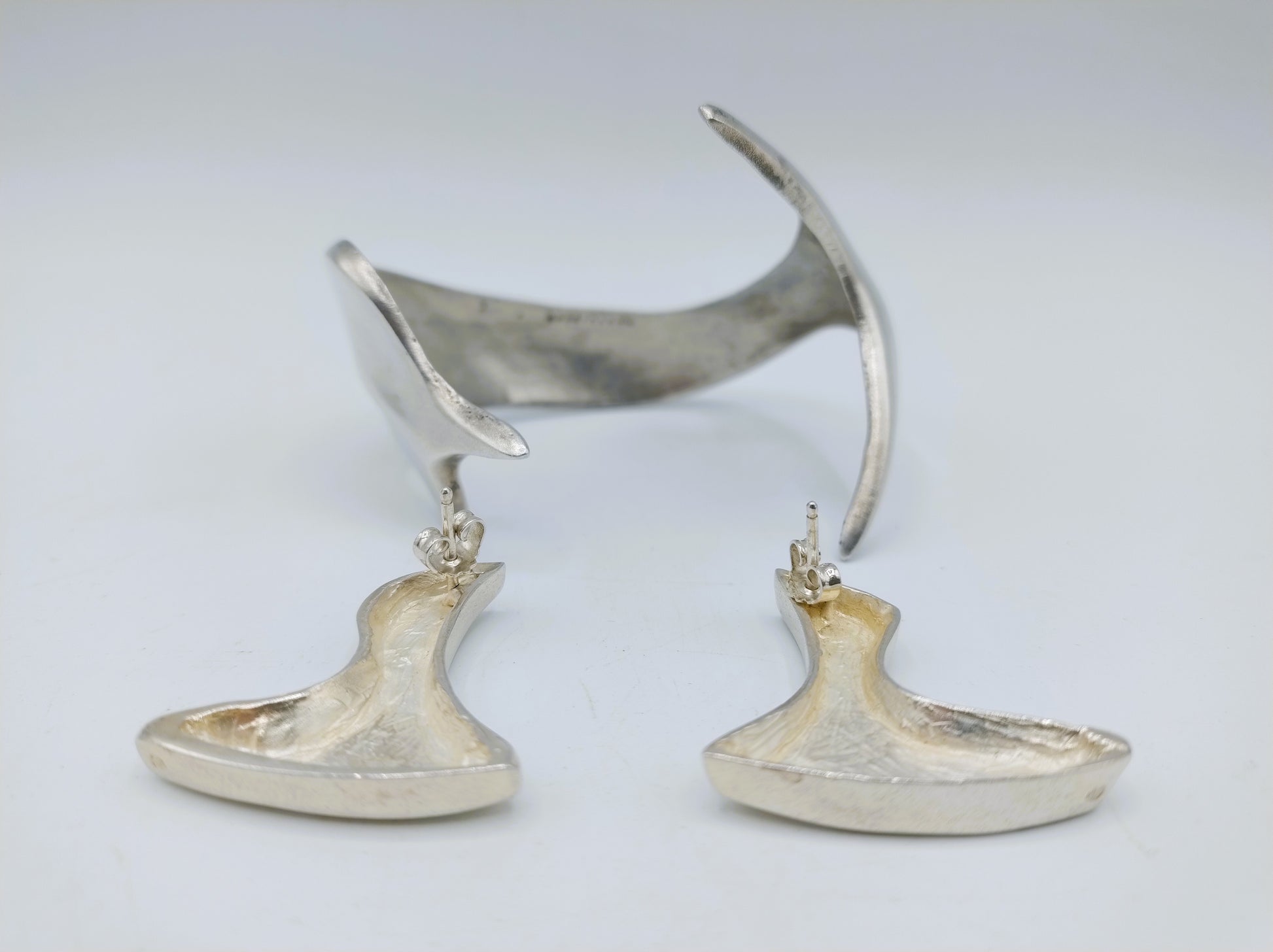 Exclusive silver design set of a bracelet with matching earrings. They are designed by the famous designer Mart Visser.